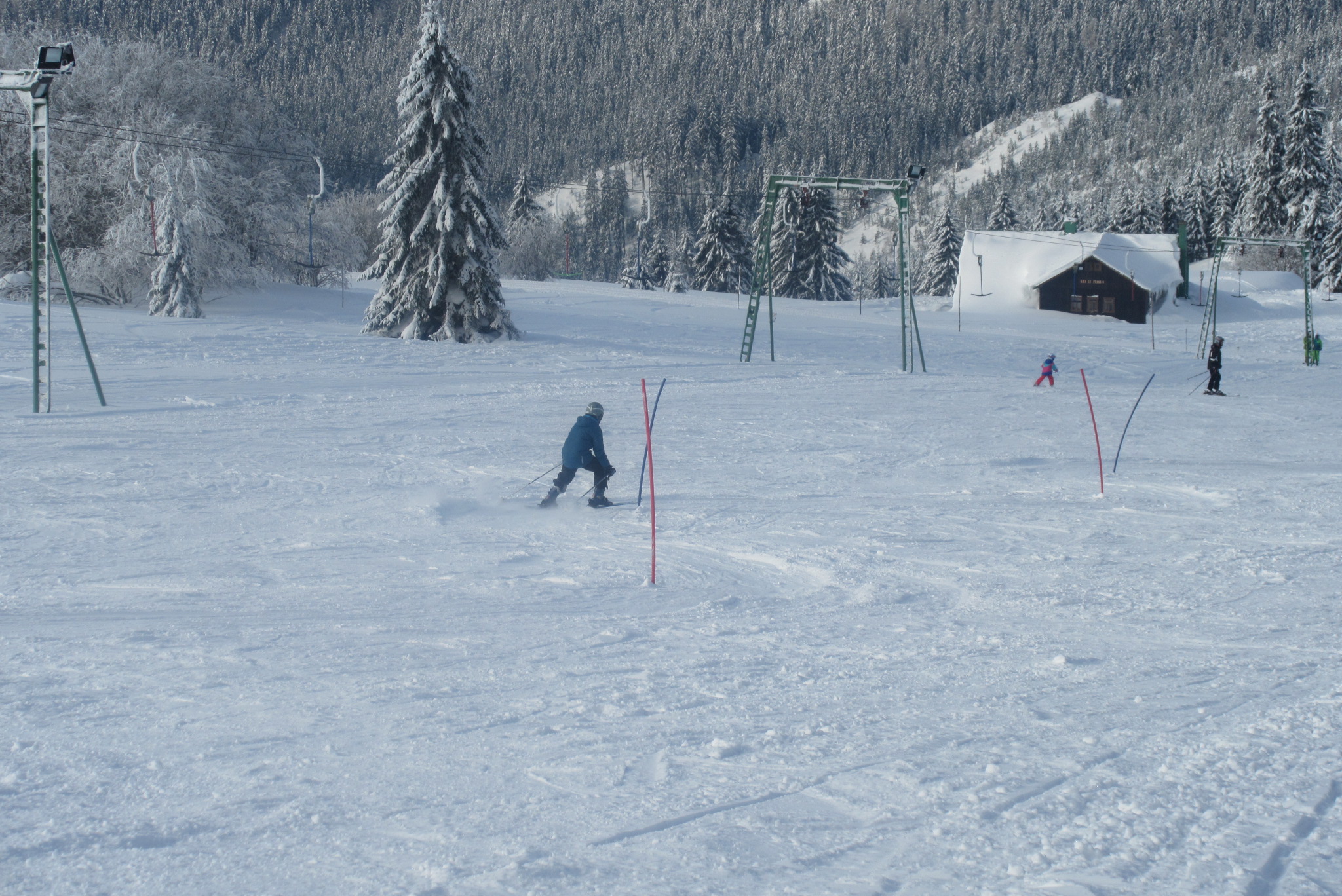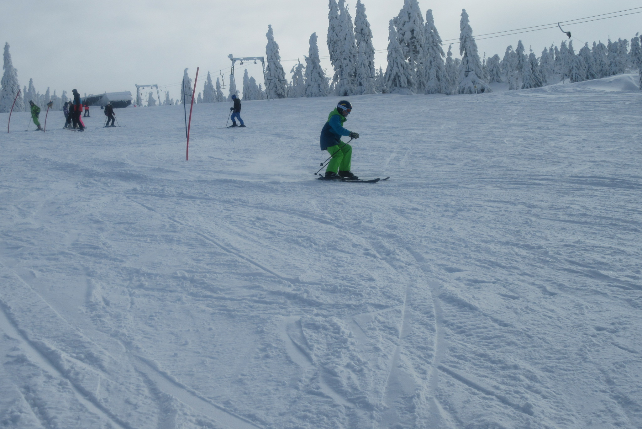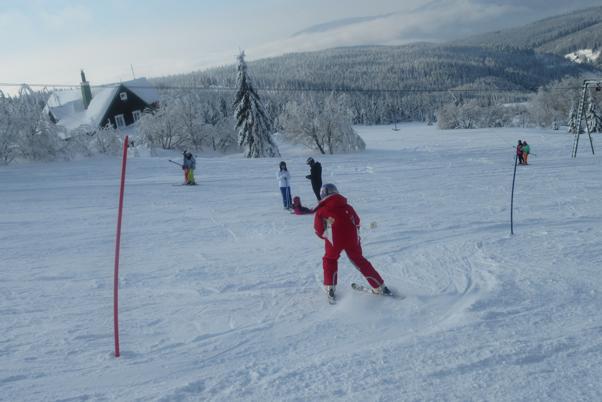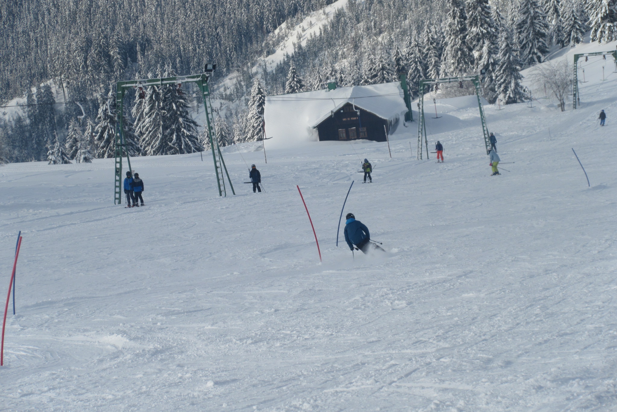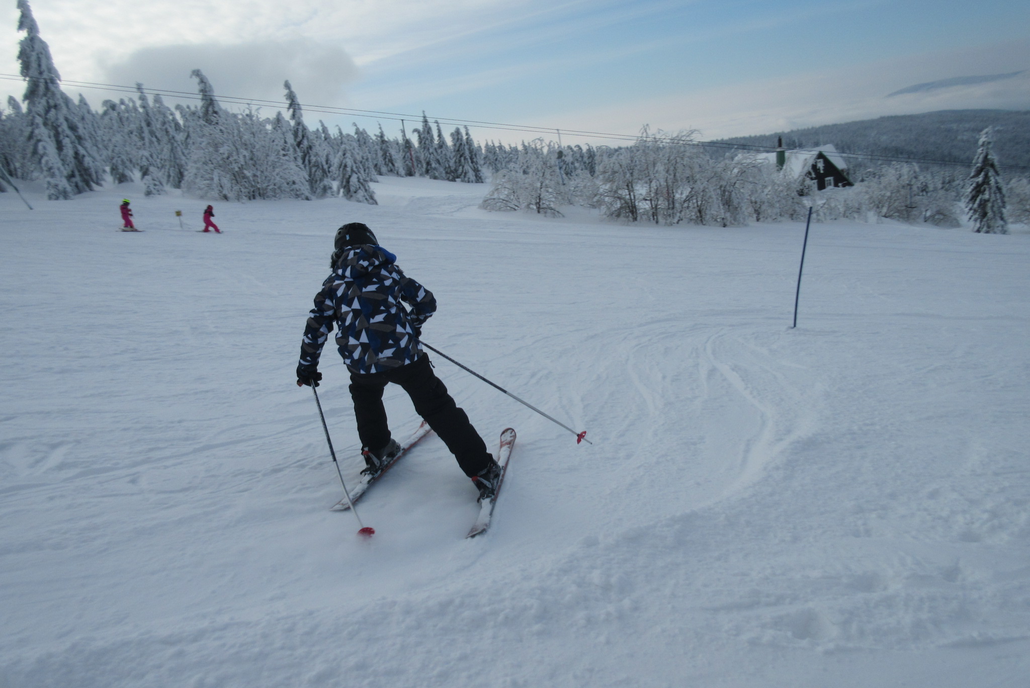 Dnešní den se vyvíjel v soutěžním duchu, protože byly na dopoledne naplánovány závody ve slalomu...až na pár marodů, kteří se nám trochu rozmnožili na tomto kurzu, všichni zúčastnění zdárně zajeli 2 kola a některým se podařilo probojovat až na stupně vítězů: Na 3. místě z děvčat se umístila Nela Syrůčková, 2. místo obsadila Káťa Rulcová a nejlepší slalomářkou se stala Míša Dvořáková. Mezi chlapci 3. místo obsadil Filip Kroužel, 2. Patrik Stohanzl a pomyslné zlato získal Martin Starý, který se stal zároveň celkovým vítězem. Odpoledne probíhalo na svahu už spíše volnější lyžování pouze s individuálním dolaďováním techniky řezaného oblouku, a protože bylo 31.1., rozdávalo se dětem na svahu vysvědčení