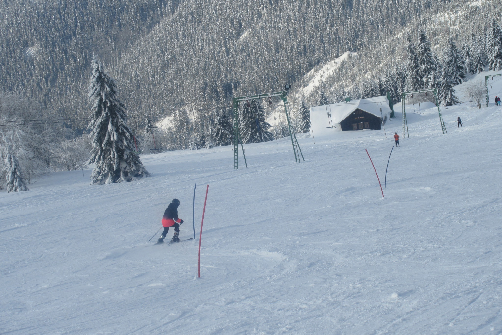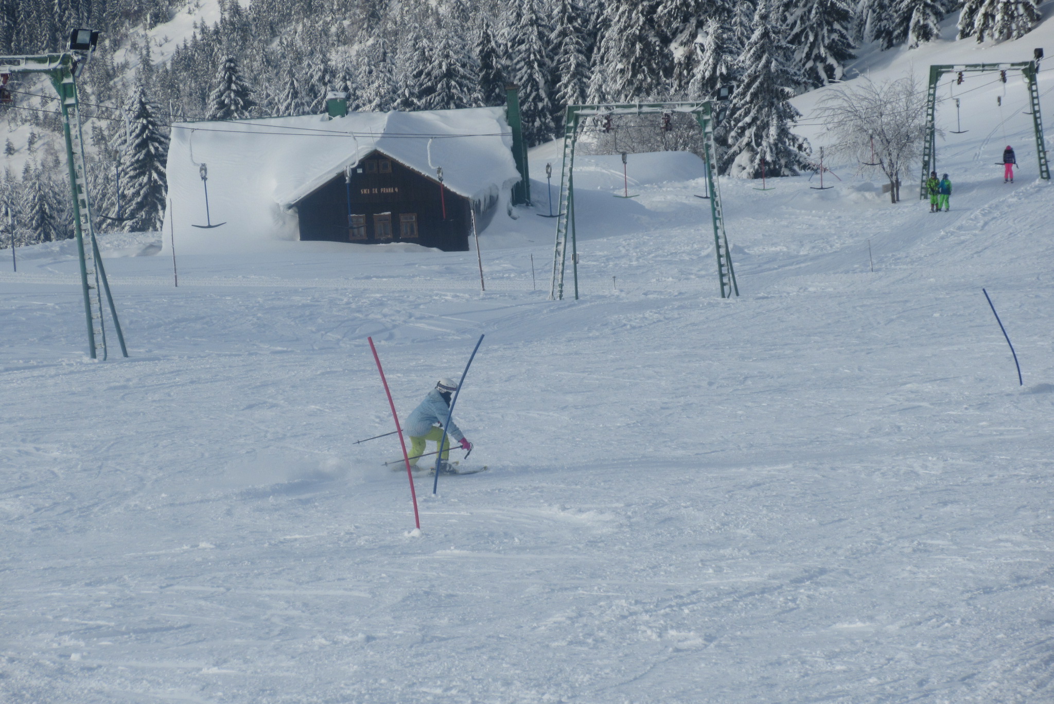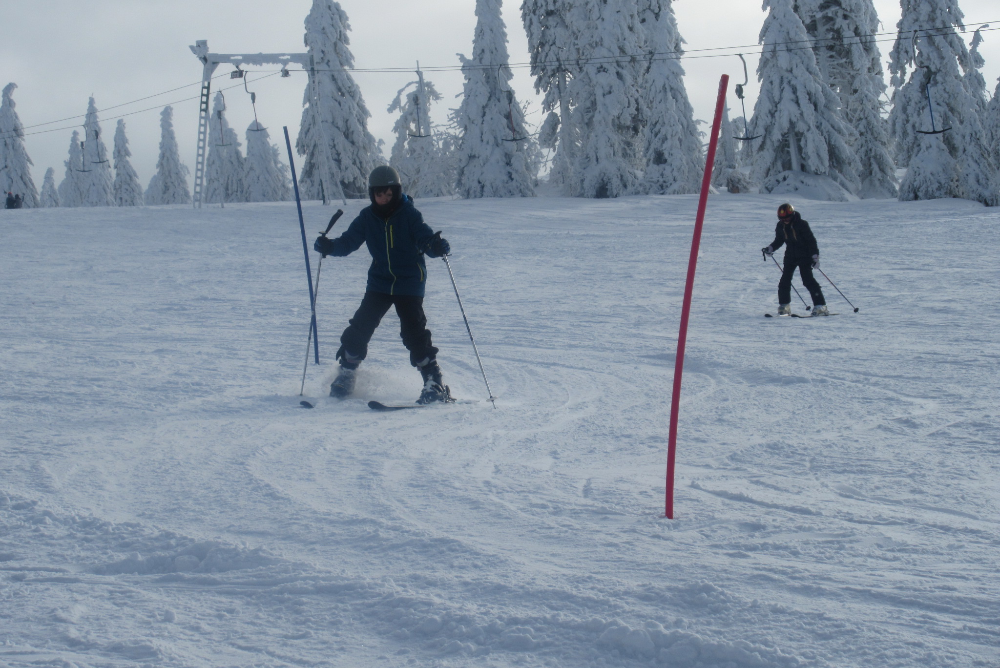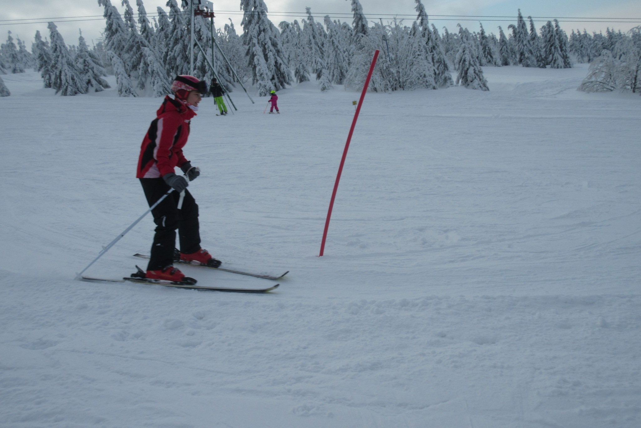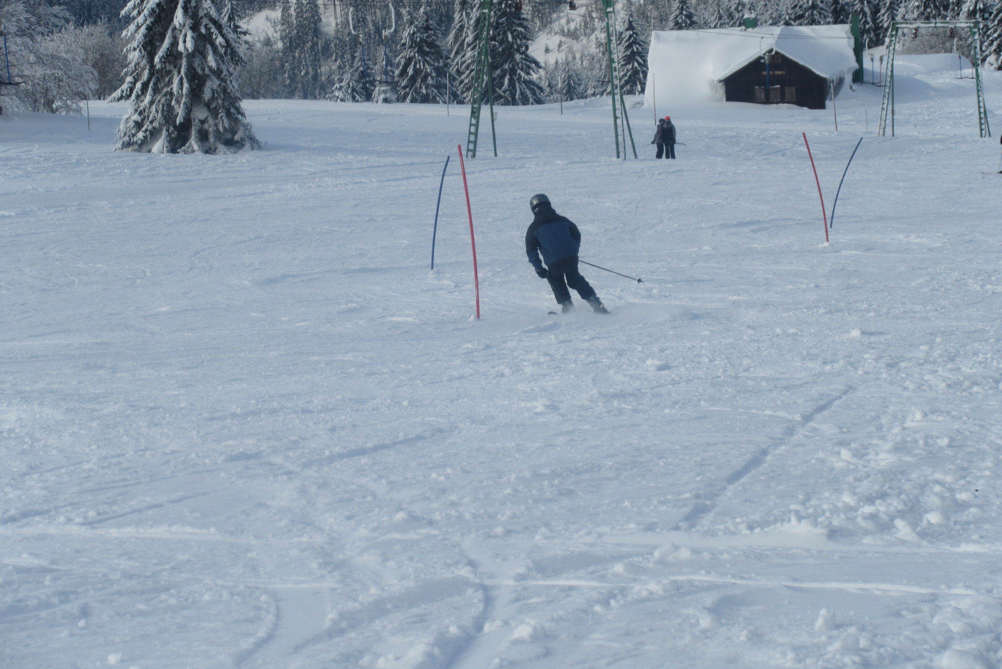Dnešní den se vyvíjel v soutěžním duchu, protože byly na dopoledne naplánovány závody ve slalomu...až na pár marodů, kteří se nám trochu rozmnožili na tomto kurzu, všichni zúčastnění zdárně zajeli 2 kola a některým se podařilo probojovat až na stupně vítězů: Na 3. místě z děvčat se umístila Nela Syrůčková, 2. místo obsadila Káťa Rulcová a nejlepší slalomářkou se stala Míša Dvořáková. Mezi chlapci 3. místo obsadil Filip Kroužel, 2. Patrik Stohanzl a pomyslné zlato získal Martin Starý, který se stal zároveň celkovým vítězem. Odpoledne probíhalo na svahu už spíše volnější lyžování pouze s individuálním dolaďováním techniky řezaného oblouku, a protože bylo 31.1., rozdávalo se dětem na svahu vysvědčení