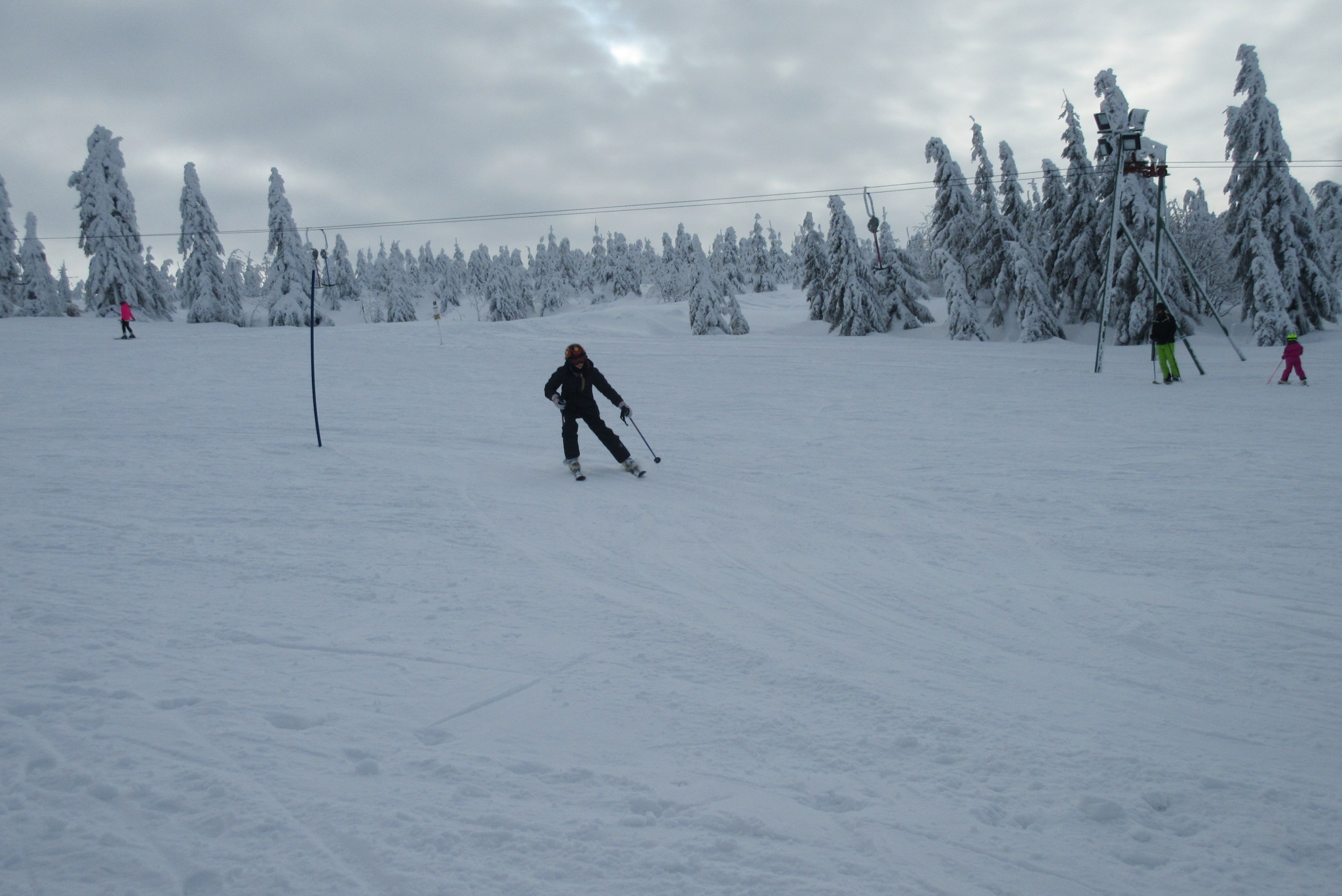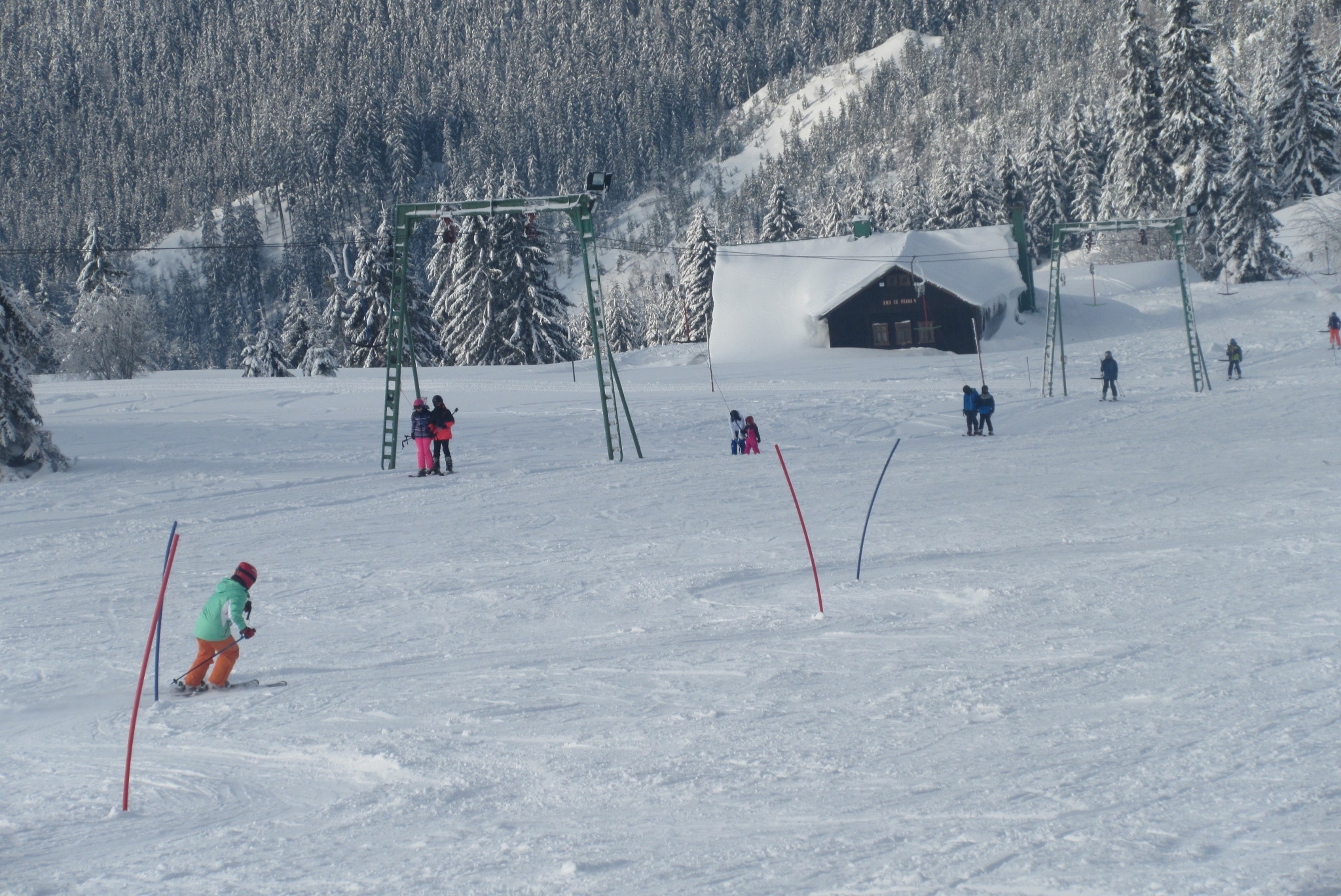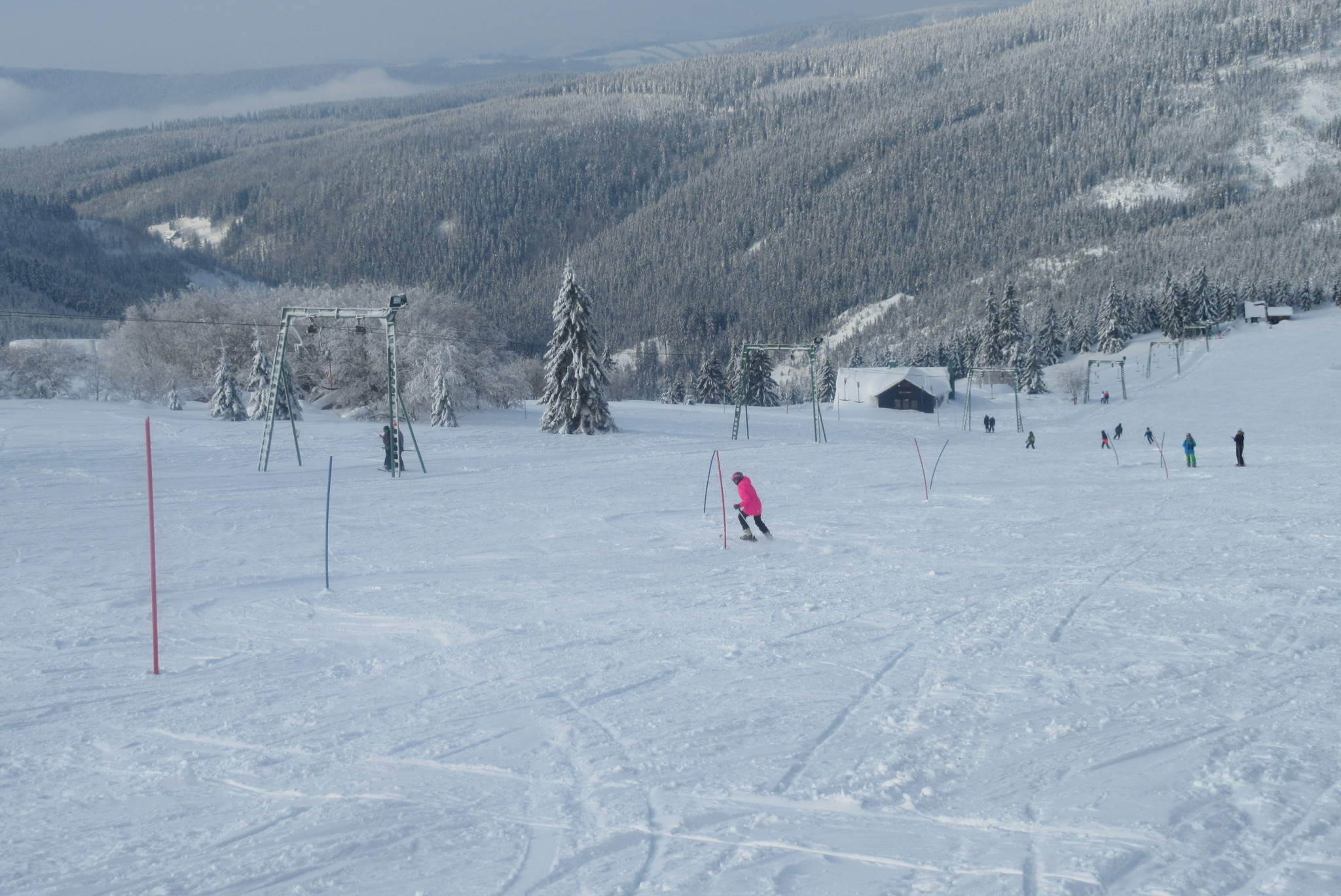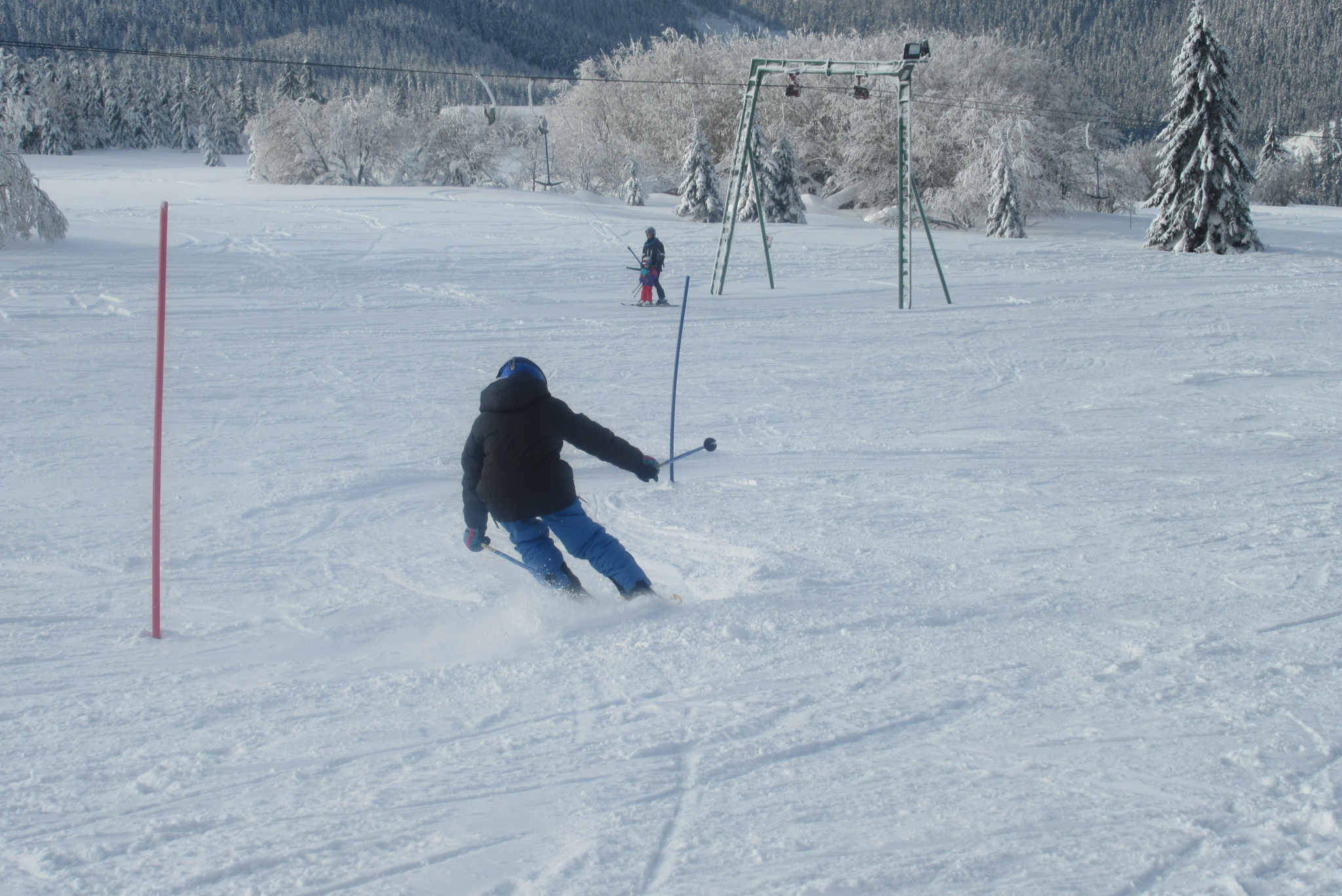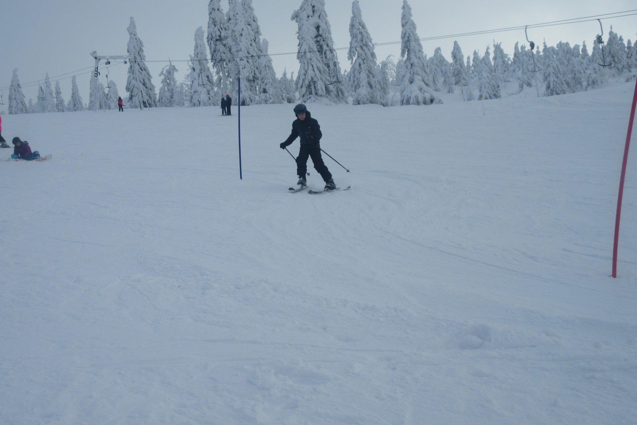 Dnešní den se vyvíjel v soutěžním duchu, protože byly na dopoledne naplánovány závody ve slalomu...až na pár marodů, kteří se nám trochu rozmnožili na tomto kurzu, všichni zúčastnění zdárně zajeli 2 kola a některým se podařilo probojovat až na stupně vítězů: Na 3. místě z děvčat se umístila Nela Syrůčková, 2. místo obsadila Káťa Rulcová a nejlepší slalomářkou se stala Míša Dvořáková. Mezi chlapci 3. místo obsadil Filip Kroužel, 2. Patrik Stohanzl a pomyslné zlato získal Martin Starý, který se stal zároveň celkovým vítězem. Odpoledne probíhalo na svahu už spíše volnější lyžování pouze s individuálním dolaďováním techniky řezaného oblouku, a protože bylo 31.1., rozdávalo se dětem na svahu vysvědčení
