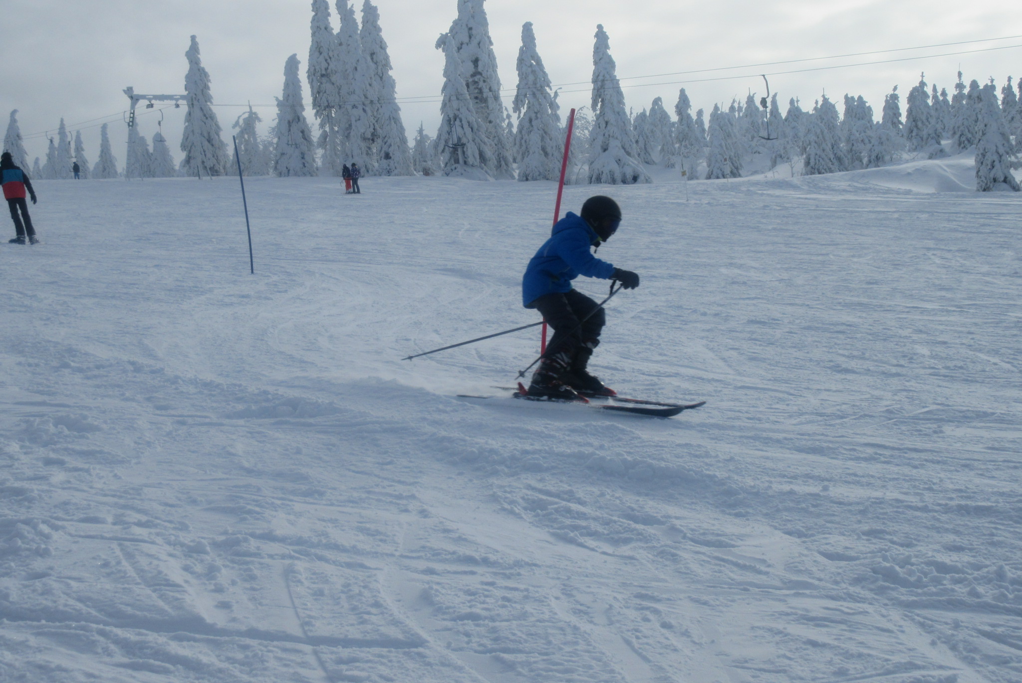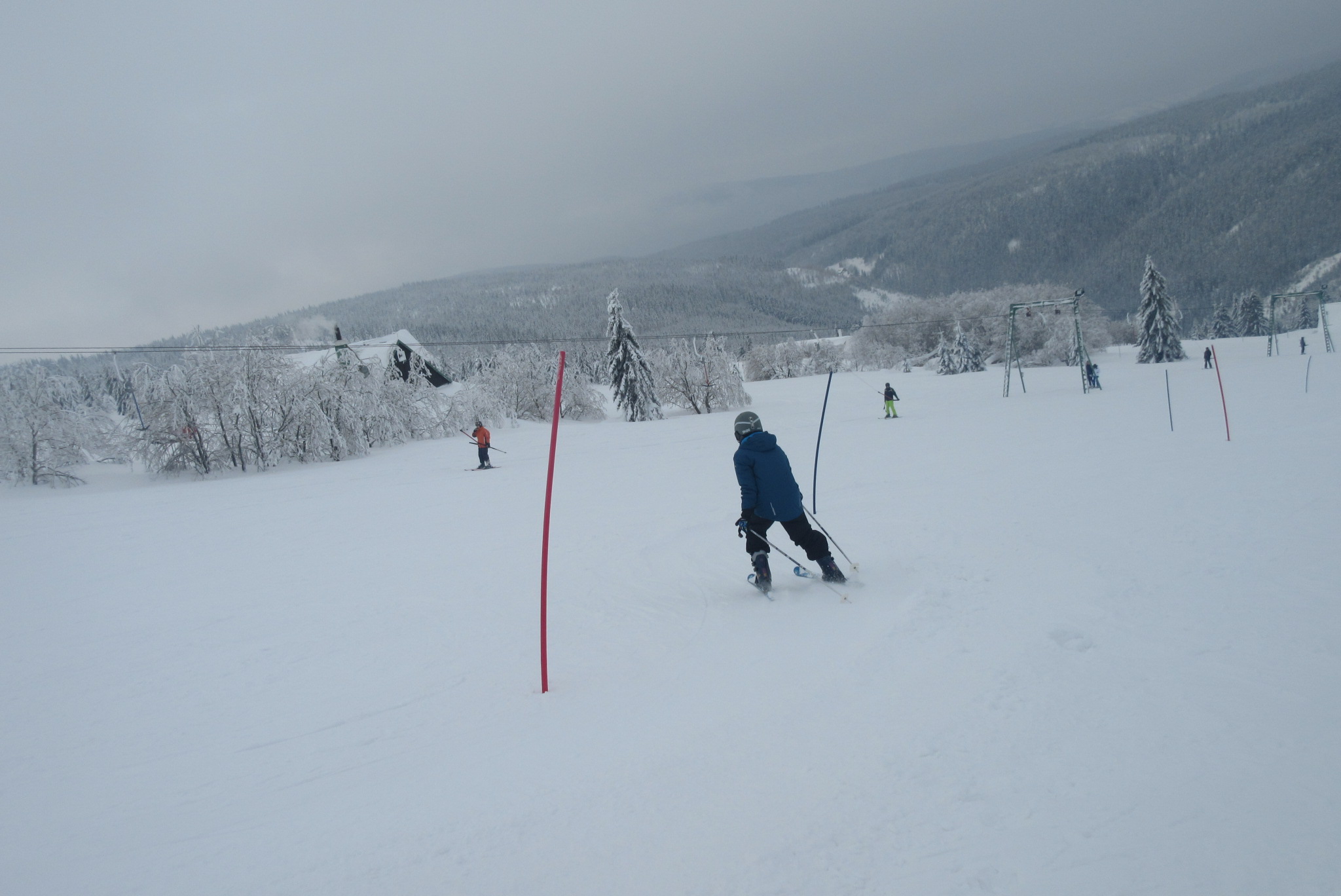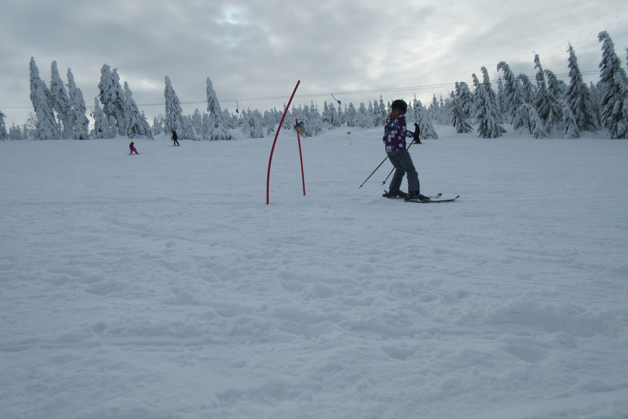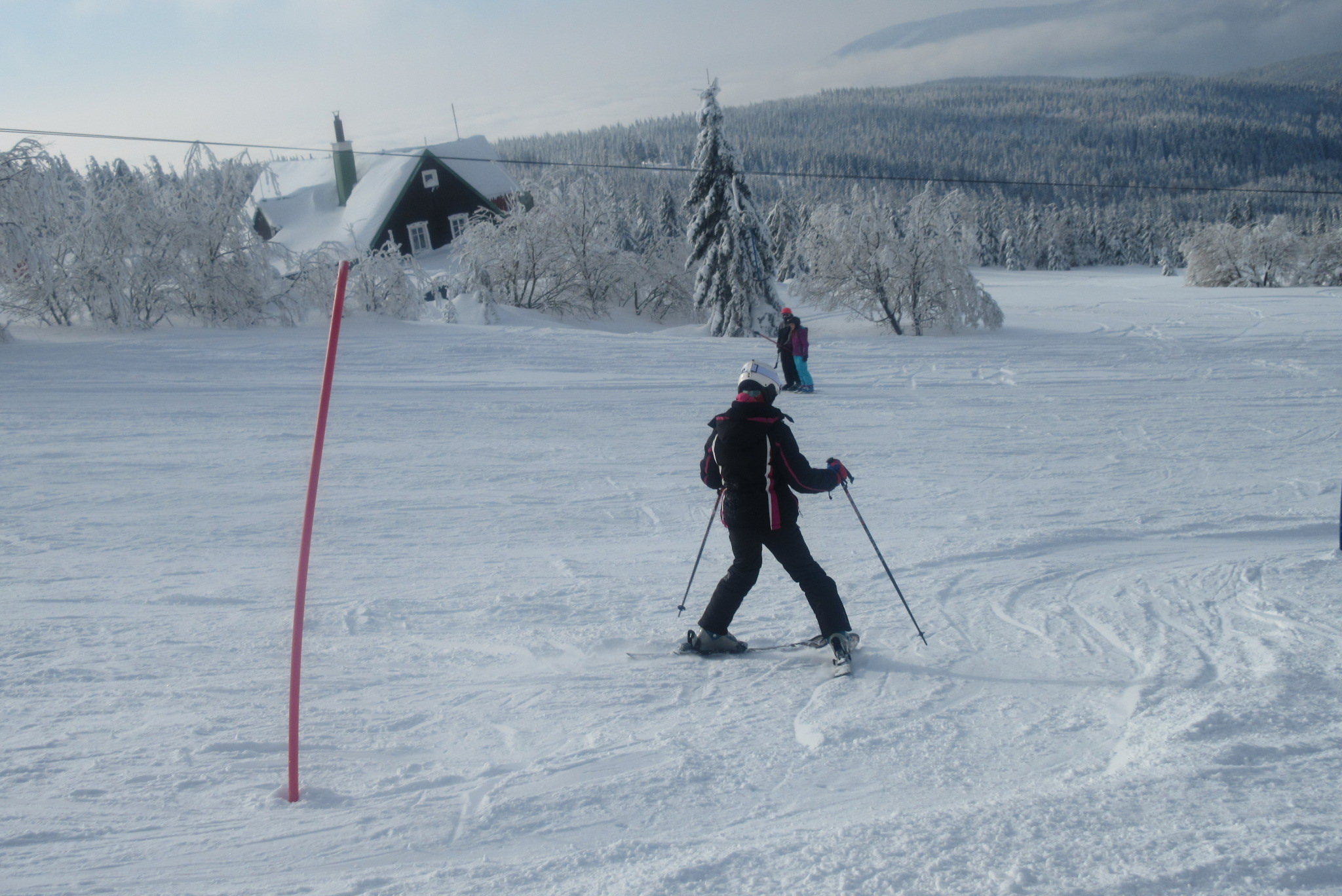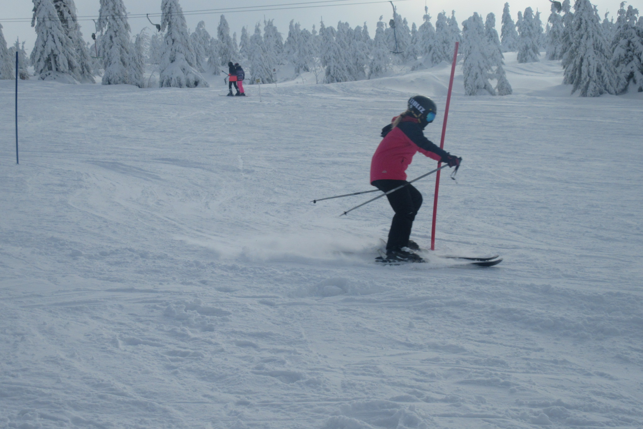 Dnešní den se vyvíjel v soutěžním duchu, protože byly na dopoledne naplánovány závody ve slalomu...až na pár marodů, kteří se nám trochu rozmnožili na tomto kurzu, všichni zúčastnění zdárně zajeli 2 kola a některým se podařilo probojovat až na stupně vítězů: Na 3. místě z děvčat se umístila Nela Syrůčková, 2. místo obsadila Káťa Rulcová a nejlepší slalomářkou se stala Míša Dvořáková. Mezi chlapci 3. místo obsadil Filip Kroužel, 2. Patrik Stohanzl a pomyslné zlato získal Martin Starý, který se stal zároveň celkovým vítězem. Odpoledne probíhalo na svahu už spíše volnější lyžování pouze s individuálním dolaďováním techniky řezaného oblouku, a protože bylo 31.1., rozdávalo se dětem na svahu vysvědčení