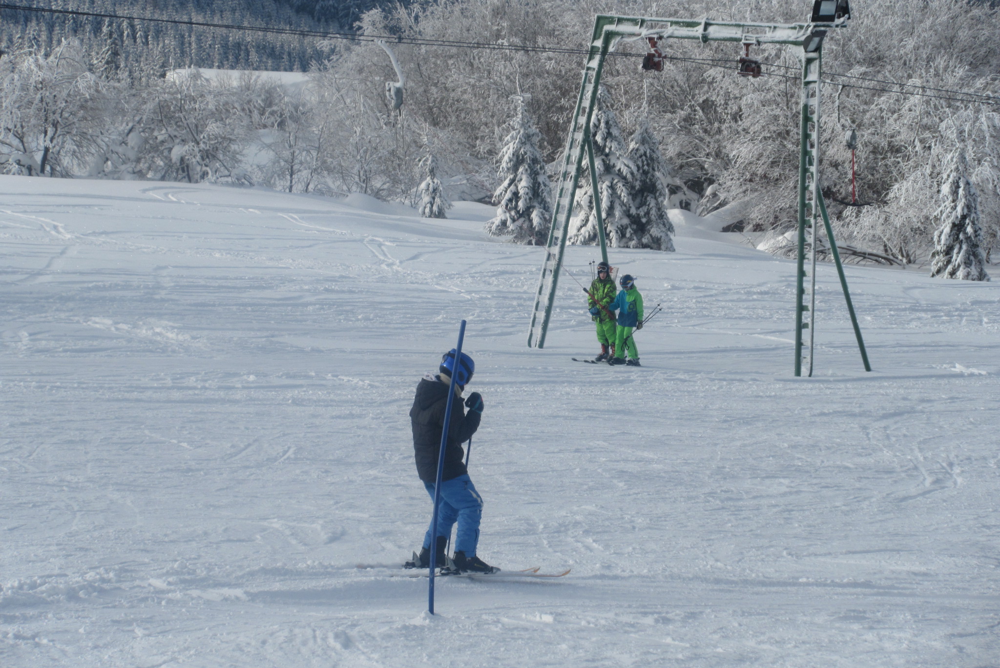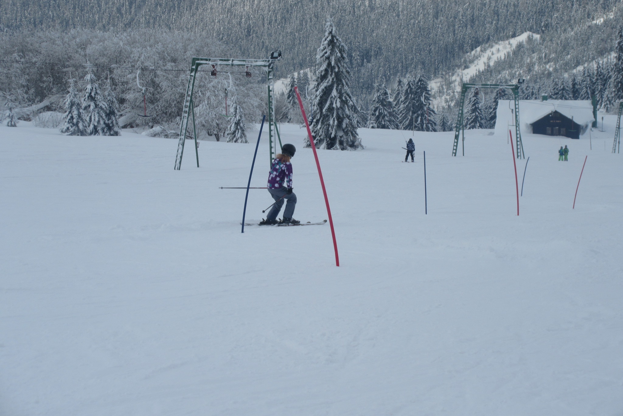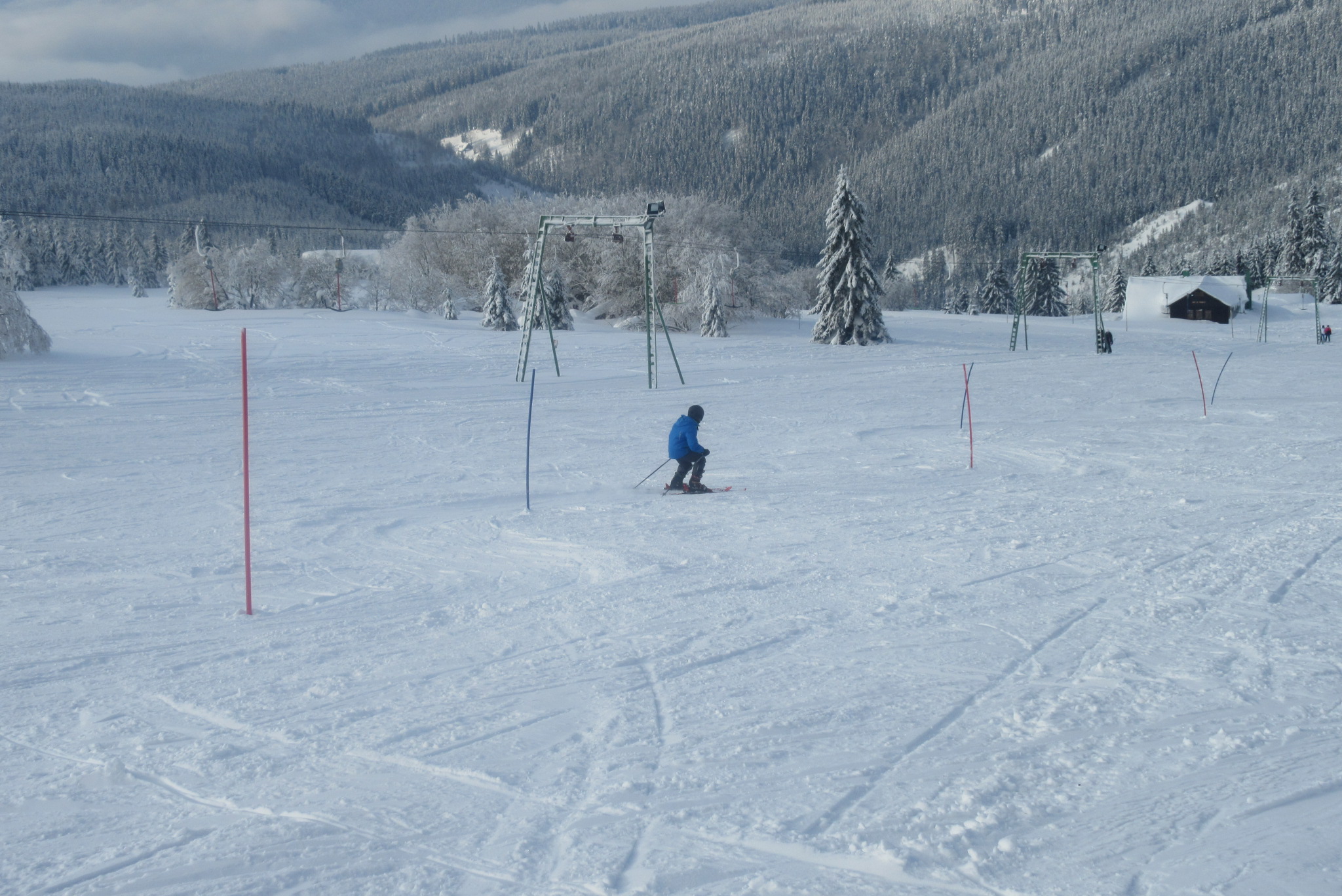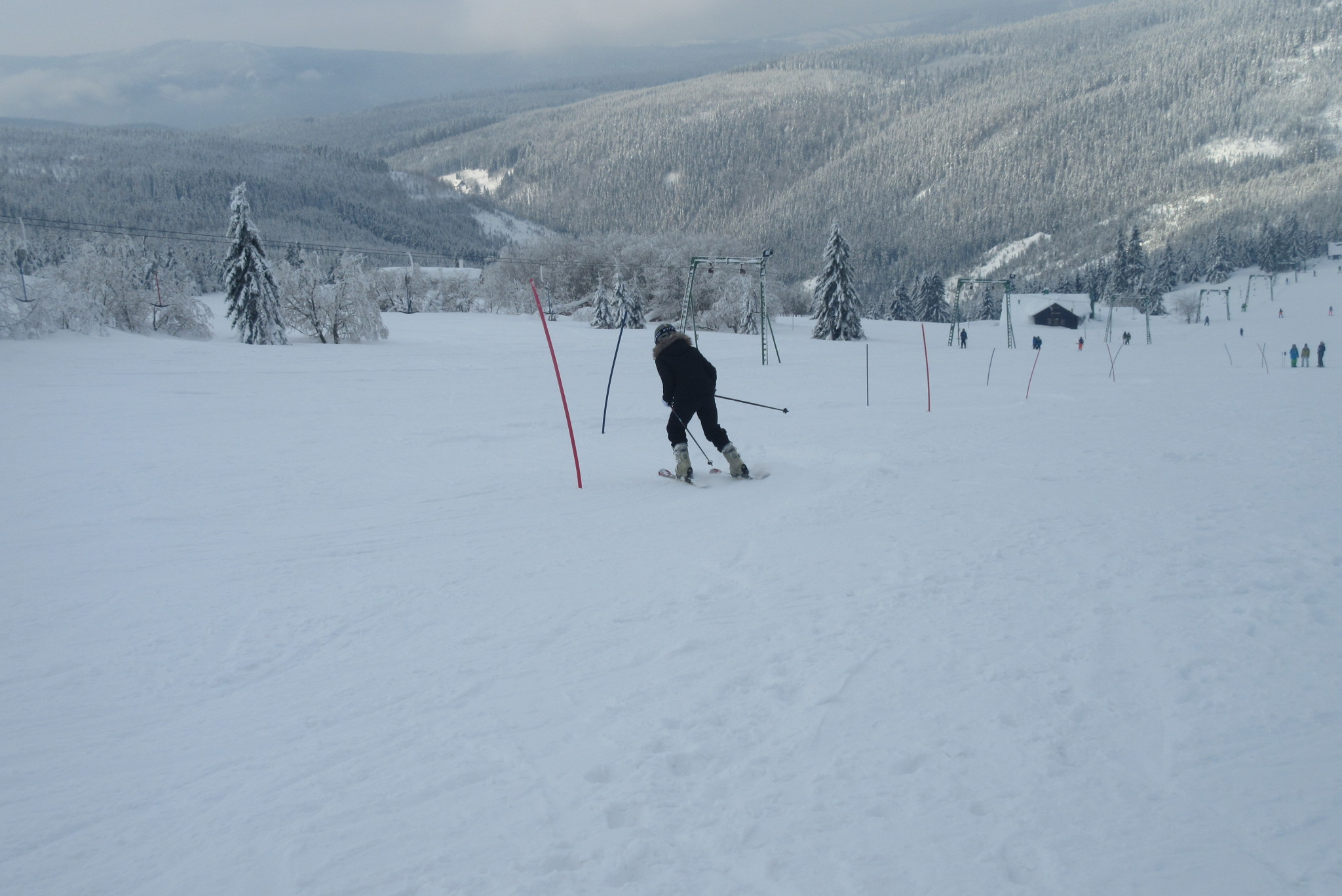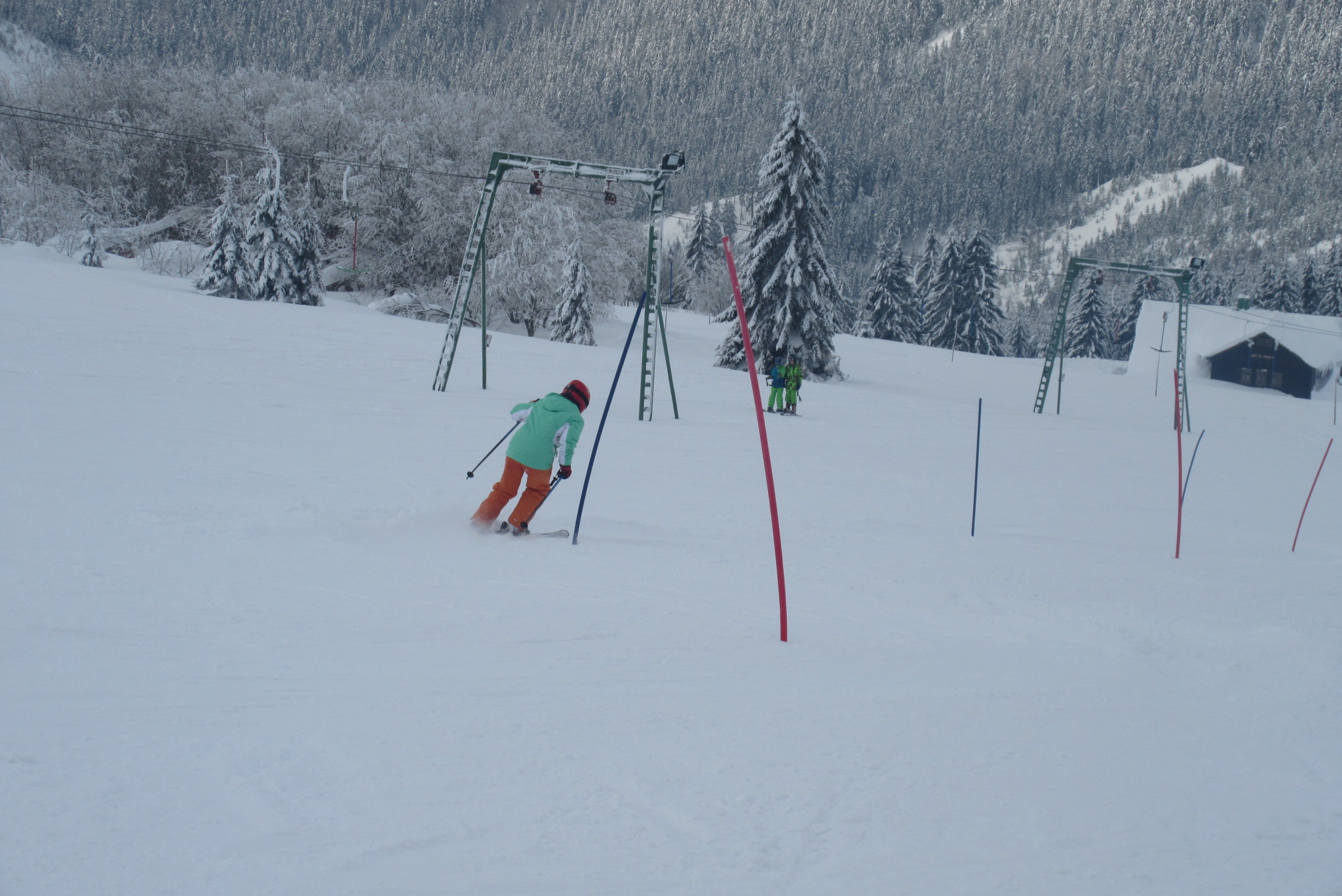 Dnešní den se vyvíjel v soutěžním duchu, protože byly na dopoledne naplánovány závody ve slalomu...až na pár marodů, kteří se nám trochu rozmnožili na tomto kurzu, všichni zúčastnění zdárně zajeli 2 kola a některým se podařilo probojovat až na stupně vítězů: Na 3. místě z děvčat se umístila Nela Syrůčková, 2. místo obsadila Káťa Rulcová a nejlepší slalomářkou se stala Míša Dvořáková. Mezi chlapci 3. místo obsadil Filip Kroužel, 2. Patrik Stohanzl a pomyslné zlato získal Martin Starý, který se stal zároveň celkovým vítězem. Odpoledne probíhalo na svahu už spíše volnější lyžování pouze s individuálním dolaďováním techniky řezaného oblouku, a protože bylo 31.1., rozdávalo se dětem na svahu vysvědčení
