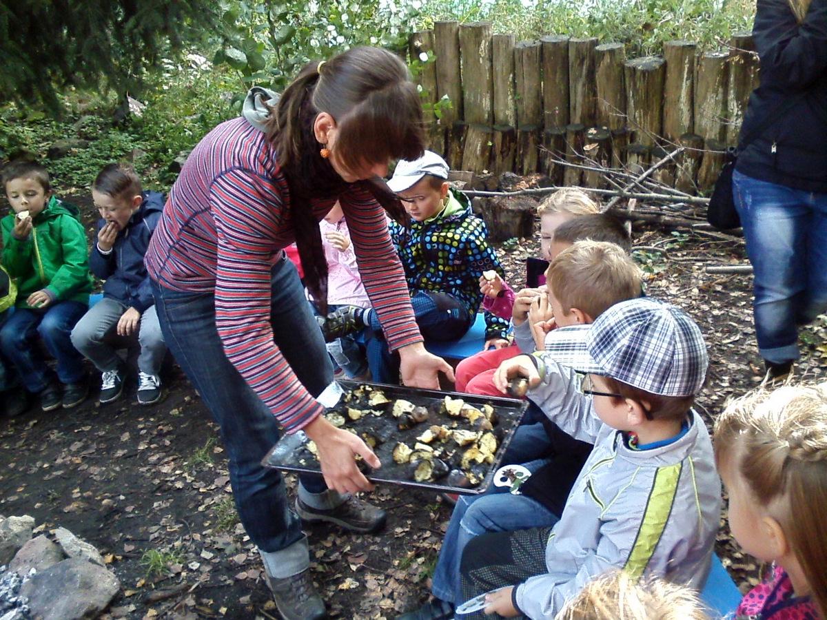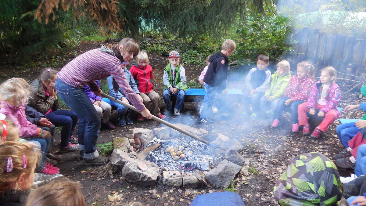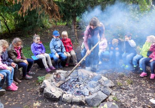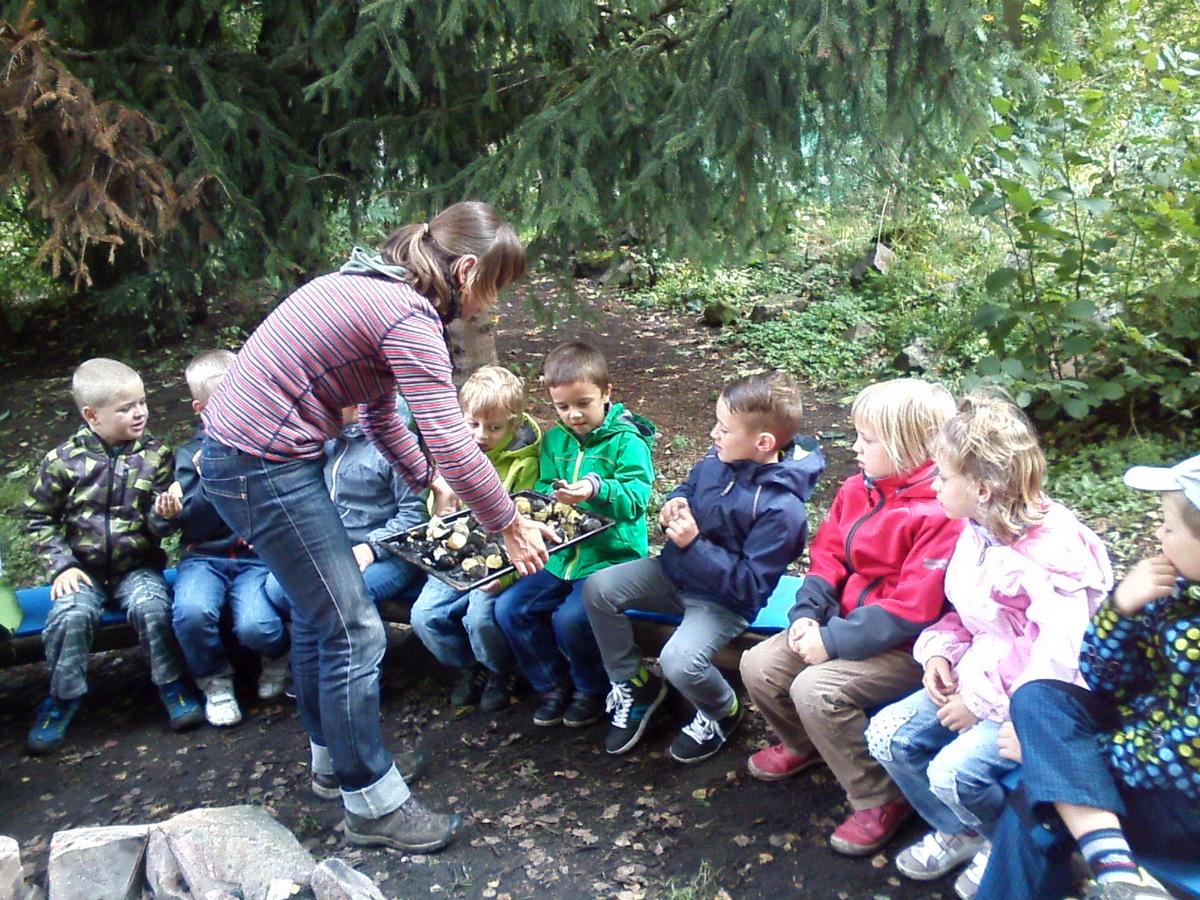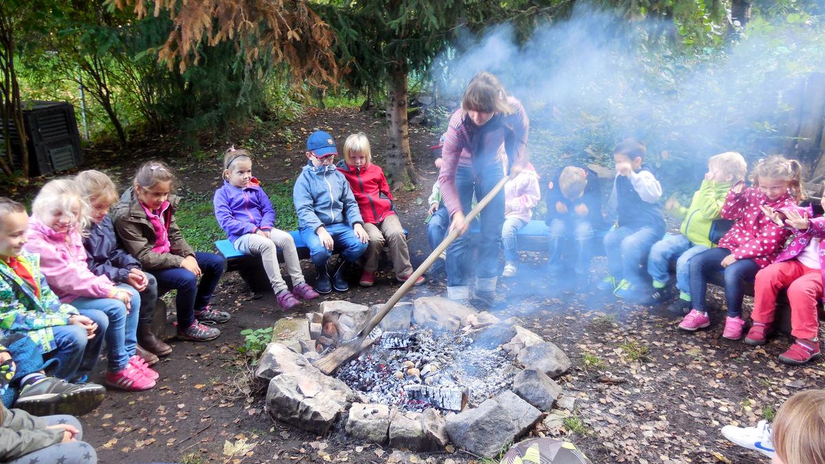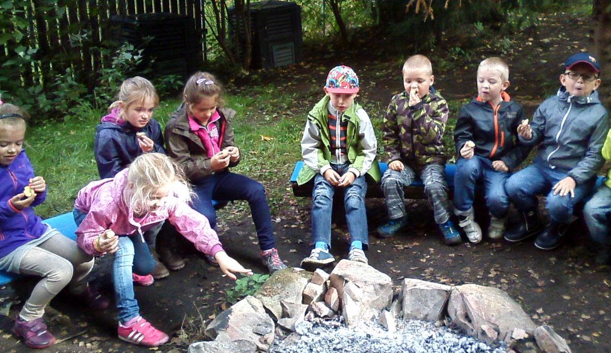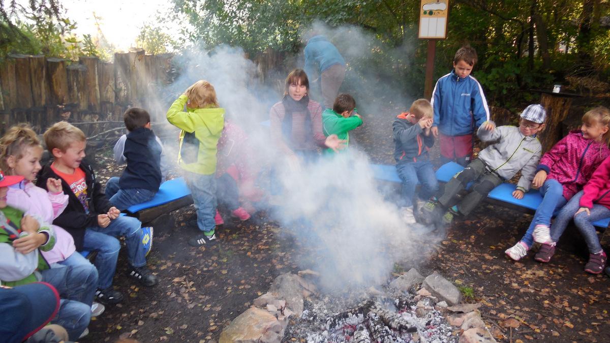 Svítilo nám sluníčko, uvařili jsme si výborný čajíček, opekli brambory v popelu, stihli jsme nasbírat i barvičky pro vílu Barvínku, aby měla dost barev na barvení listů. Byli jsme hodní, nikdo se neztratil ani se nespálil u ohniště, takže - prima den v Ekocentru Paleta.