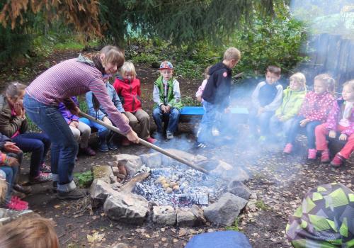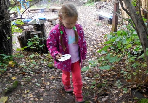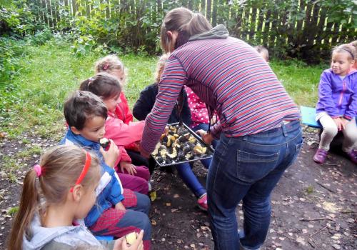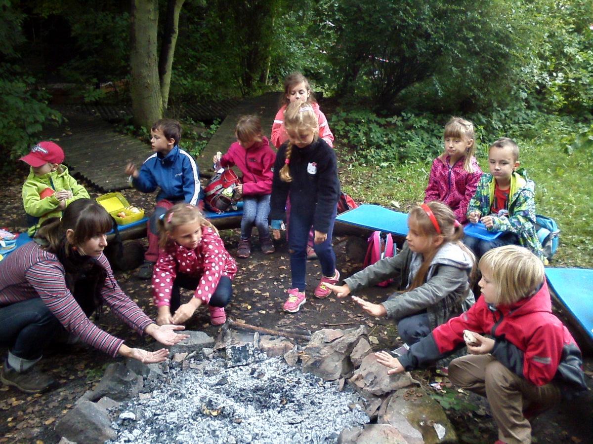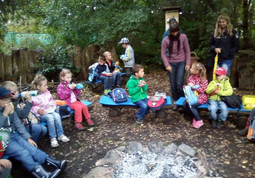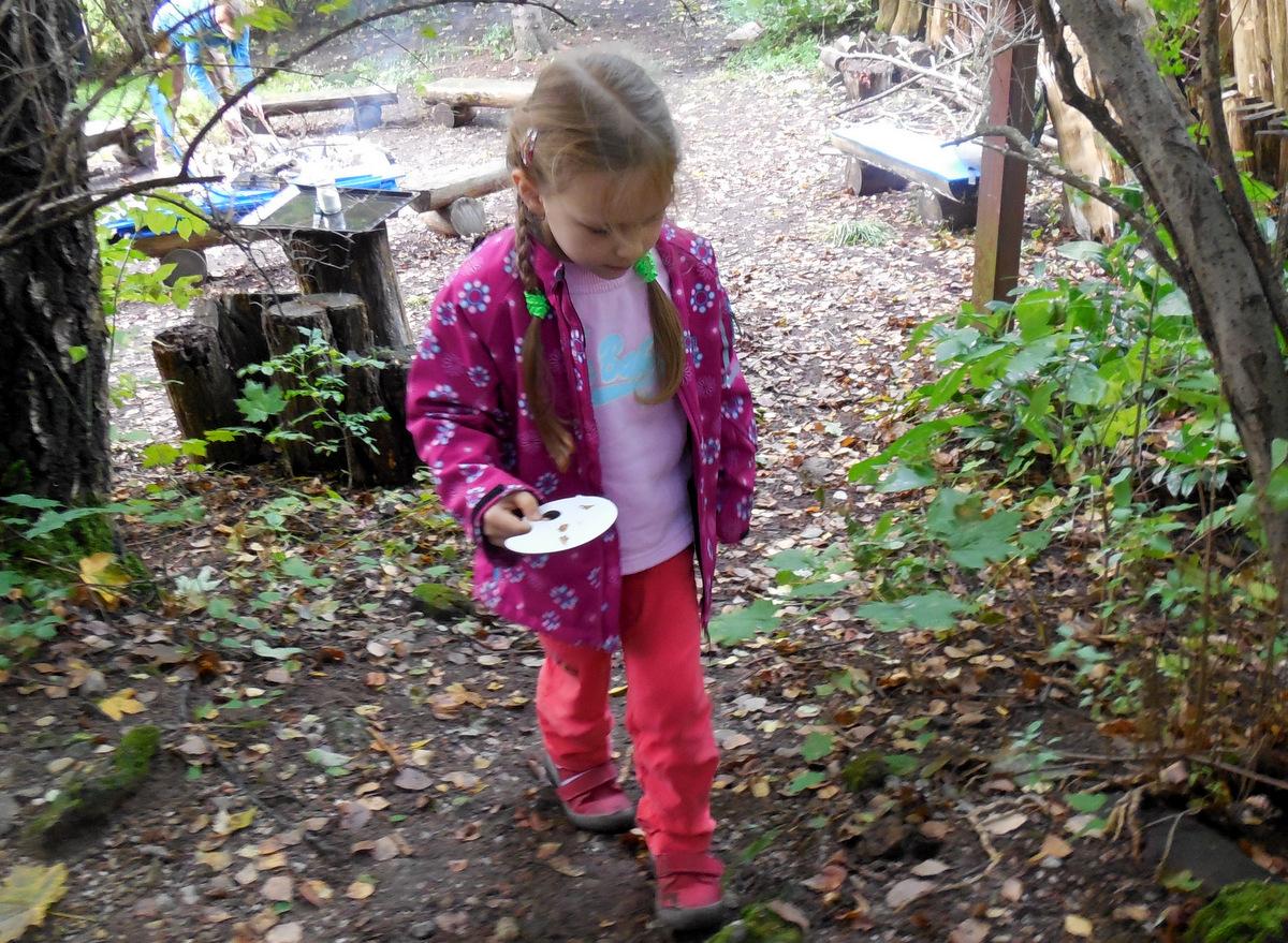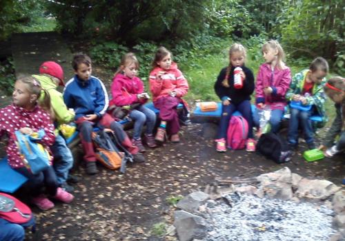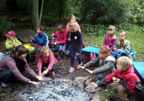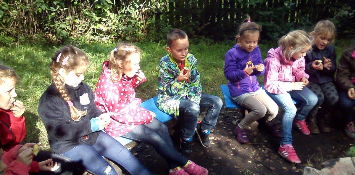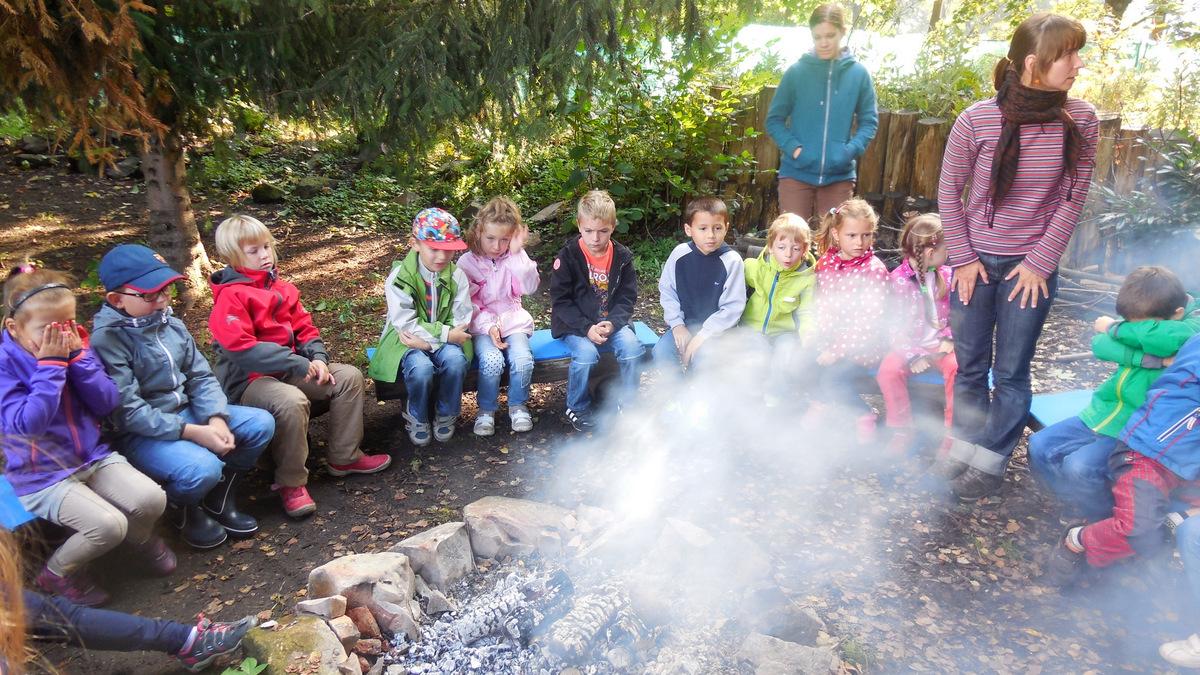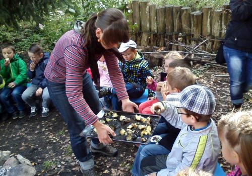 Svítilo nám sluníčko, uvařili jsme si výborný čajíček, opekli brambory v popelu, stihli jsme nasbírat i barvičky pro vílu Barvínku, aby měla dost barev na barvení listů. Byli jsme hodní, nikdo se neztratil ani se nespálil u ohniště, takže - prima den v Ekocentru Paleta.