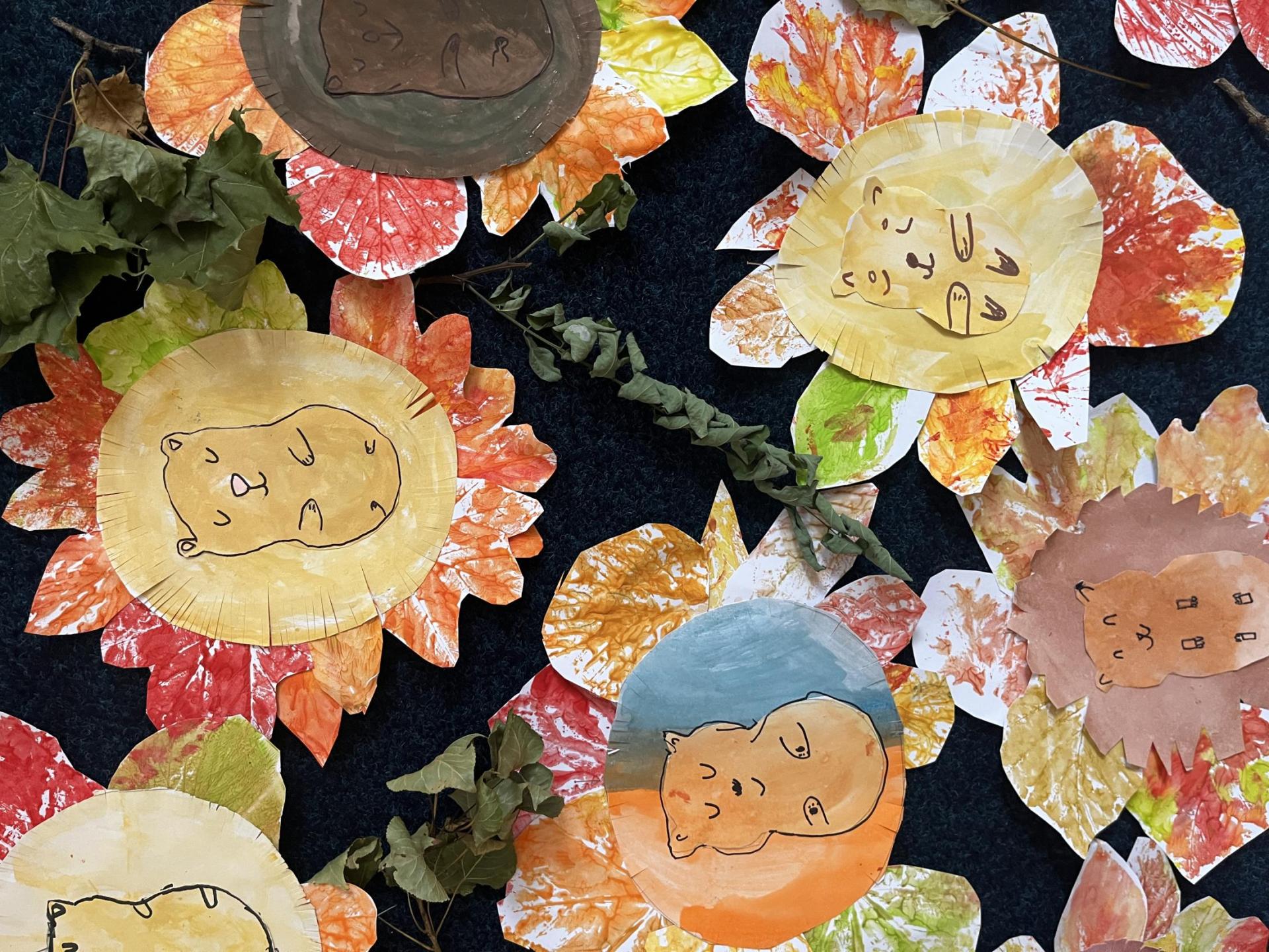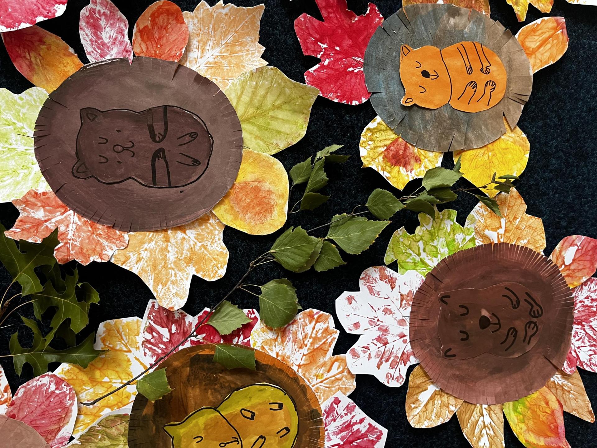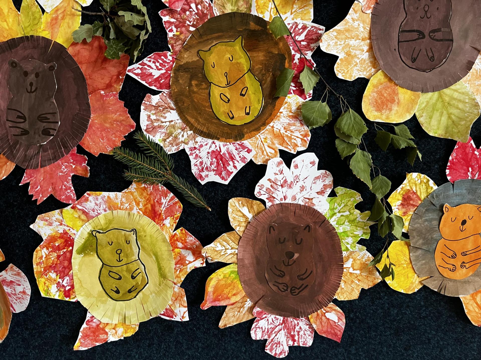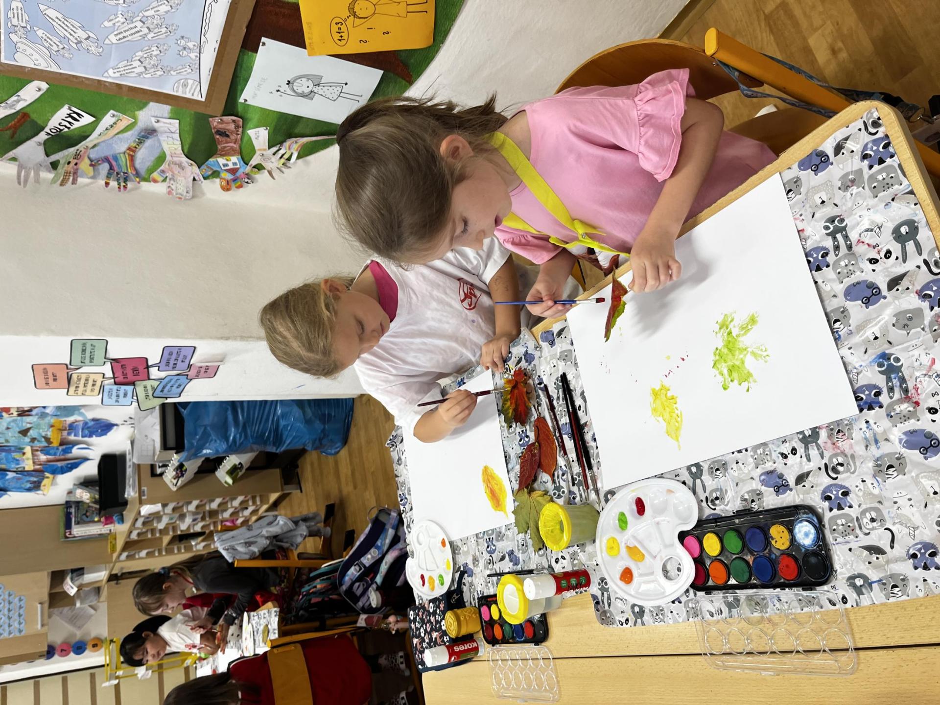 Na podzim jsme se učili o stromech, zvířatech v lese a tak jsme i o výtvarce tyto náměty využili. Použili jsme listy a vytvořili jsme takové veverky zachumlané v listí. U toho jsme se učili být pečliví a pečlivě stříhat.