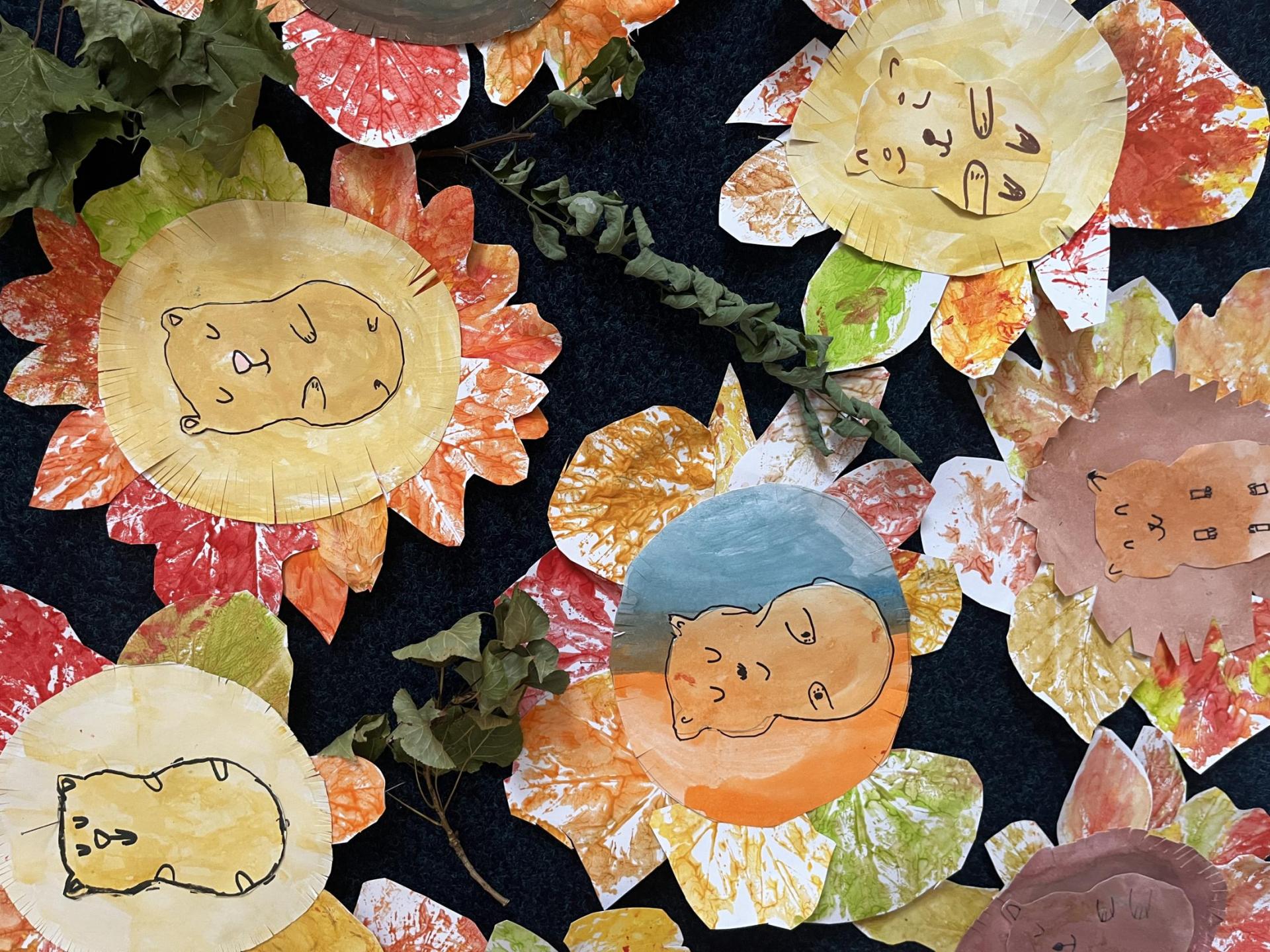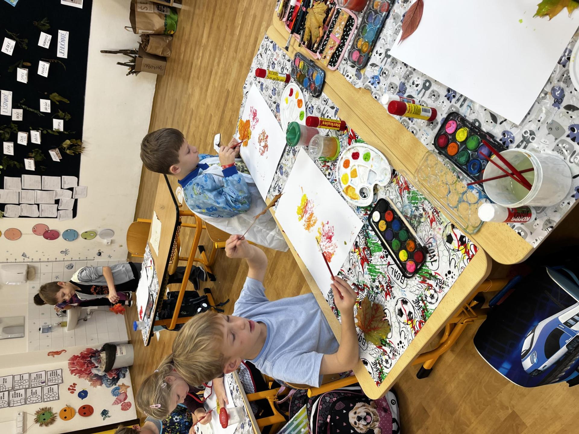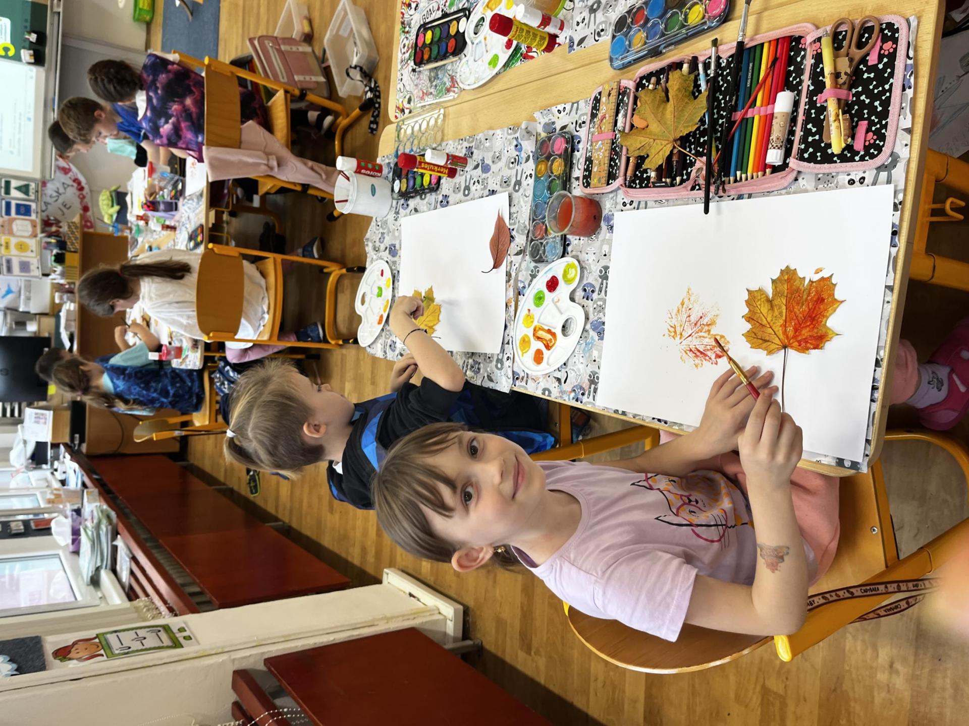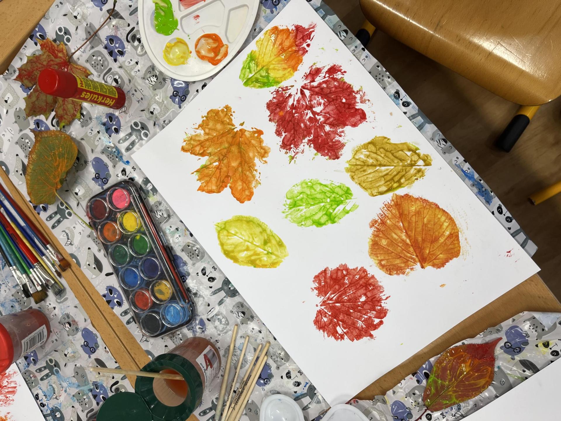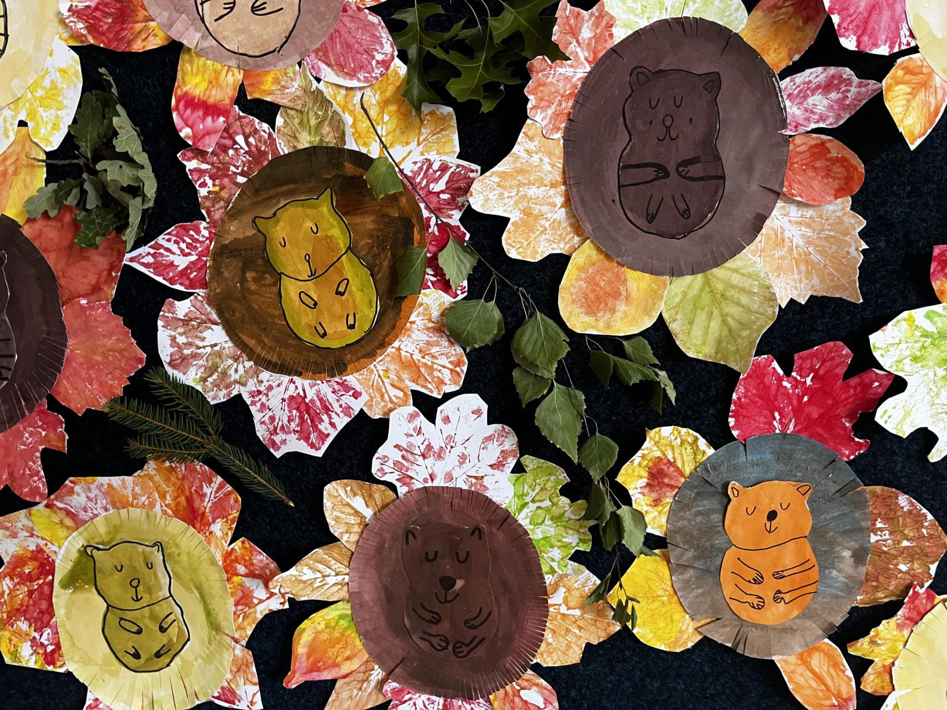 Na podzim jsme se učili o stromech, zvířatech v lese a tak jsme i o výtvarce tyto náměty využili. Použili jsme listy a vytvořili jsme takové veverky zachumlané v listí. U toho jsme se učili být pečliví a pečlivě stříhat.