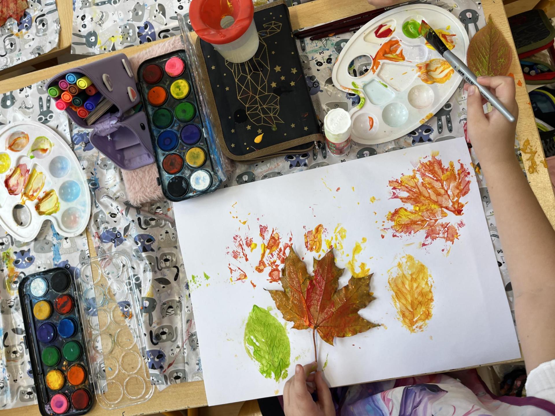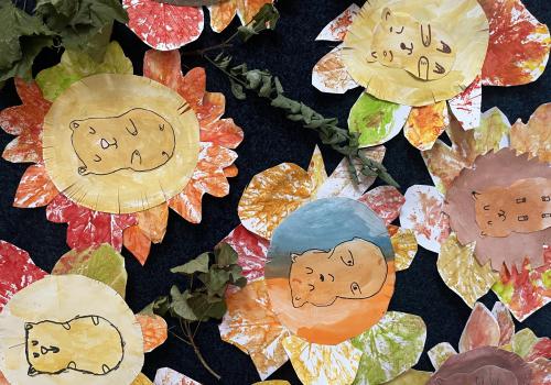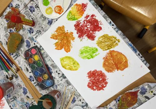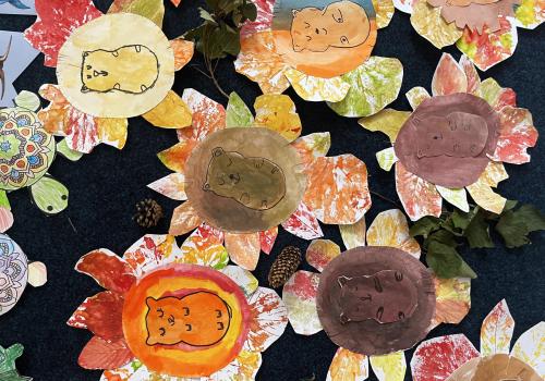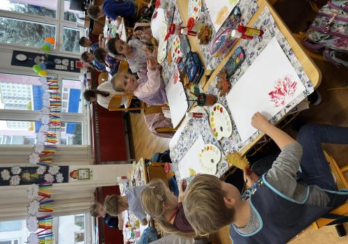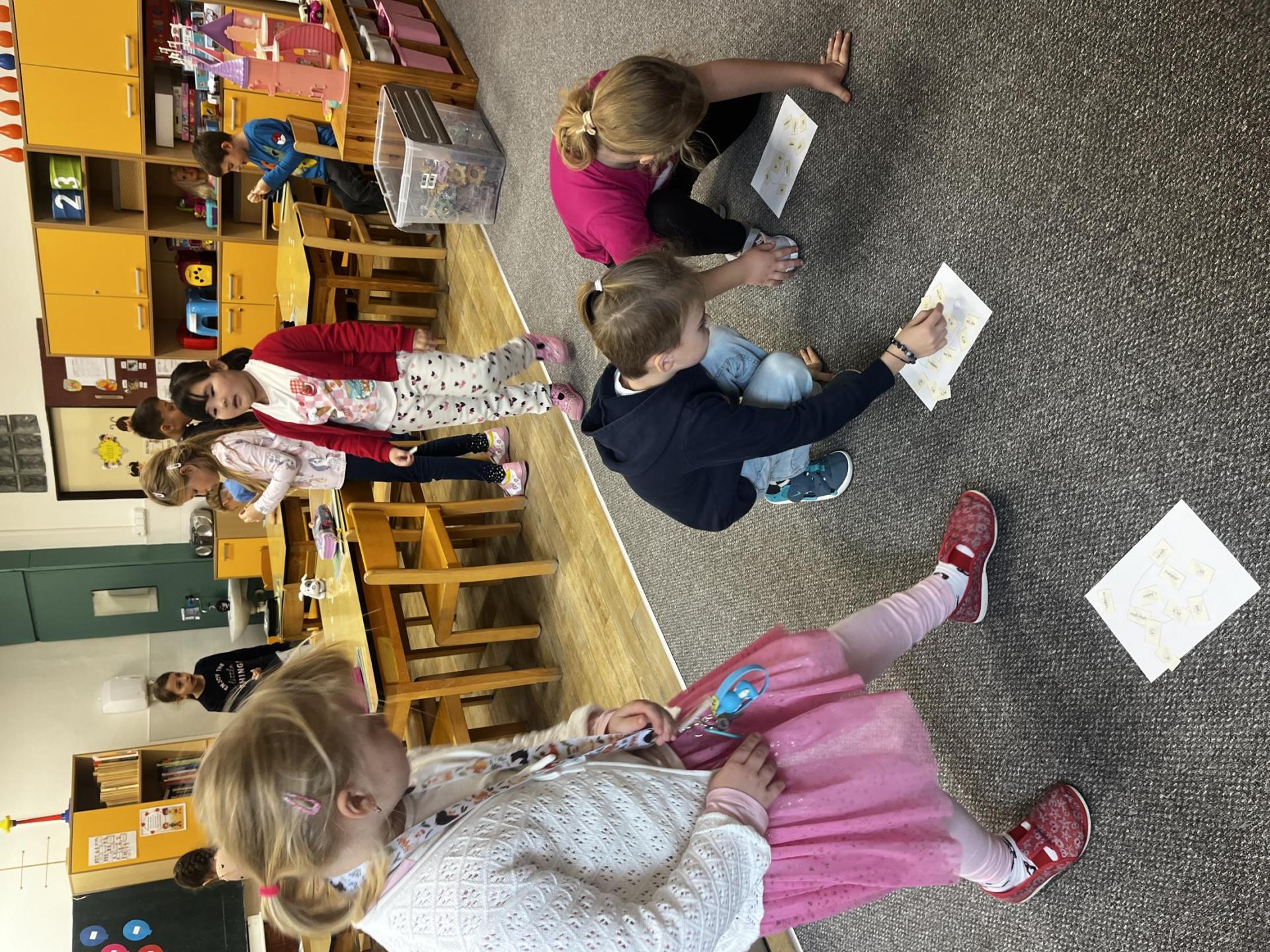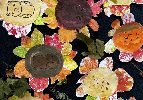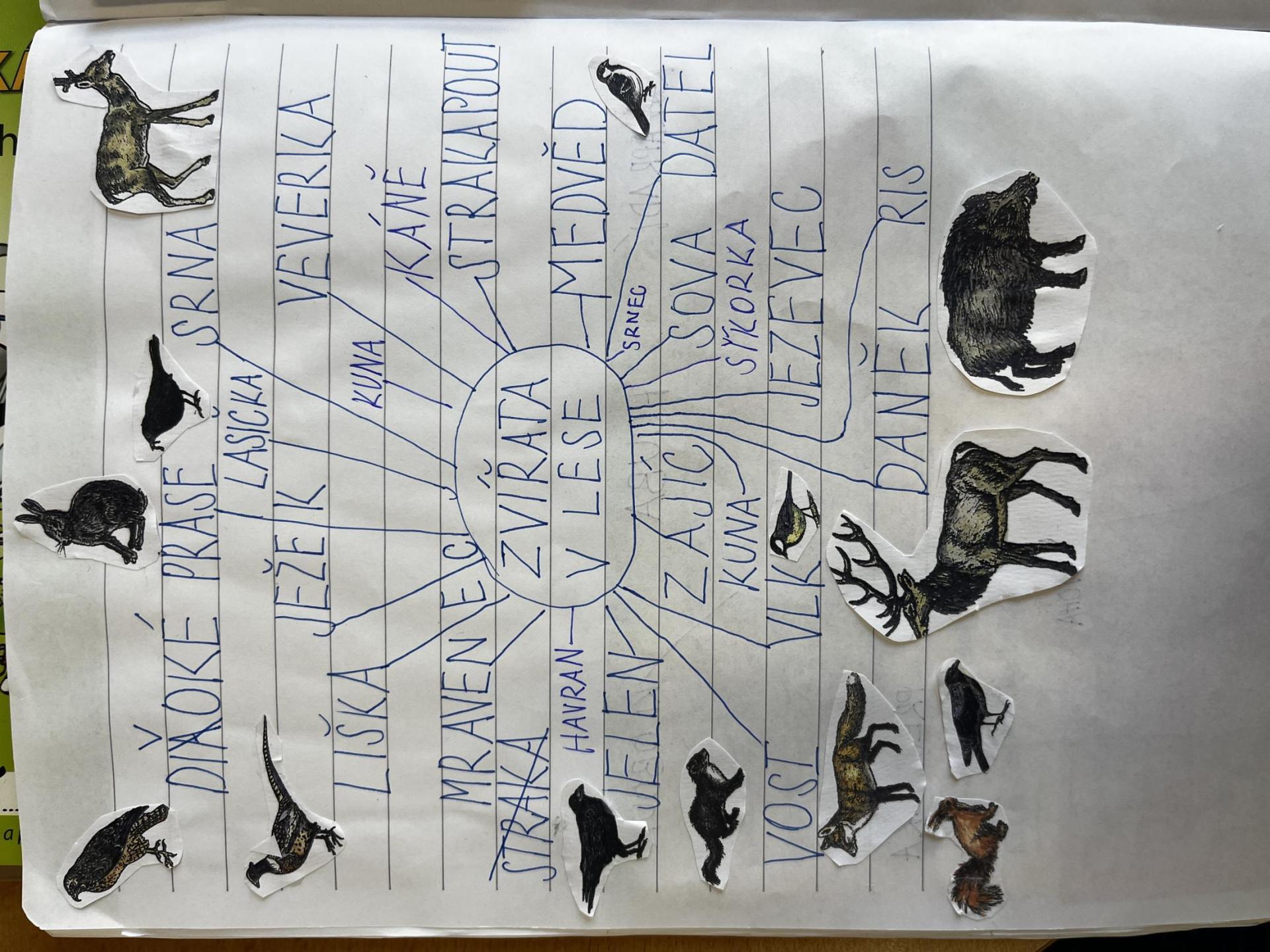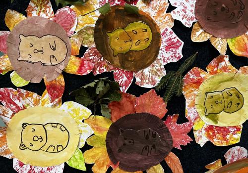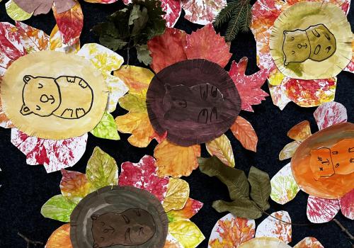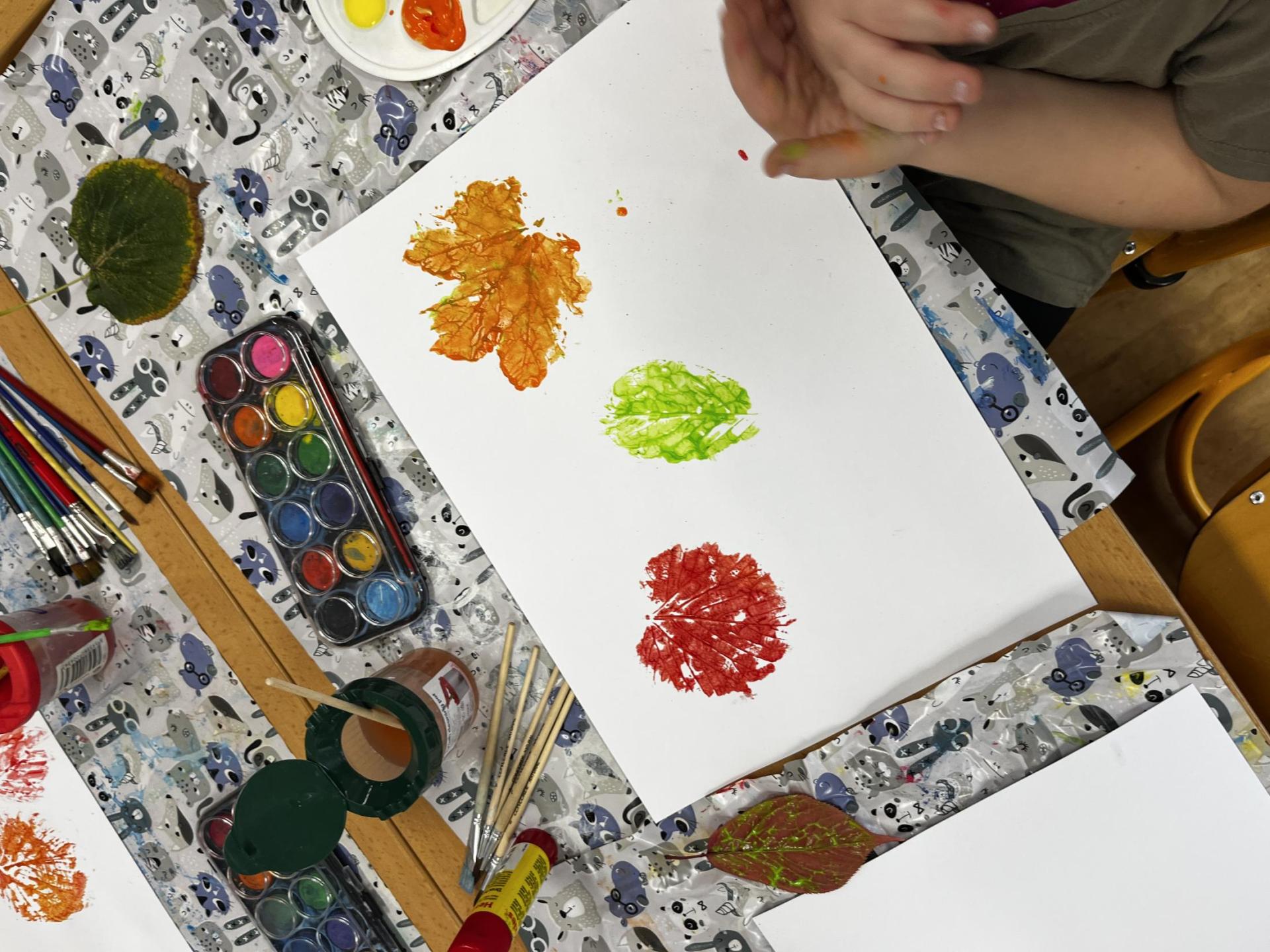Na podzim jsme se učili o stromech, zvířatech v lese a tak jsme i o výtvarce tyto náměty využili. Použili jsme listy a vytvořili jsme takové veverky zachumlané v listí. U toho jsme se učili být pečliví a pečlivě stříhat.