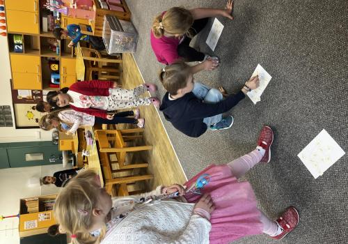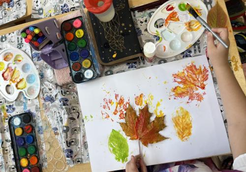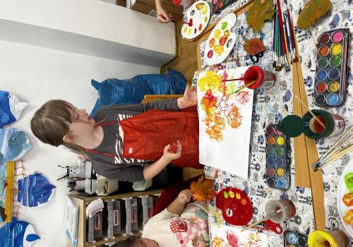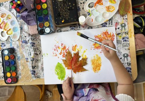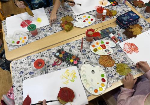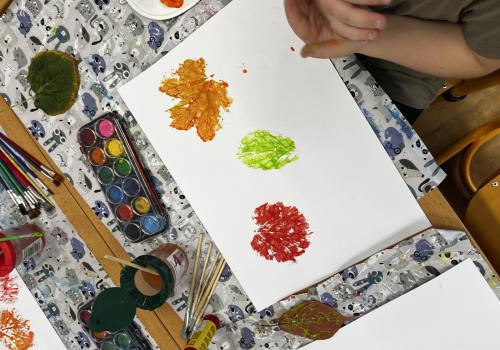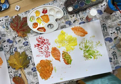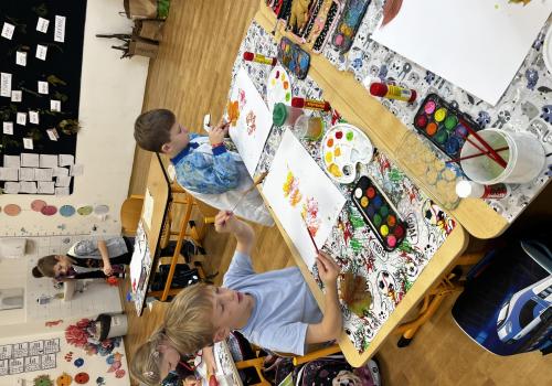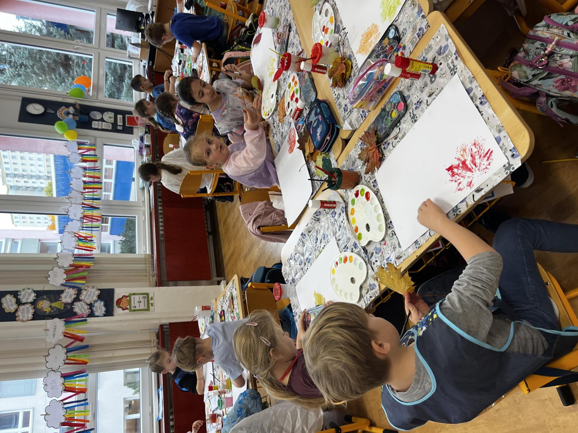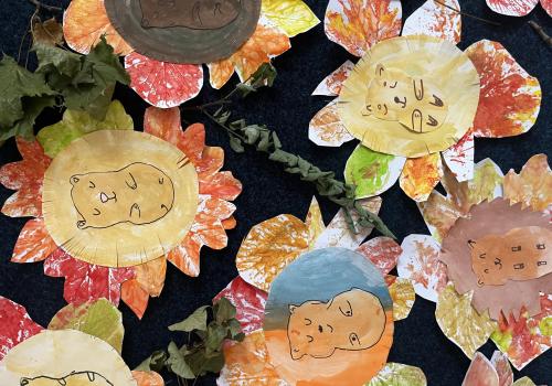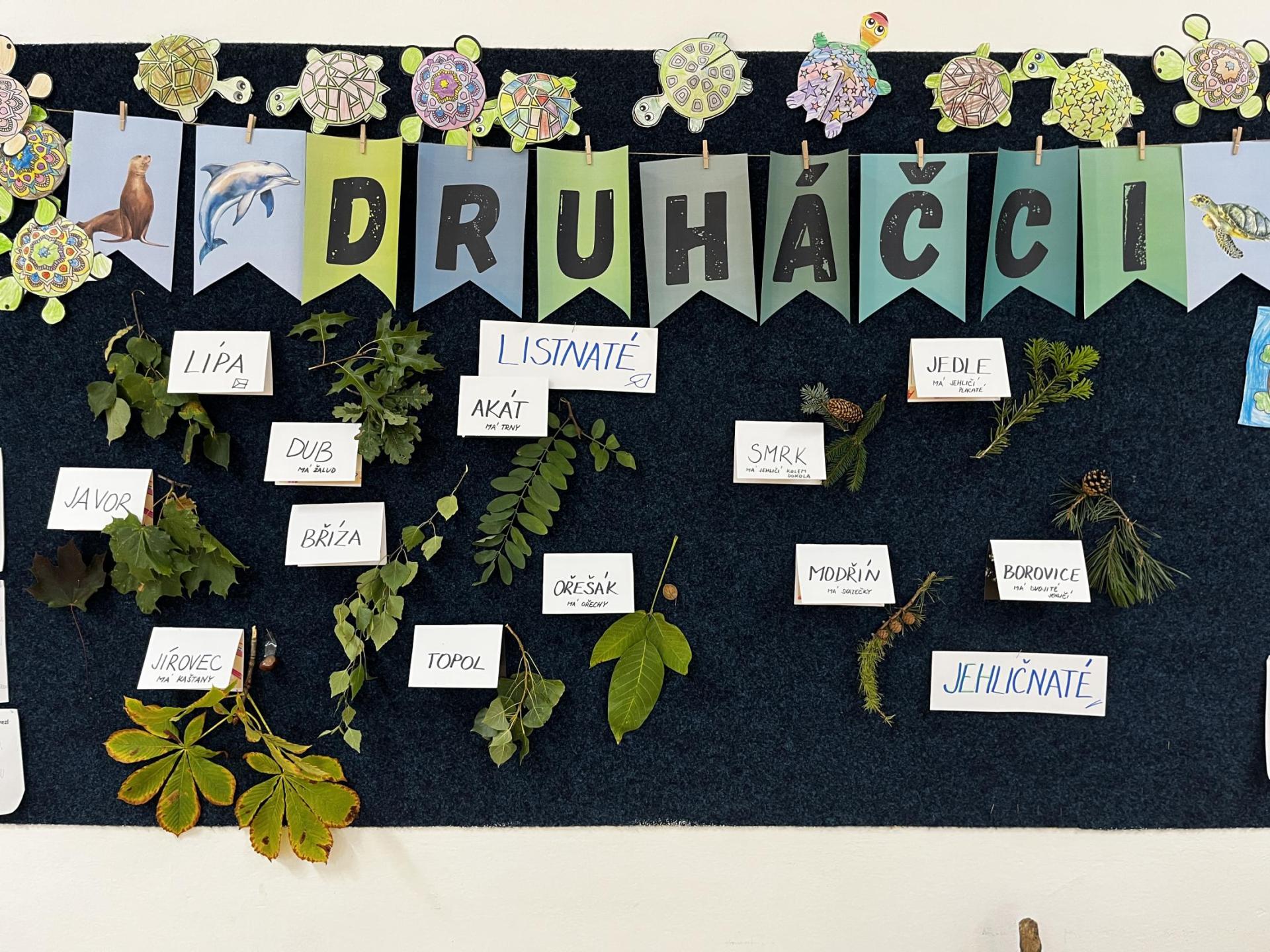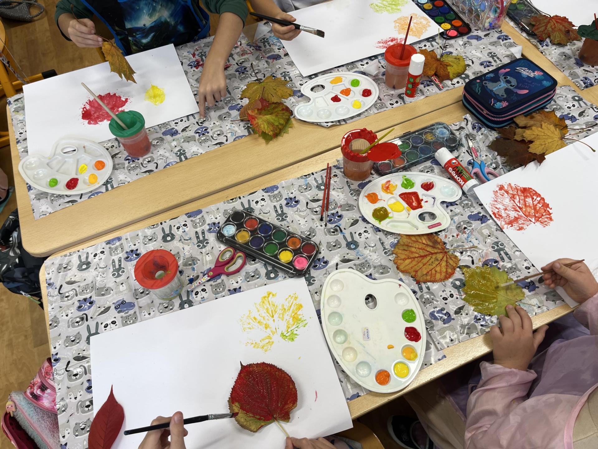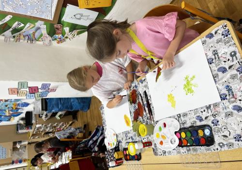 Na podzim jsme se učili o stromech, zvířatech v lese a tak jsme i o výtvarce tyto náměty využili. Použili jsme listy a vytvořili jsme takové veverky zachumlané v listí. U toho jsme se učili být pečliví a pečlivě stříhat.