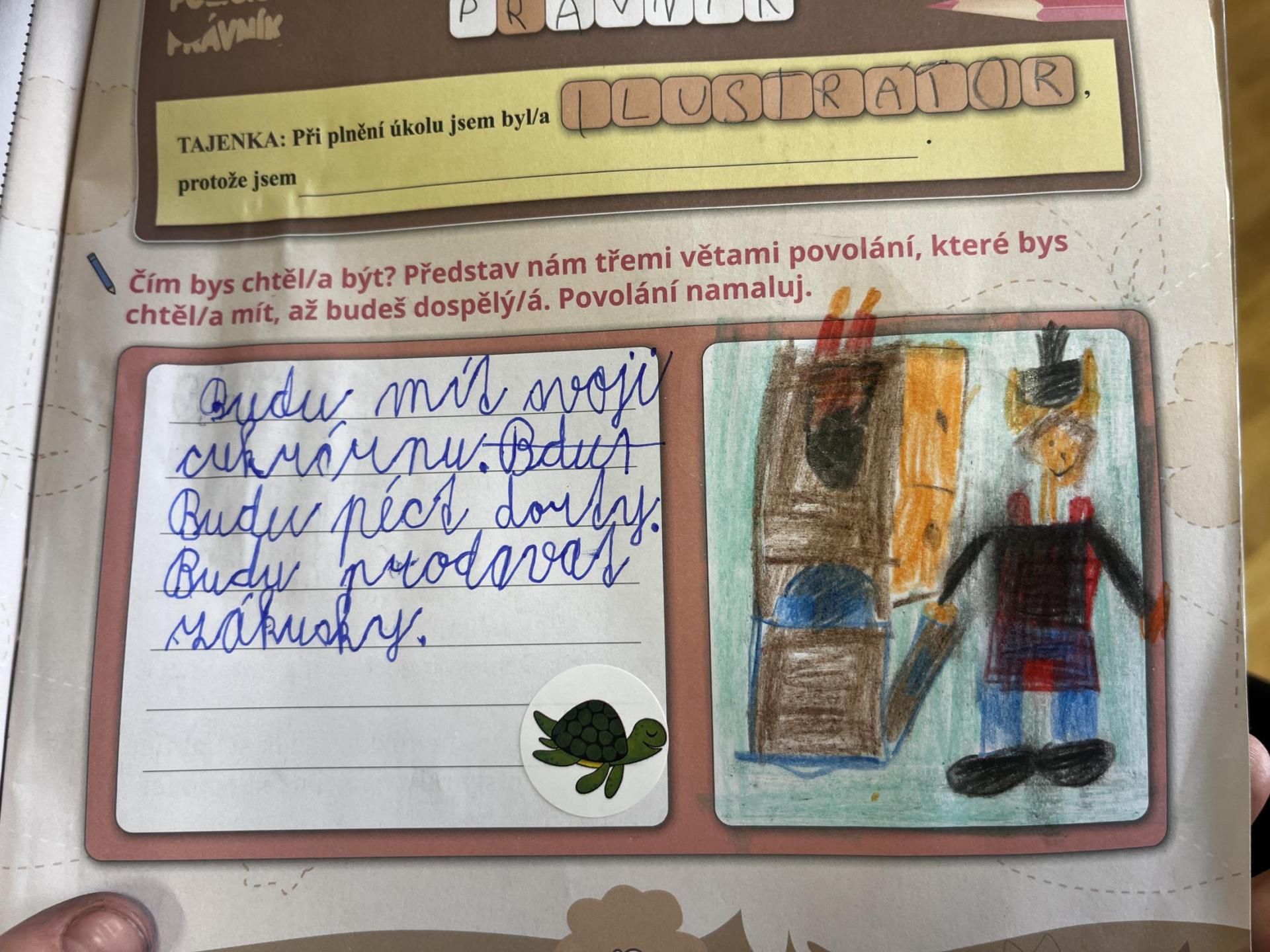 V čítance jsme si zase vyprávěli o tom, čím bychom chtěli být, až vyrosteme. To byla paráda.