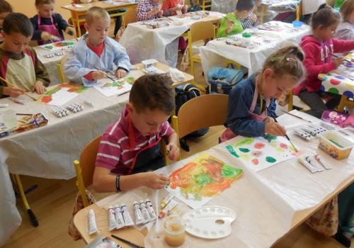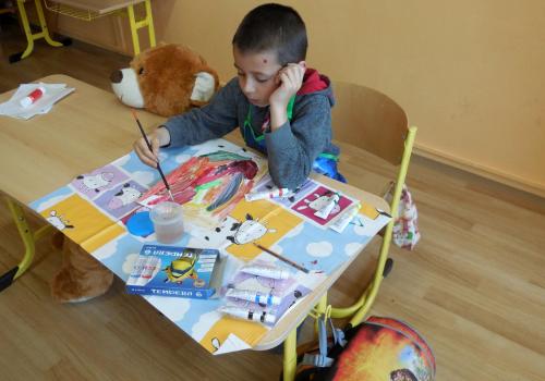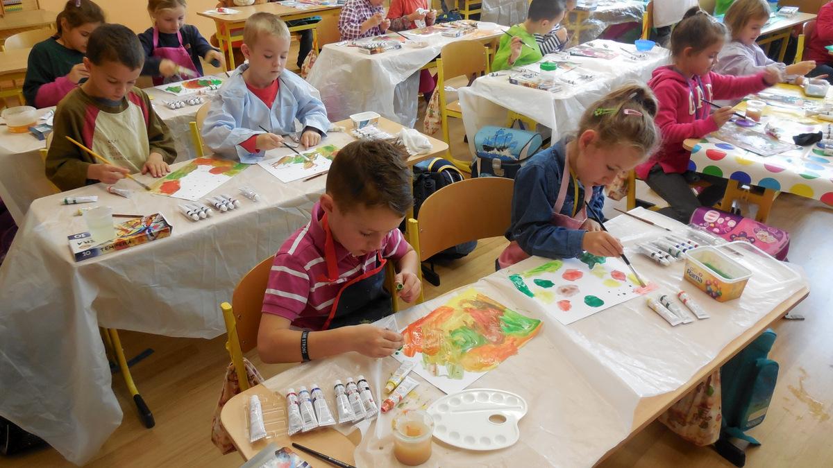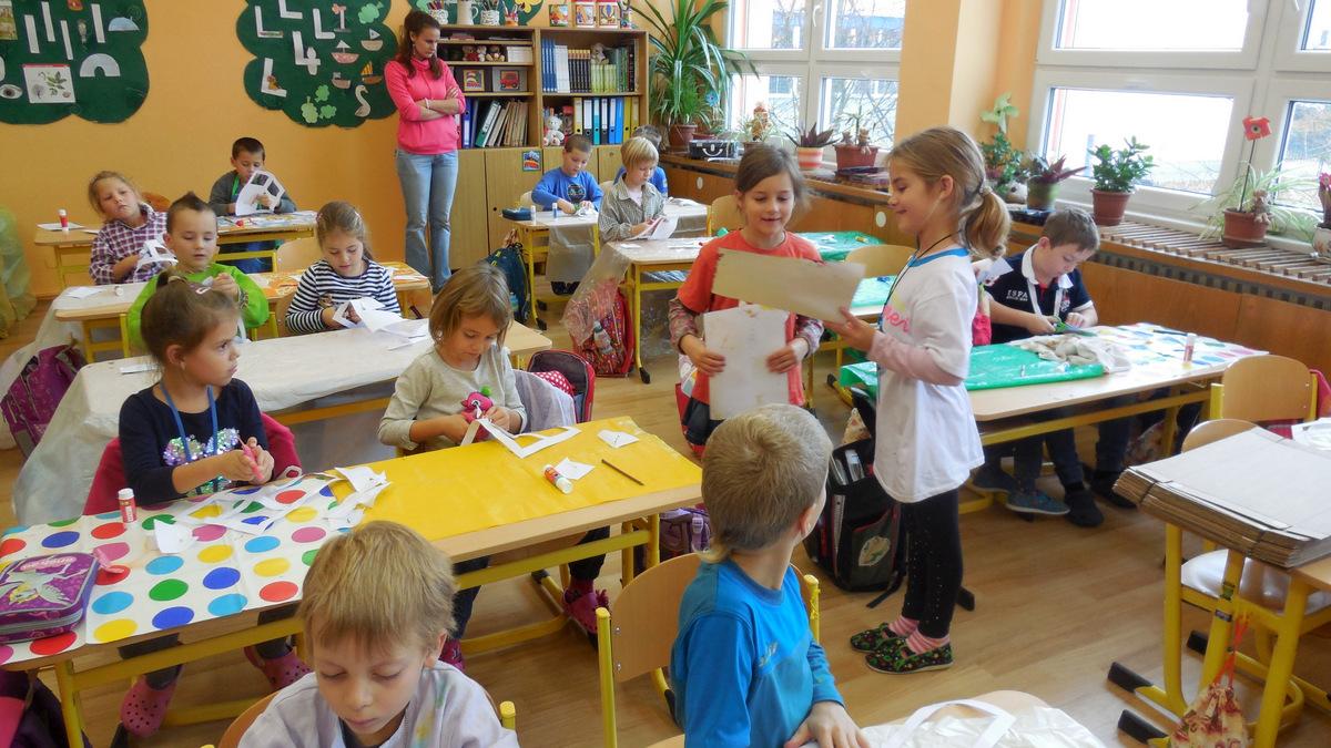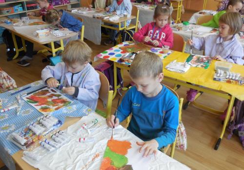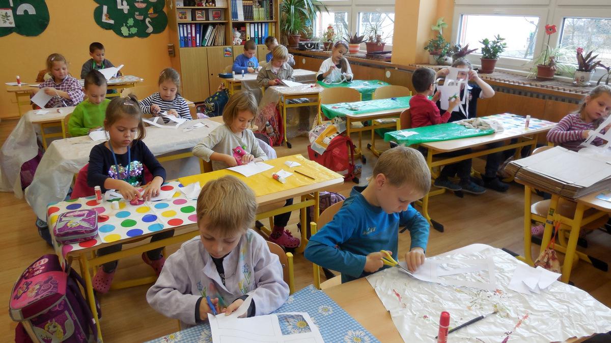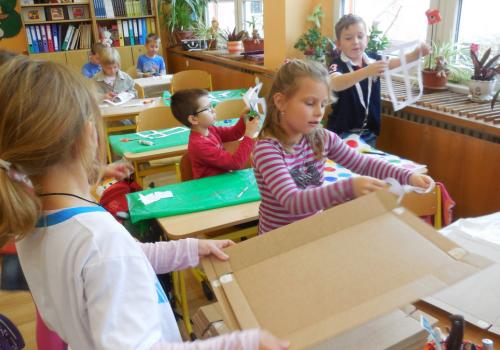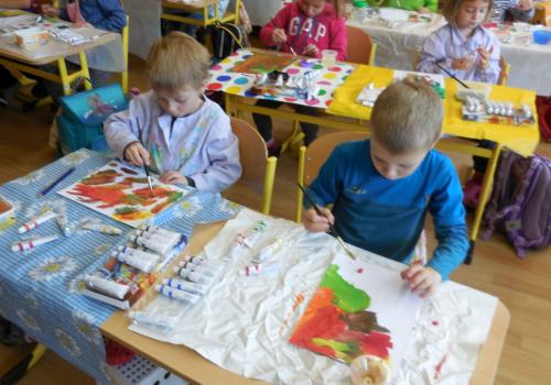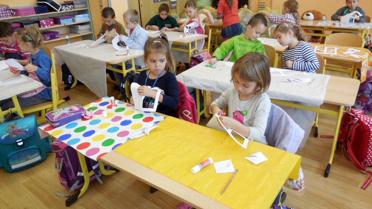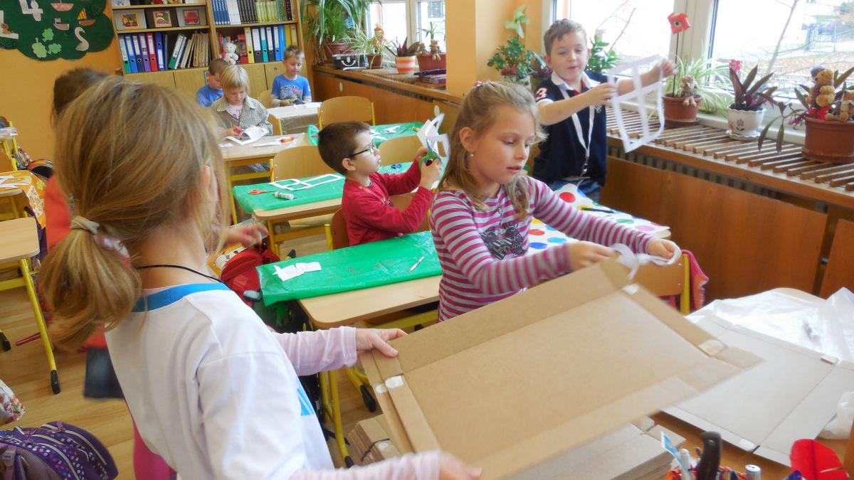 Poprvé jsme si s temperovými barvami vlastně hráli - skoro kouzlili. Pozorovali jsme, jak se mění barvy při jejich míchání. Vystříhnout a nalepit rám okna už byl větší oříšek, ale nakonec jsme ho také rozlouskli.
