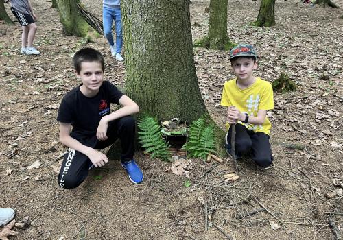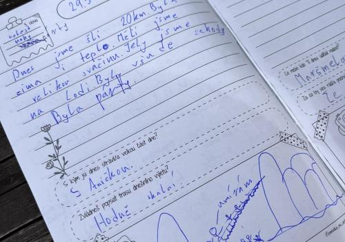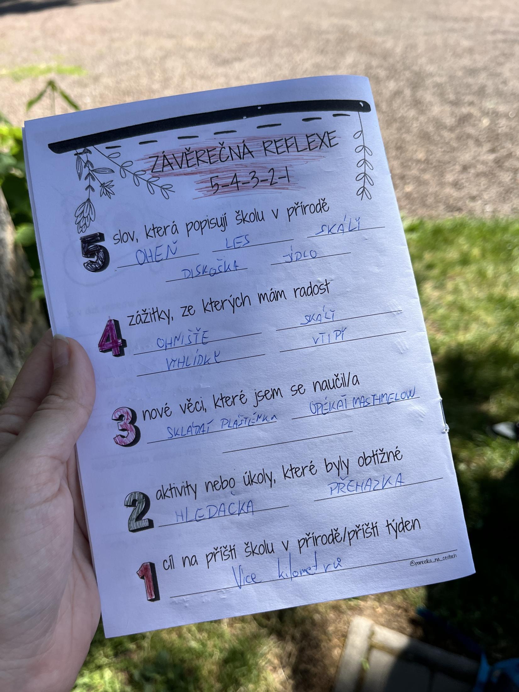 Ráno jsme se už jen po lehkém klusu vydali na snídani, po které jsme museli vyklidit pokoje a zabalit si. Po "odbavení" kufrů jsme dohnali restíky v deníčcích a po sváče se vydali do lesa stavět domečky, které byly podle paní učitelky opravdu exkluzivní.