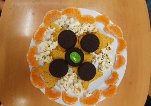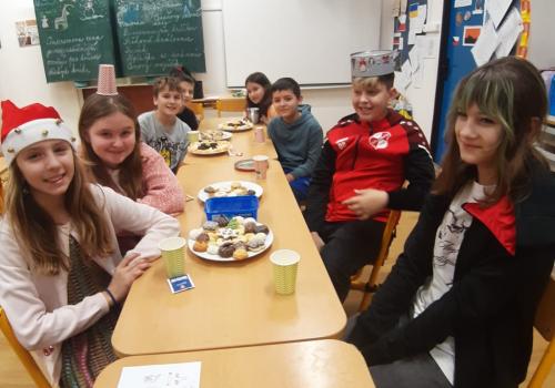 Kluci krásně upravili talířky s dobrotami, uvařili jsme si čaj a povídali si o Vánocích, jak je lidé slavili před 100 i méně lety, co vlastně Vánoce představují bez ohledu na víru či ateismus. Sledovali jsme i méně radostné úkazy na naší planetě, např. poušť Atacama zavalenou oblečením, které se vyrobilo jen pro to, aby se vyrobilo a následně vyhodilo, kácení deštných pralesů pro pochybný zisk majitelů palmových plantáží. Odklopili jsme i cípek manipulace s názvem reklama.