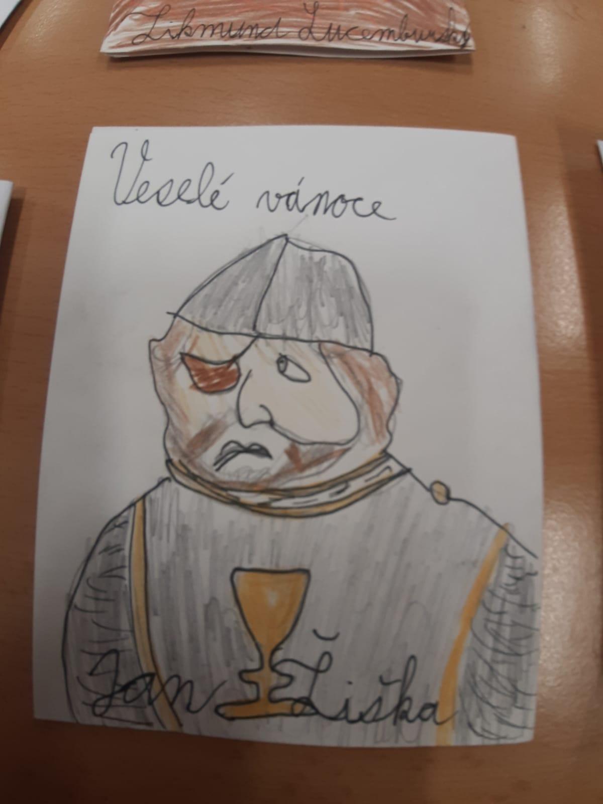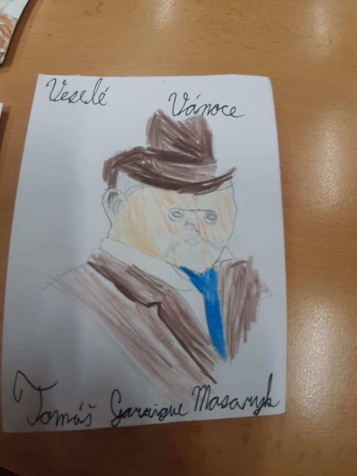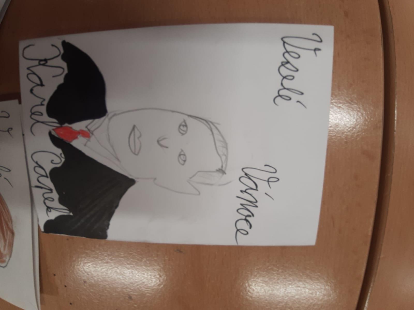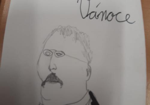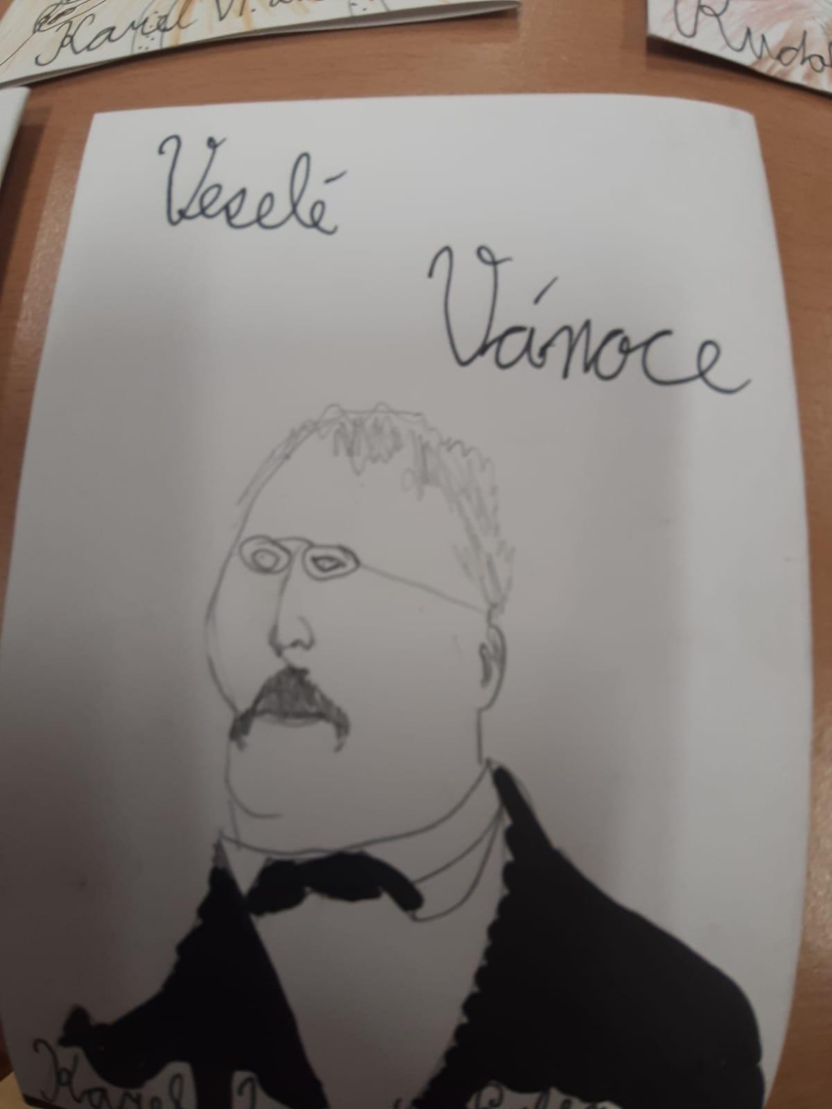 Štěpánek doma vyrobil vánoční přání s osobnostmi českých dějin. Všichni losovali svoji osobnost, jen paní učitelce byl přidělen pan Jan Ámos Komenský!