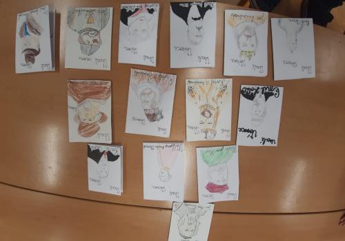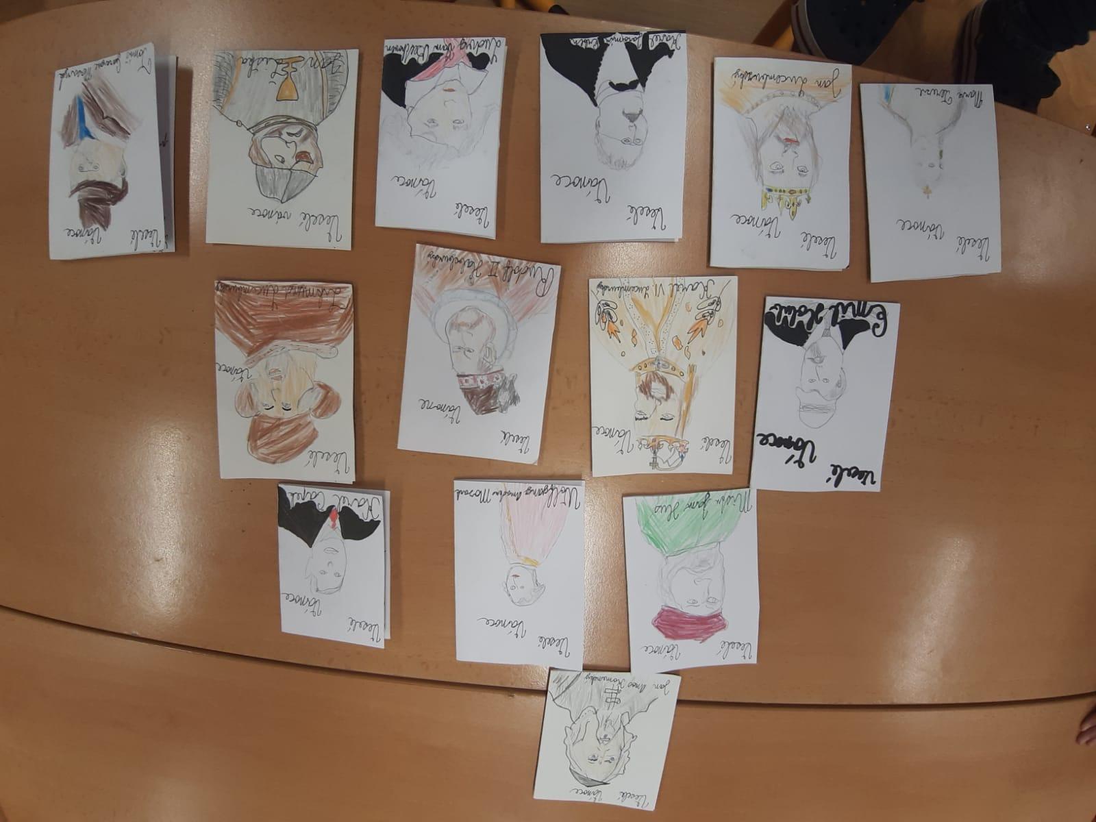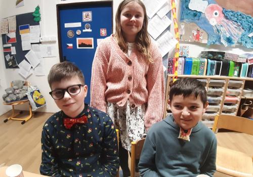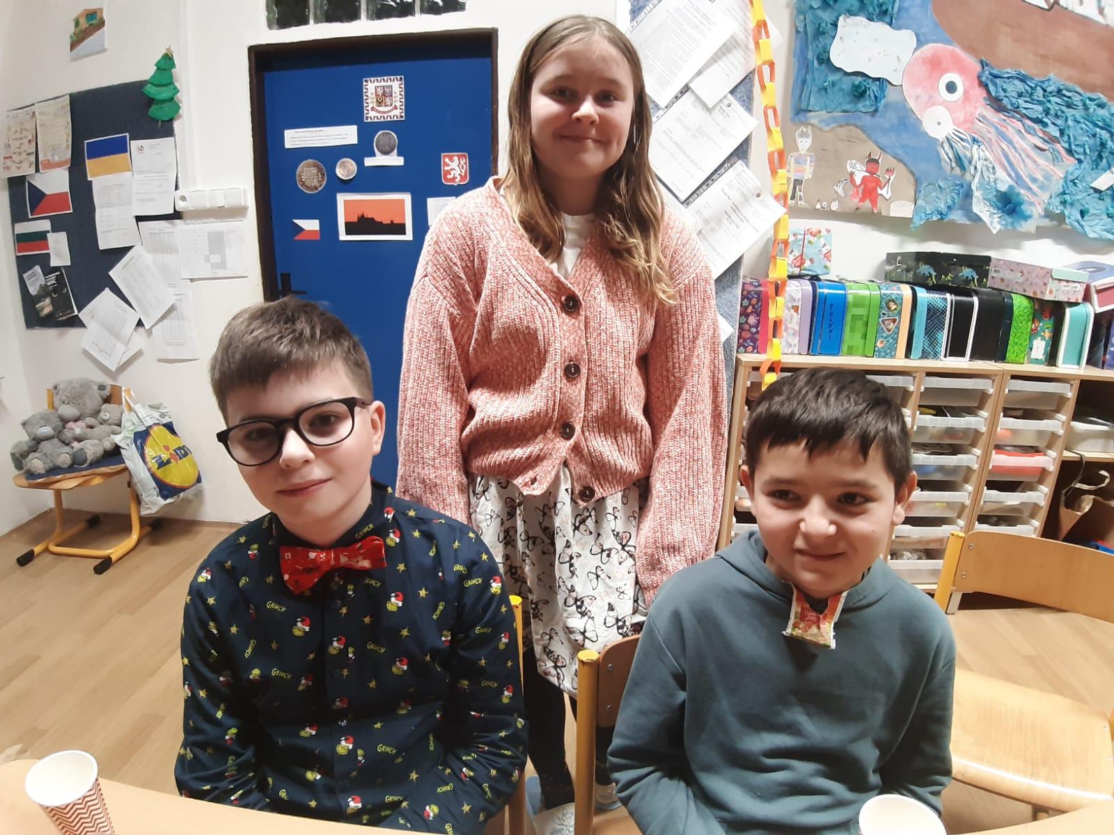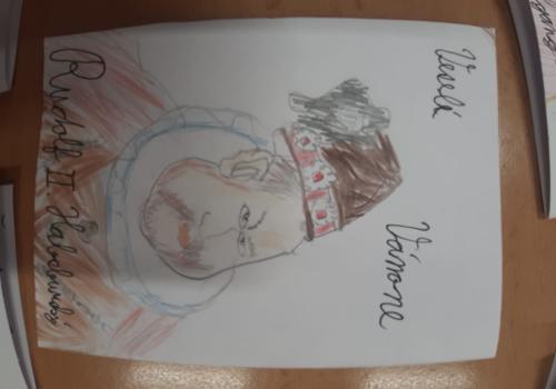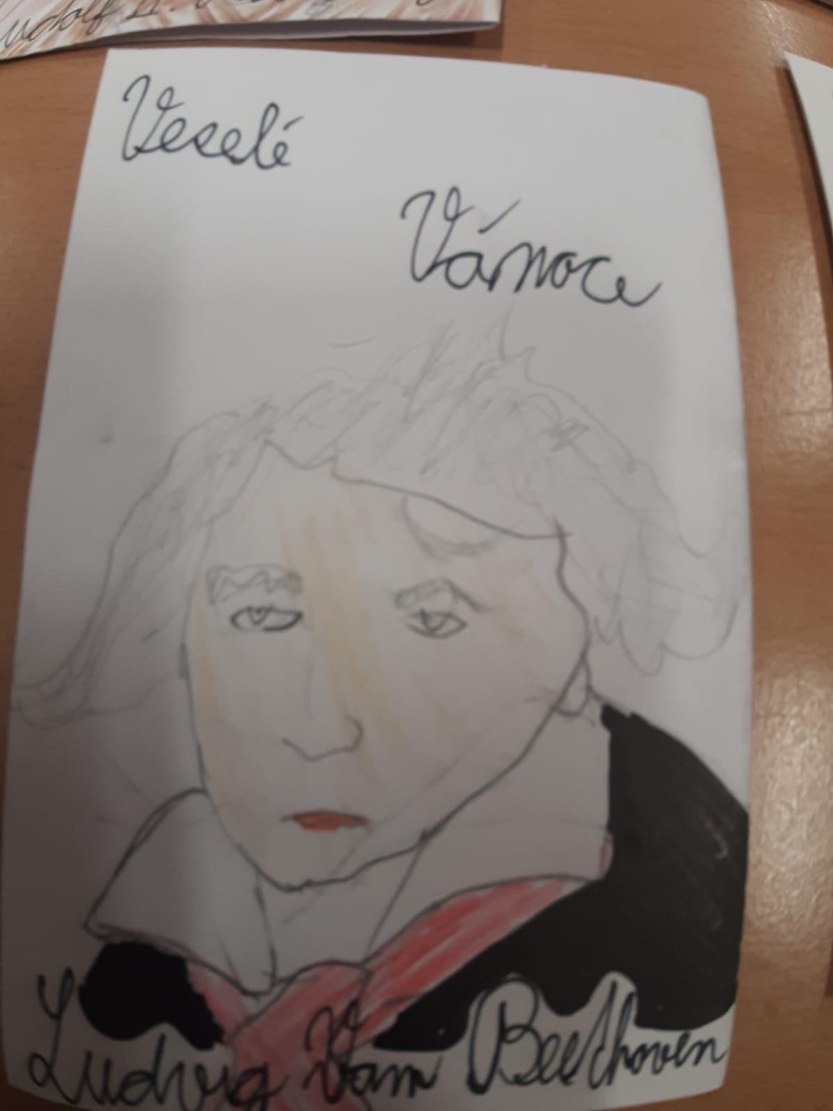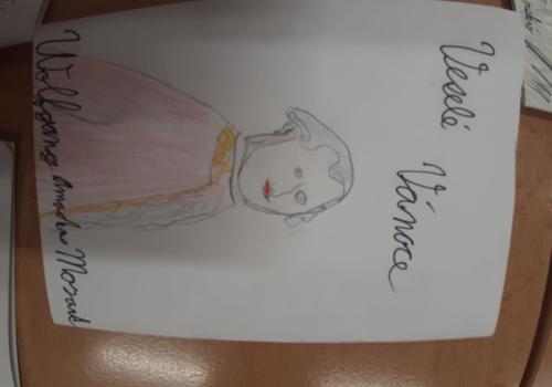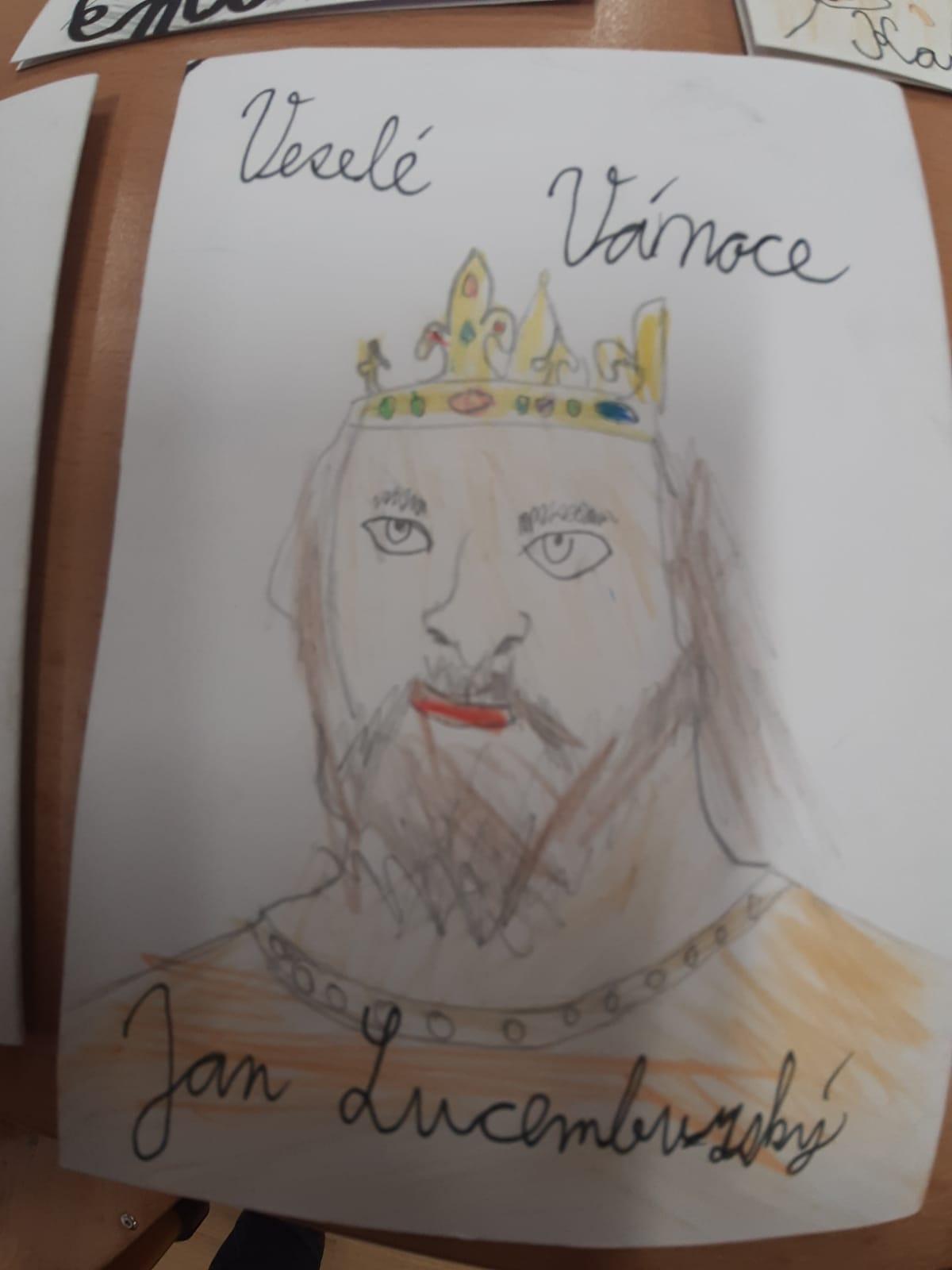 Štěpánek doma vyrobil vánoční přání s osobnostmi českých dějin. Všichni losovali svoji osobnost, jen paní učitelce byl přidělen pan Jan Ámos Komenský!