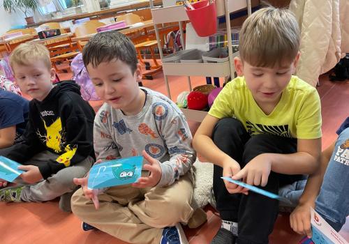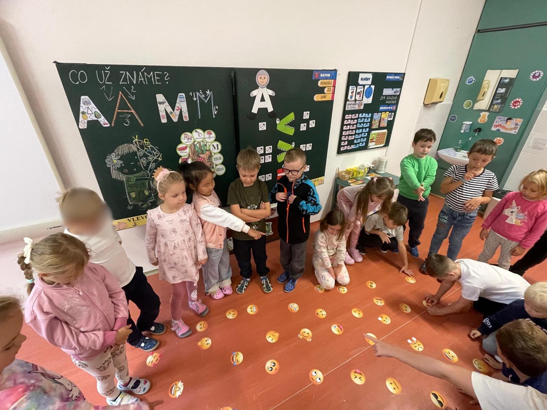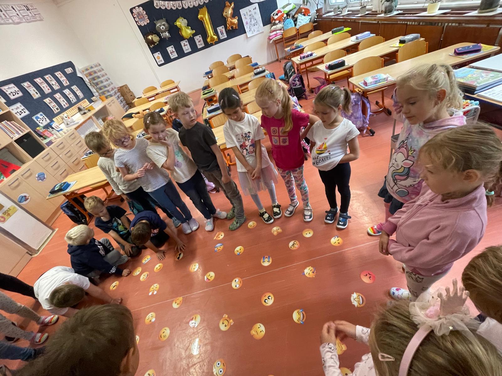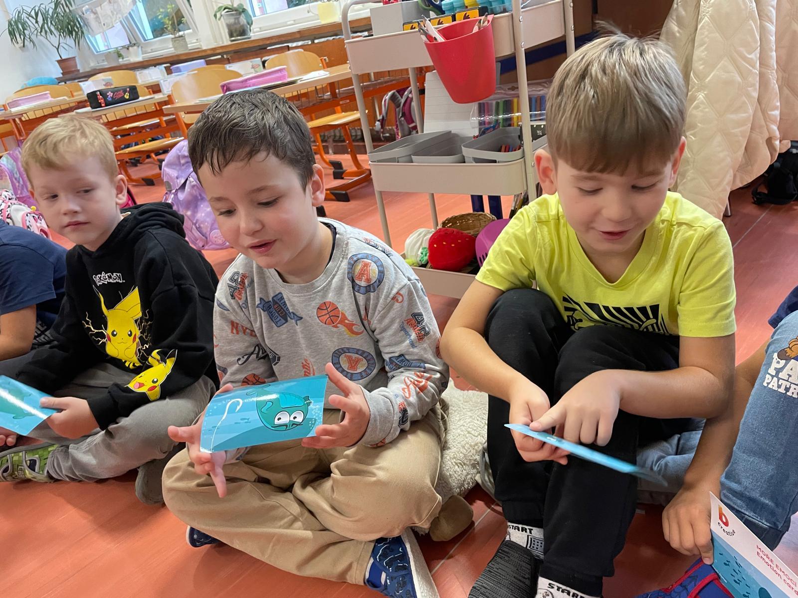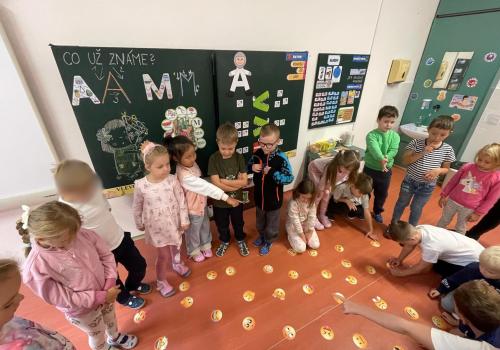 K práci s emocemi jsme využili veselé i smutné emoji obrázky (smajlíky) a také karty Moře emocí, které nám pomohly pojmenovat různé pocity. Společně jsme si povídali o tom, co nás rozveselí, co nás někdy rozčílí a jak můžeme své emoce vyjádřit tak, aby nám i ostatním bylo dobře.