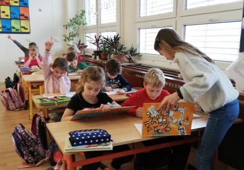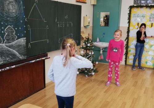Poslední vyučovací hodinu před Vánoci měly děti zpestřední v podobě "paní učitelek" z 5. A. Druháci krásně pracovali, psali a četli. Při tvořivých činnostech jsme vyráběli kapry a sněhuláky. Také jsme vánočně nazdobili dveře.
