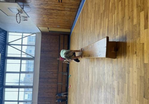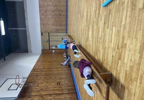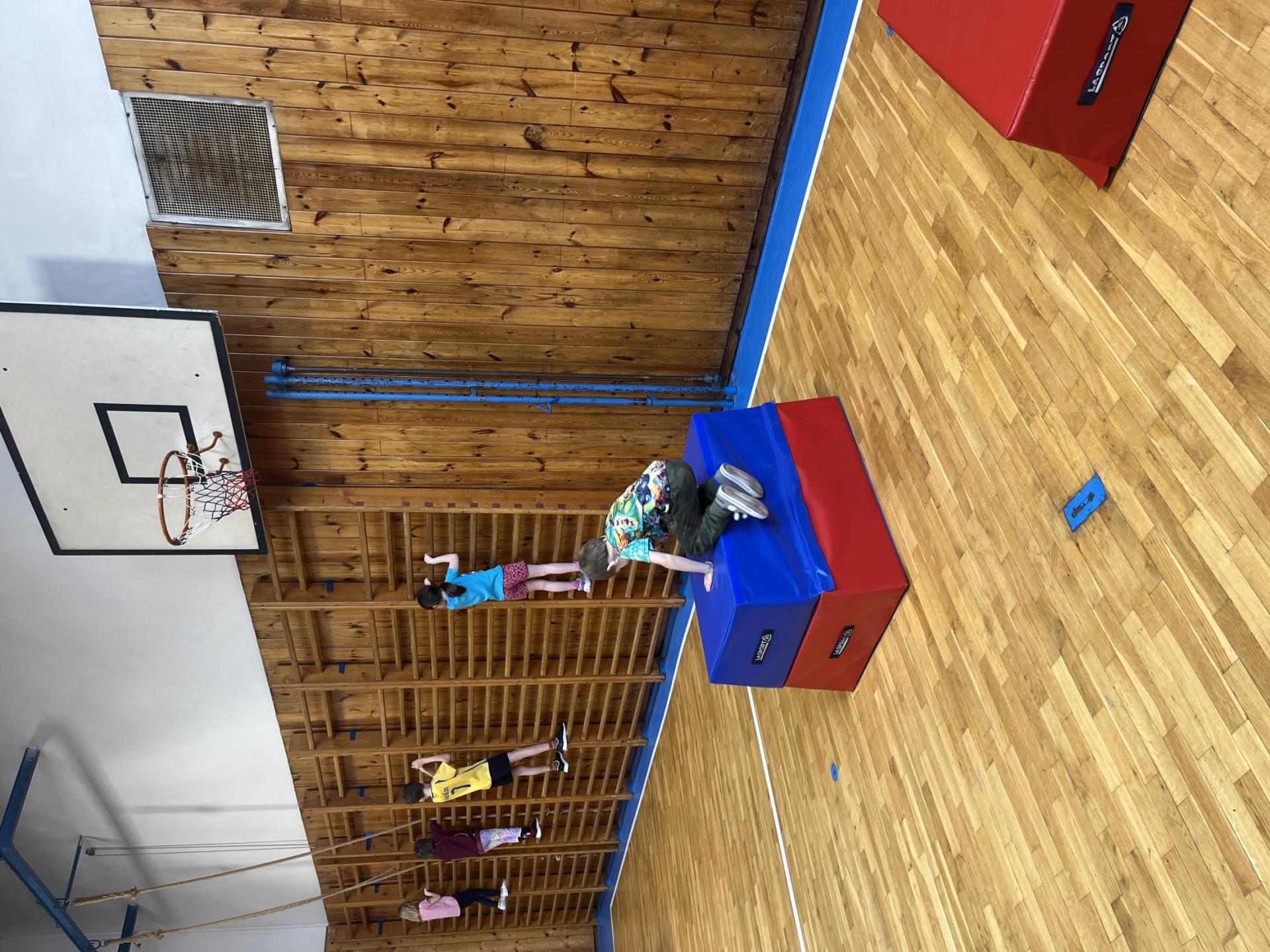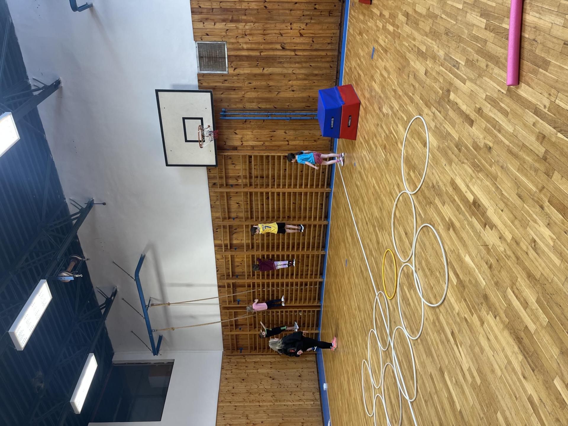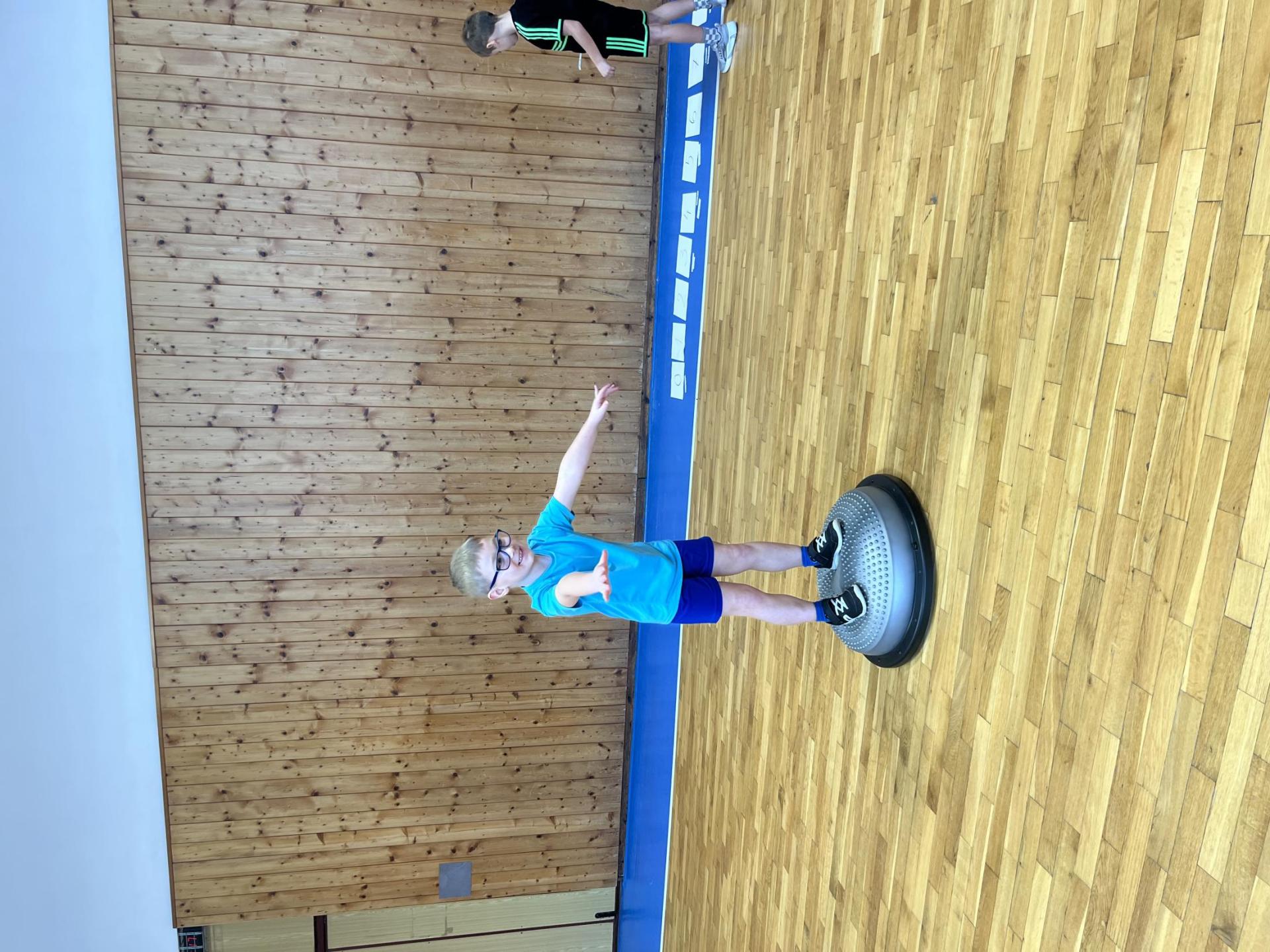 Dnešní hodina tělesné výchovy se nesla v duchu překážkové dráhy. Děti postupně překonávaly připravené překážky a zároveň si zábavnou formou procvičily matematiku – vybíraly příklady, správně je vypočítaly a přiřazovaly k odpovídajícím výsledkům. Tato pohybová aktivita děti velmi bavila.