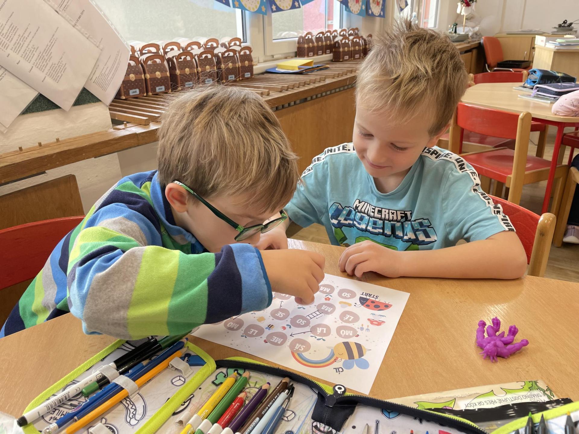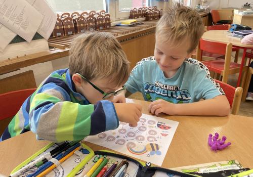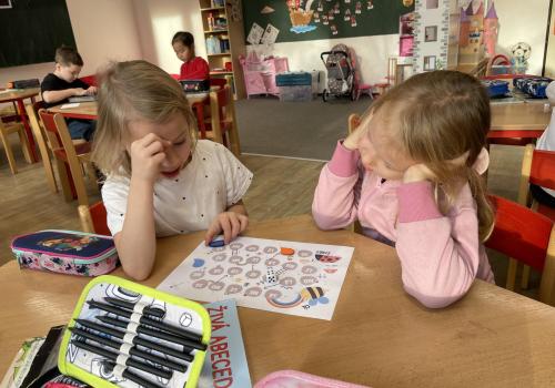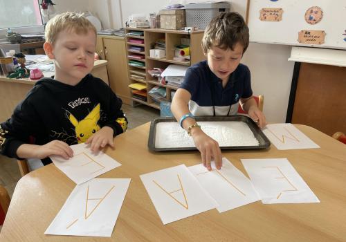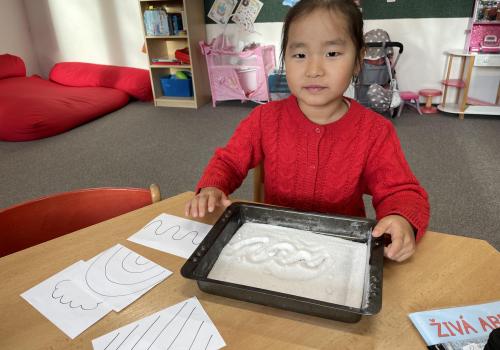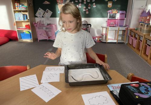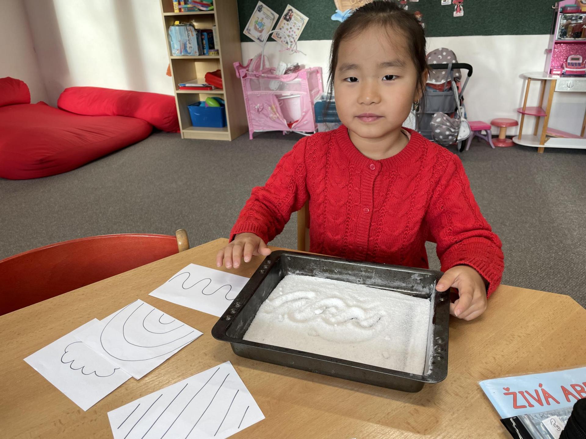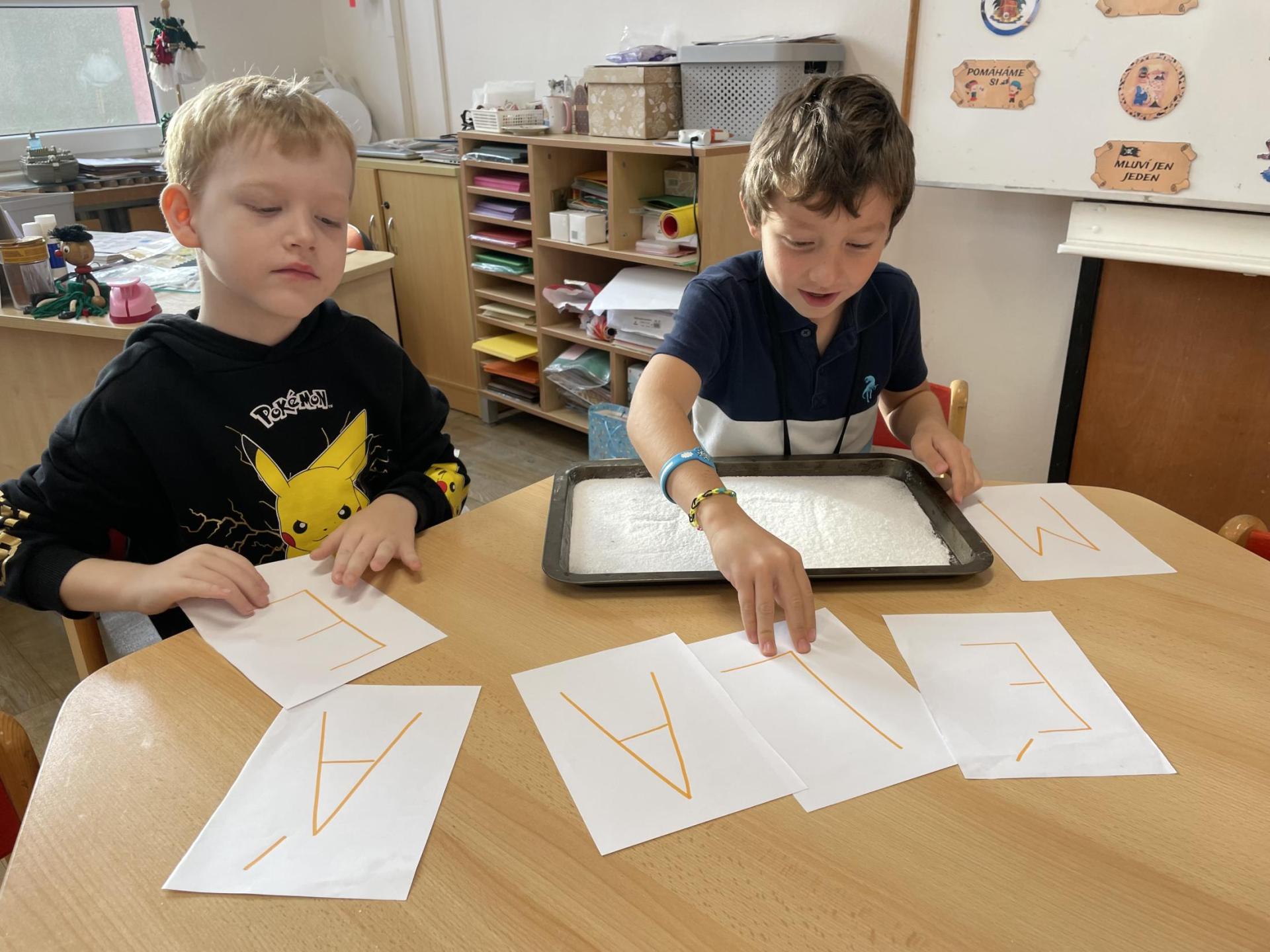 Již od září jsme připravovali ruku na psaní. Důležité bylo uvolnit ruku a pohlídat si držení tužky ve špetkovém úchopu. Ke správnému držení tužky nám pomáhá říkanka: