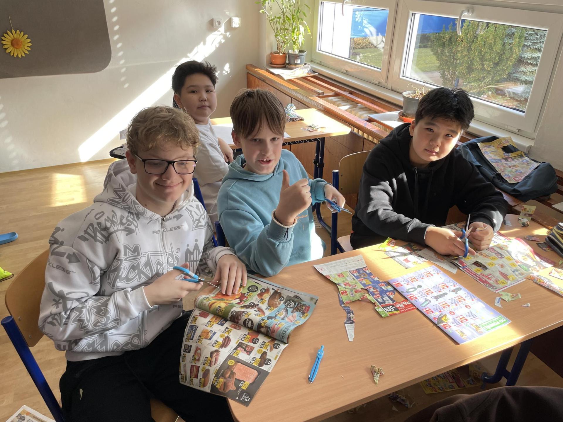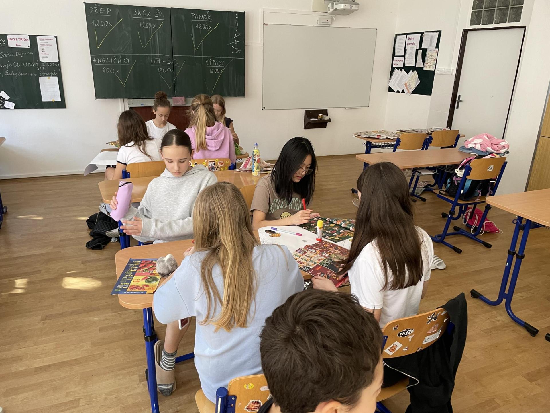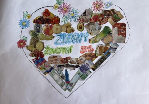 V dalších hodinách děti tvořily koláž. Výsledkem byl obrázek složený z menších obrázků zdravých potravin. Práce se dětem velmi povedly!