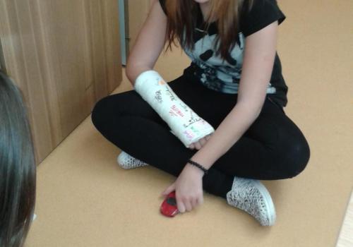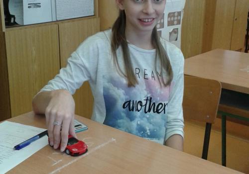 Křídou jsme si nakreslili dráhu o délce 1m, vzali si své hračky, nejlépe nějaké autíčko nebo míček. Své hračky jsme připravili na start a poslali je po dráze. Náš spolužák mezitím měřil čas, za který naše těleso projelo dráhu. Potom jsme všechny údaje zapisovali do předem připravené tabulky. V posledním úkolu jsme našemu tělesu změřili dráhu vždy po 0,5m a zjistili, jestli těleso vykonávalo zrychlený nebo zpomalený pohyb. Na závěr jsme nakreslili obrázek naší hračky v pohybu. Tato hodina nás velmi bavila a také jsme se něco nového naučili a těšíme se, co pro nás paní učitelka dalšího připraví.