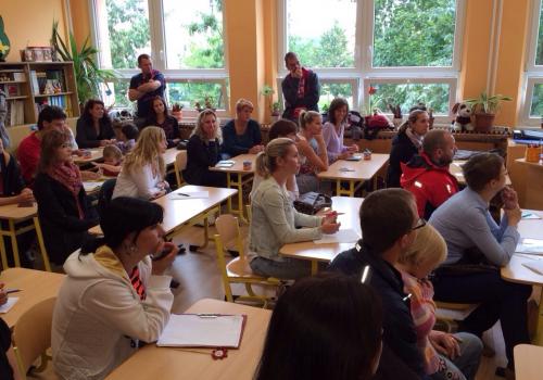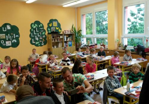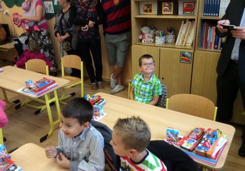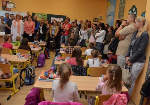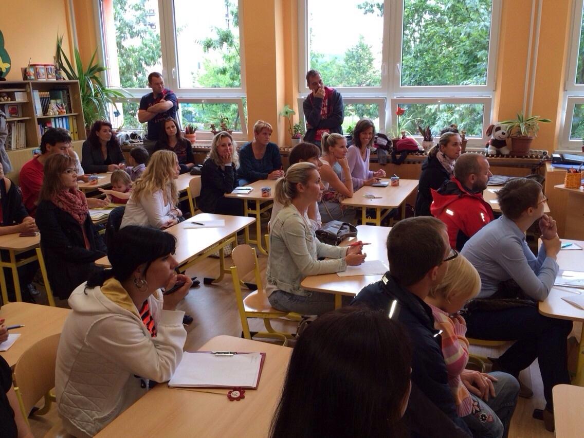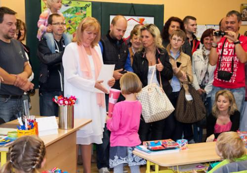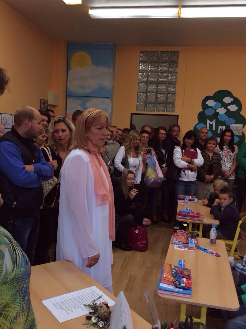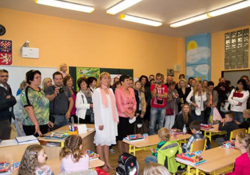 V tento, pro děti významný den, jsme se v naší třídě sešli v hojném počtu. Děti zvládly výborně velkou přesilu "dospěláků". Všem přeji, aby do školy chodili rádi, aby nám ve třídě stále svítilo sluníčko.