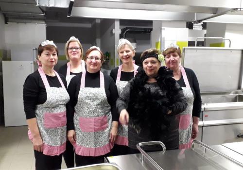 I paní kuchařky se zapojily do našeho projektu a nabídly nám ve školní jídelně prvorepubliková jídla ve slušivých zástěrkách.