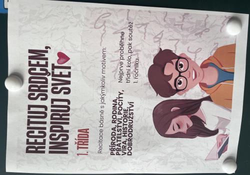 Ve středu 25. března 2026 se hudební sál naší školy proměnil v pódium pro ty nejmenší, ale zároveň nejodvážnější umělce. Konalo se zde finálové kolo recitační soutěže prvních tříd, které bylo vyvrcholením předchozích třídních kol. Z každé první třídy postoupili tři nejlepší recitátoři, a tak se v sále sešlo celkem devět finalistů. Z naší třídy to byla Berenička, Eliška a Peťulka.