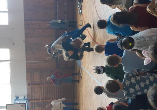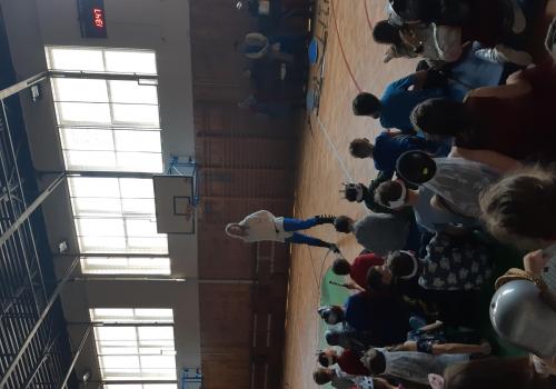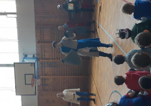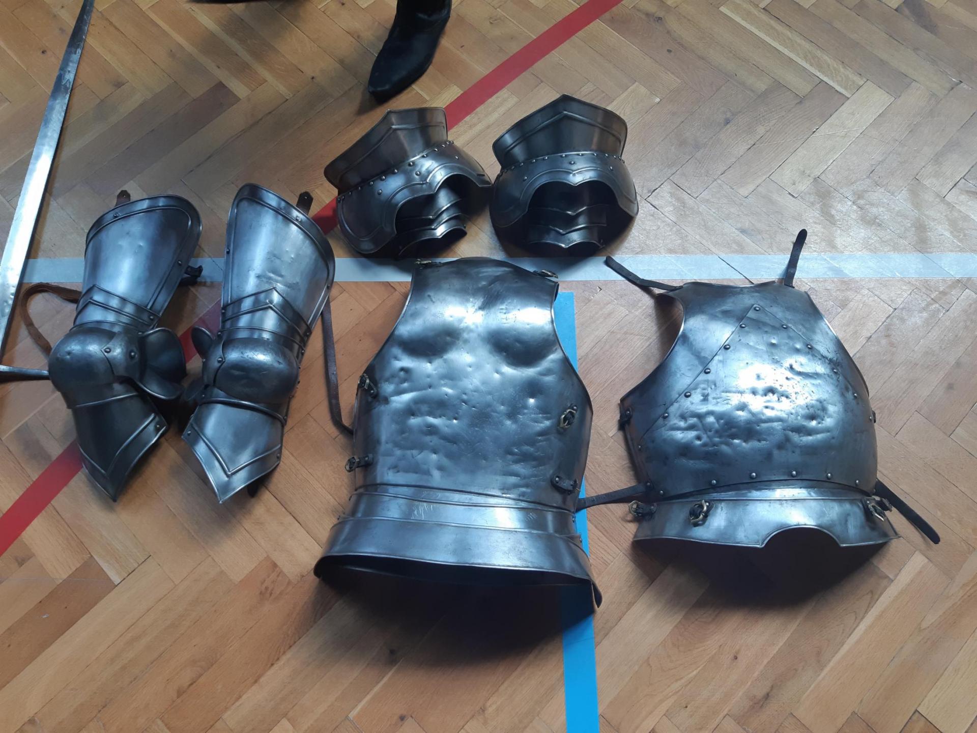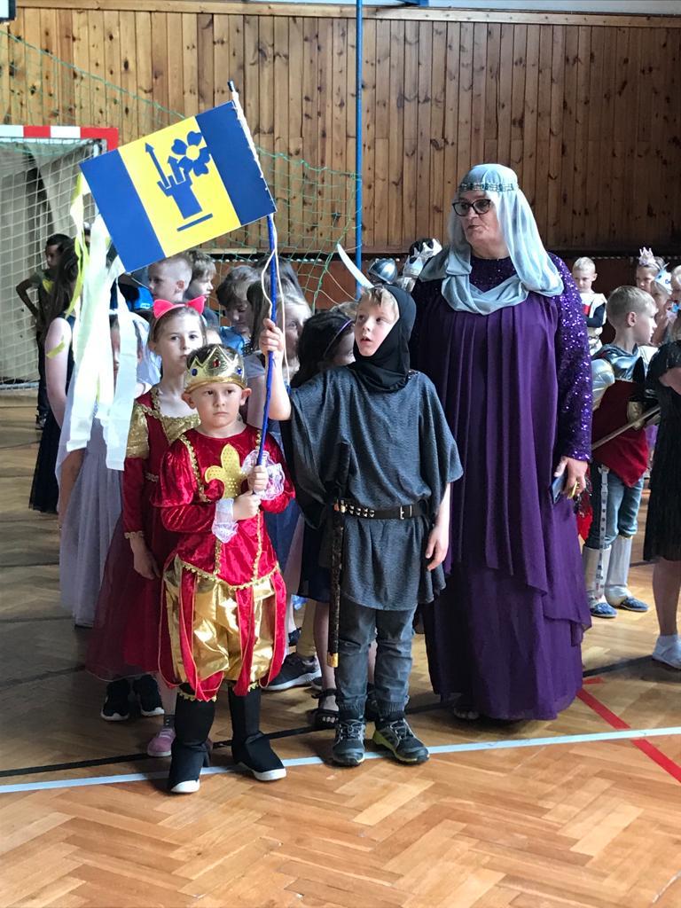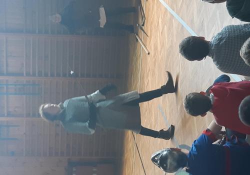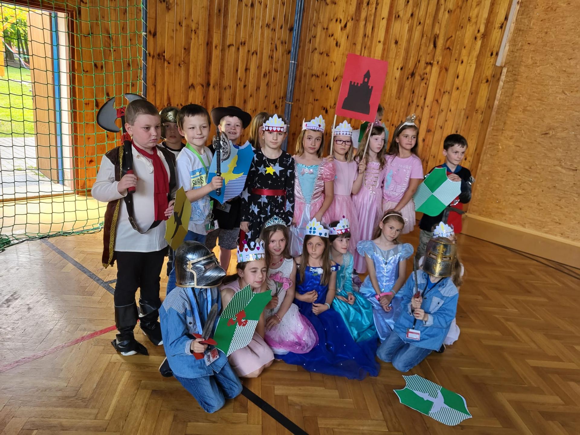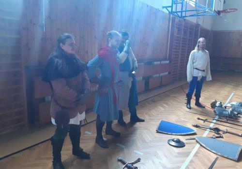 Rytíři ve ŠD. 1.6. nás ve ŠD navštívili rytíři z Pardubic a ukázali žákům středověké zbraně a rytířské klání.