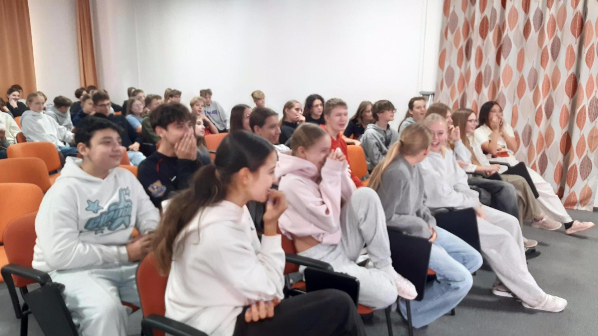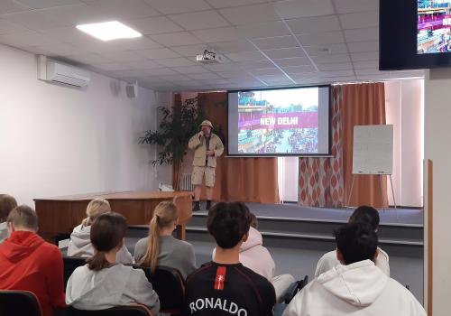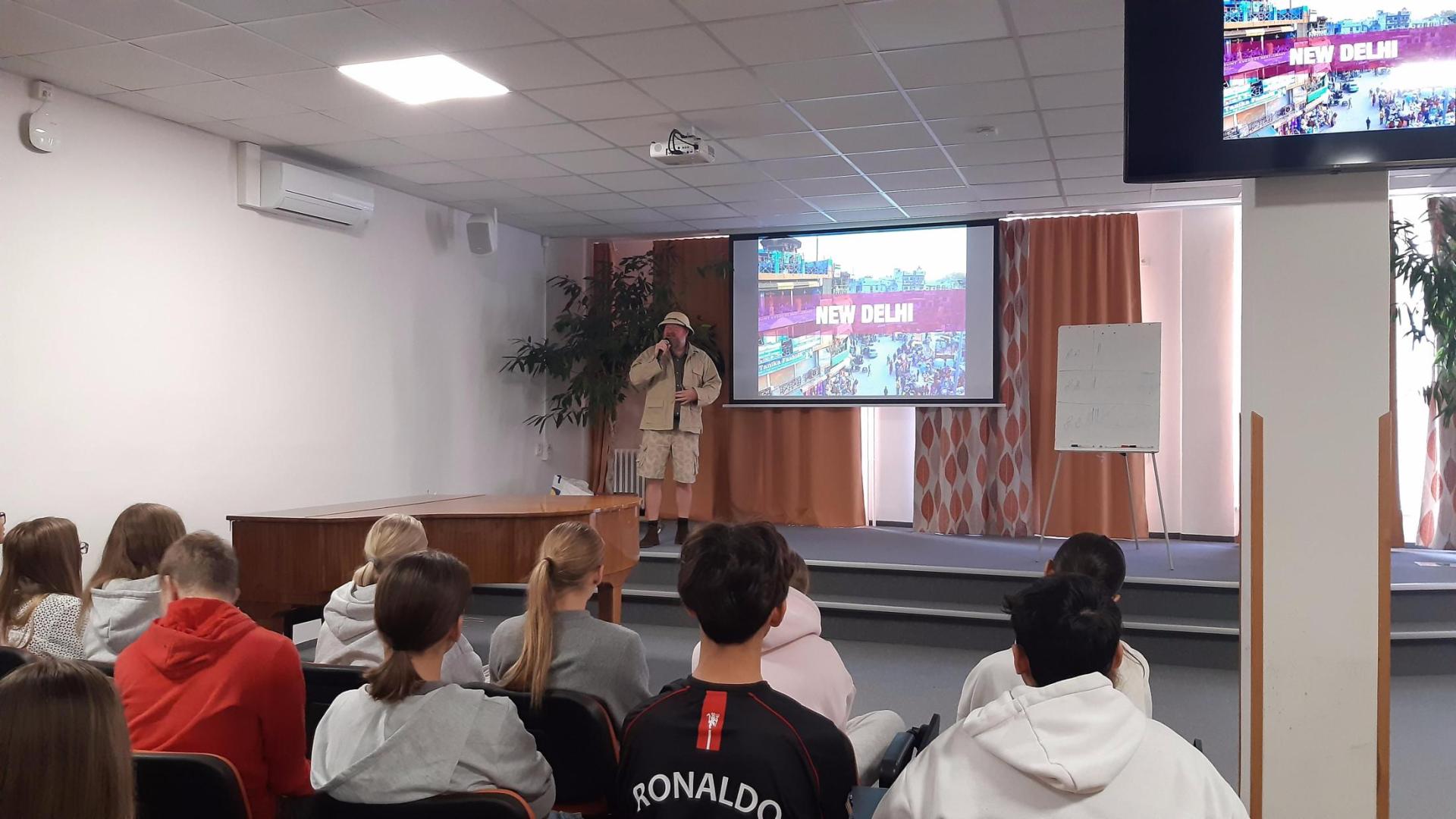 Dne 22.10. se na naší škole v hudebním sále uskutečnil výukový anglický program s názvem "S Neilem kolem světa".
