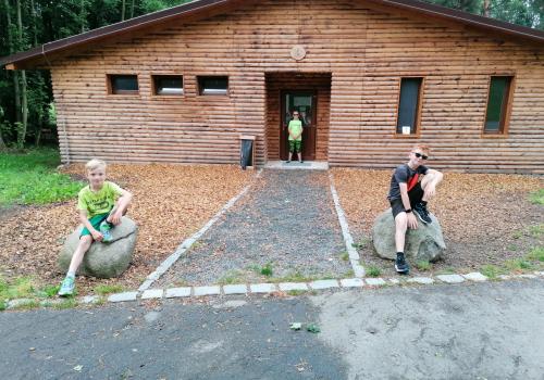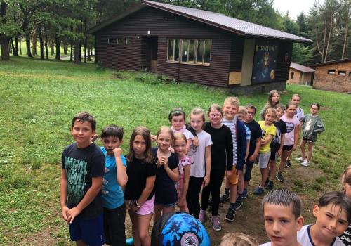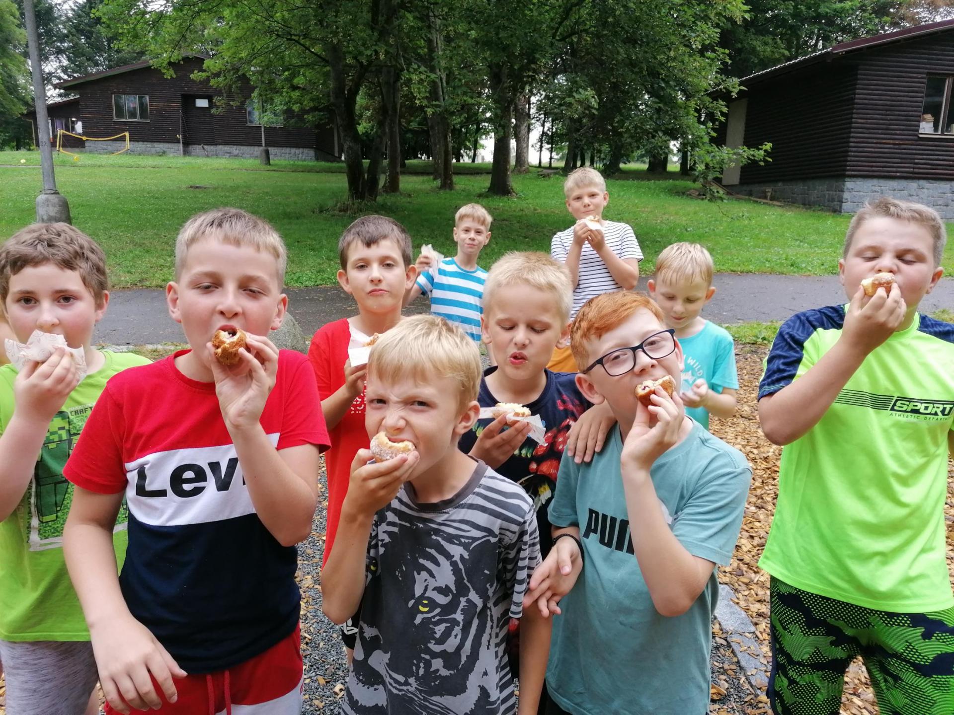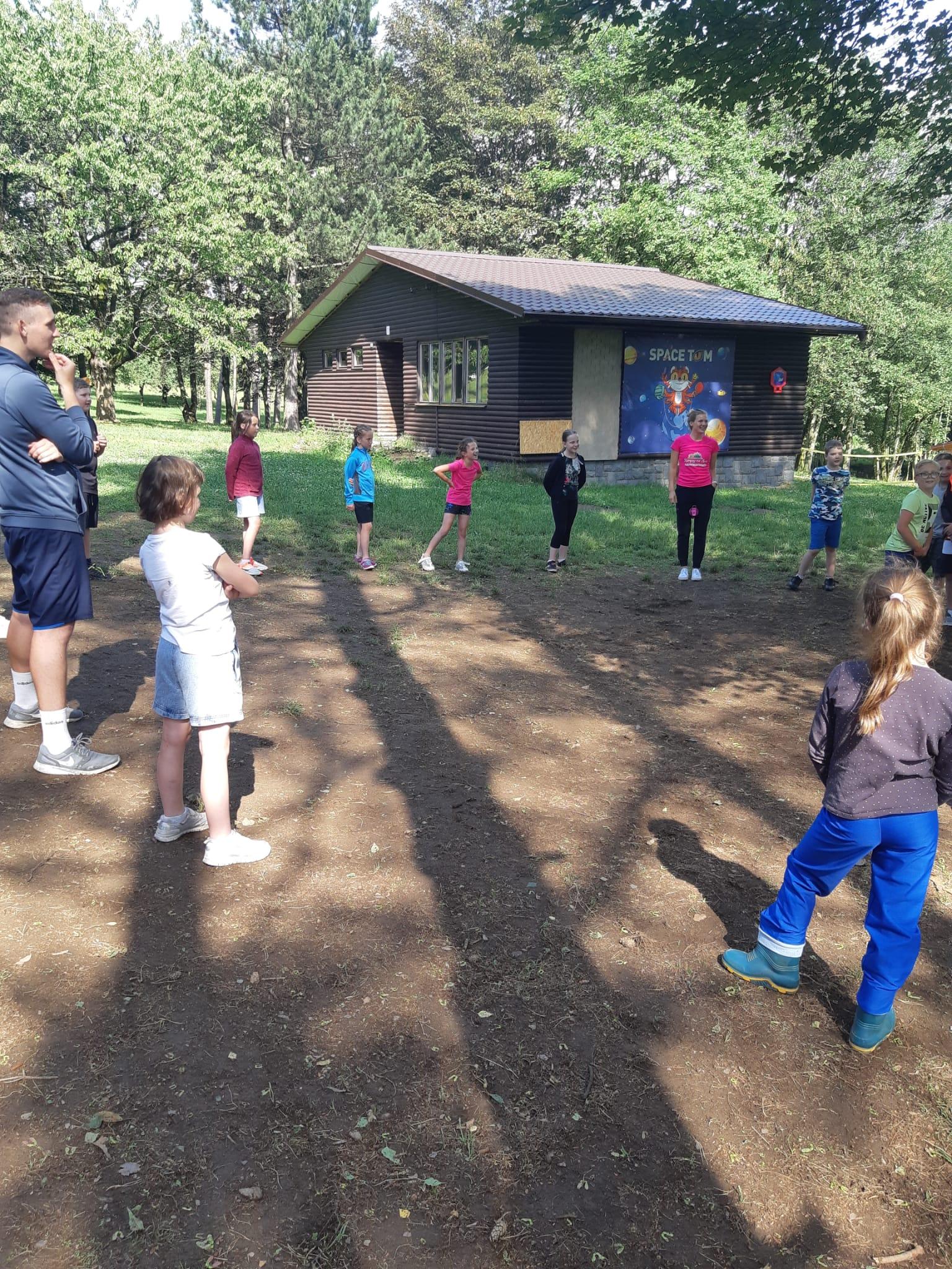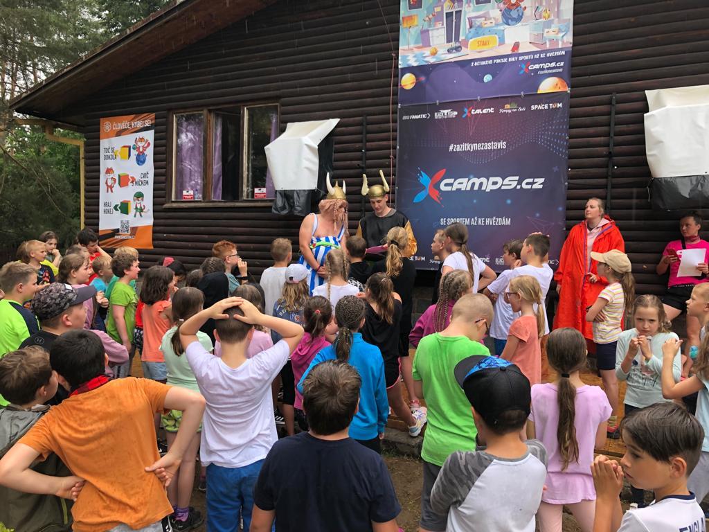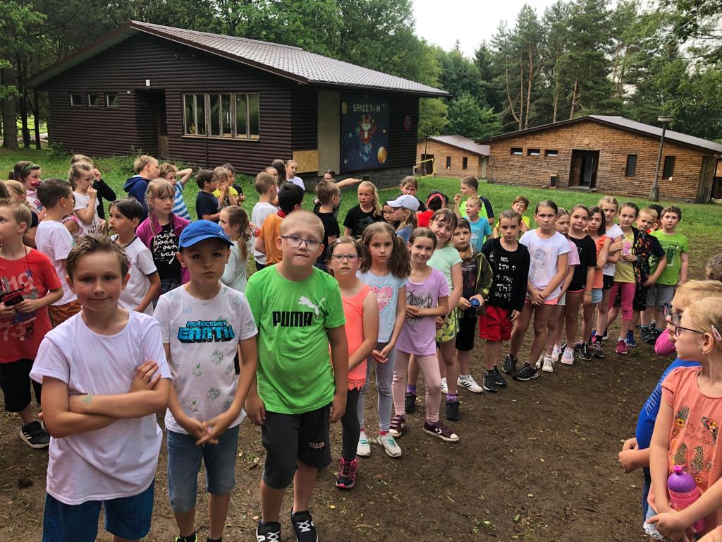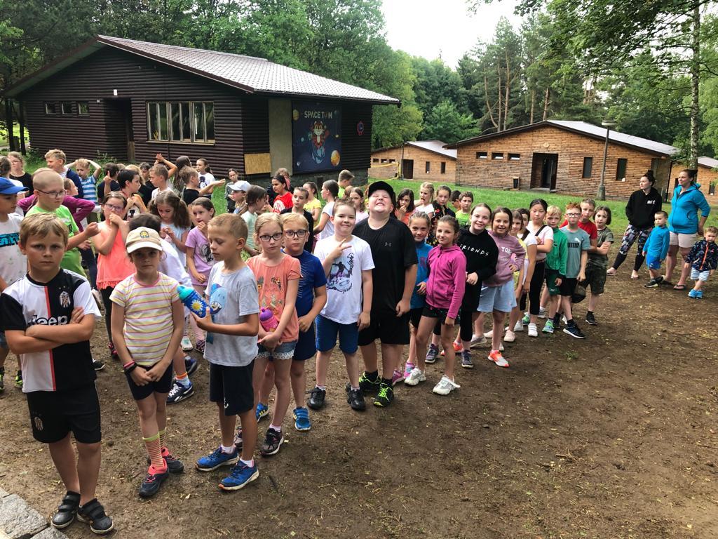 Cesta proběhla bez problémů a za chvíli jsme byli na místě. Po příjezdu jsme se nejdříve ubytovali, trochu si vybalili a hned jsme se šli seznámit s areálem. Po obědě (vývar s nočky a kuře s bramborem) a poledním klidu jsme se kvůli dešti schovali v klubovně a chvíli koukali na film Asterix a Obelix. Když to počasí dovolilo, poprvé se Asterix a Obelix ukázal a rozdělil nás do týmů. Následně jsme se seznámili a zahráli si hry. Čeká nás velké dobrodružství.