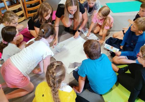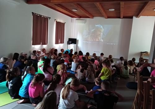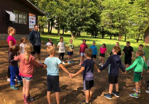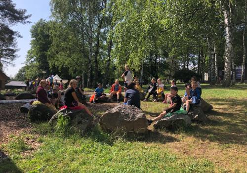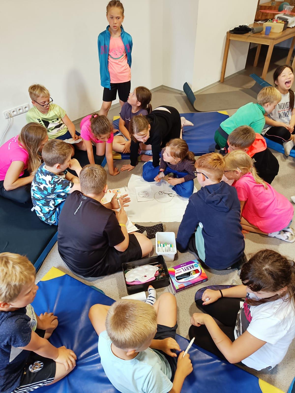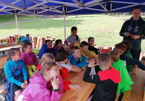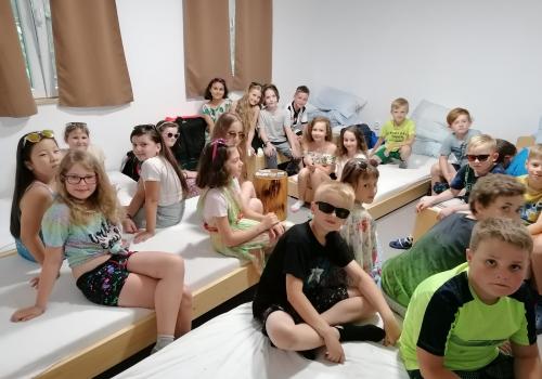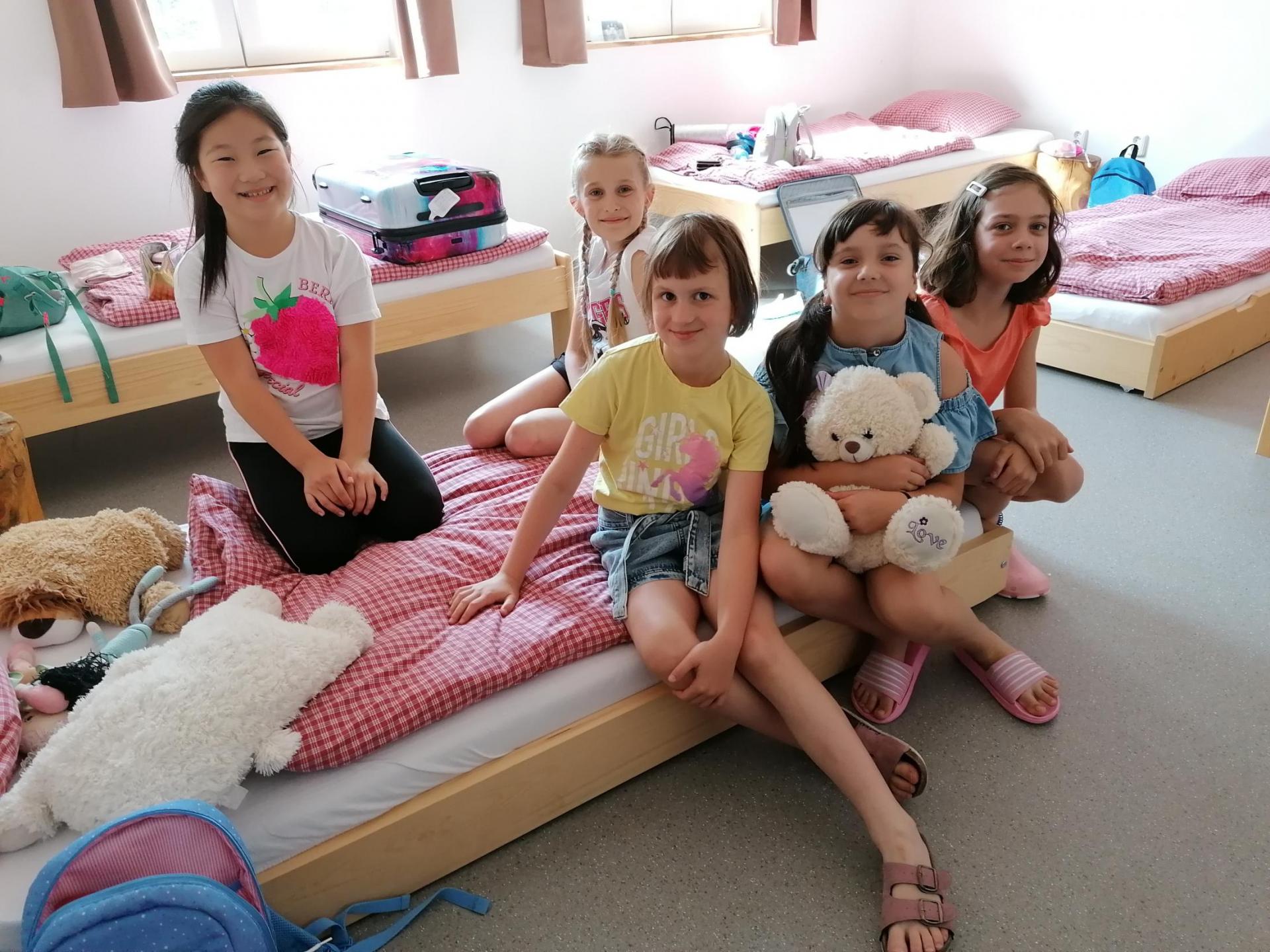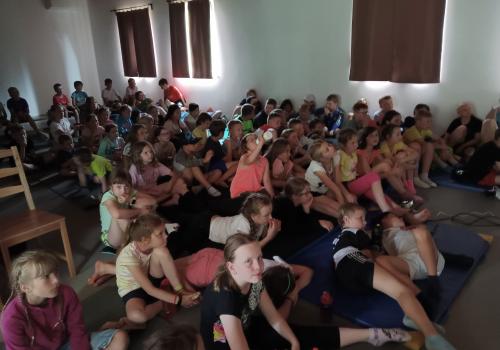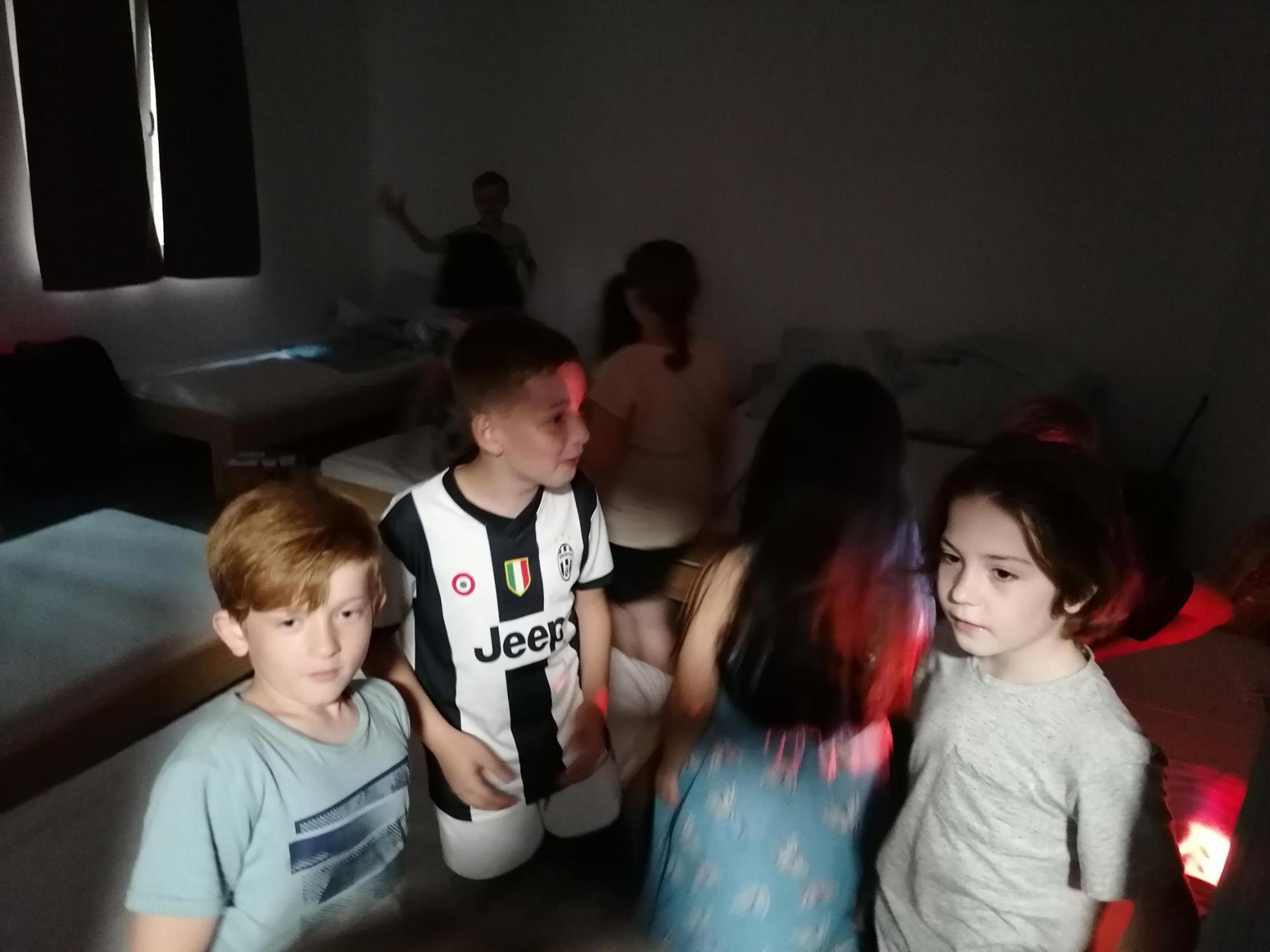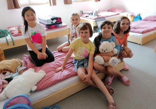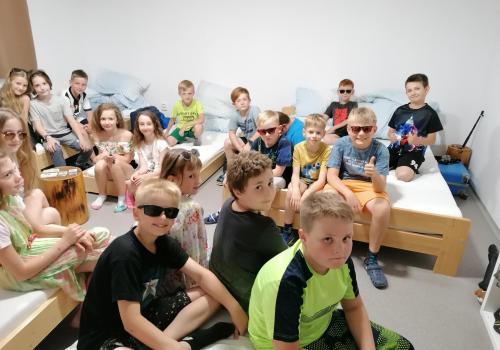 Cesta proběhla bez problémů a za chvíli jsme byli na místě. Po příjezdu jsme se nejdříve ubytovali, trochu si vybalili a hned jsme se šli seznámit s areálem. Po obědě (vývar s nočky a kuře s bramborem) a poledním klidu jsme se kvůli dešti schovali v klubovně a chvíli koukali na film Asterix a Obelix. Když to počasí dovolilo, poprvé se Asterix a Obelix ukázal a rozdělil nás do týmů. Následně jsme se seznámili a zahráli si hry. Čeká nás velké dobrodružství.
