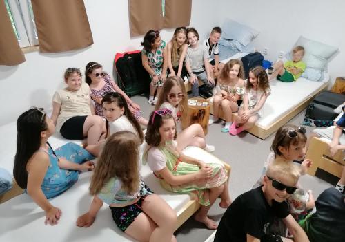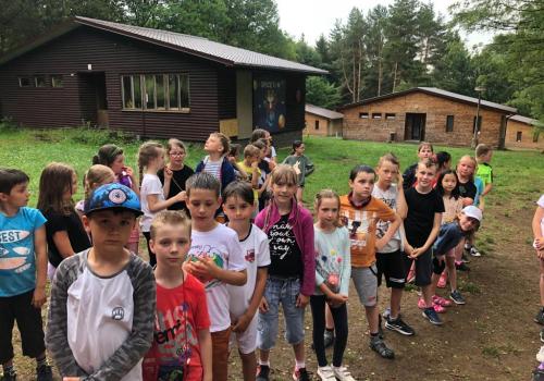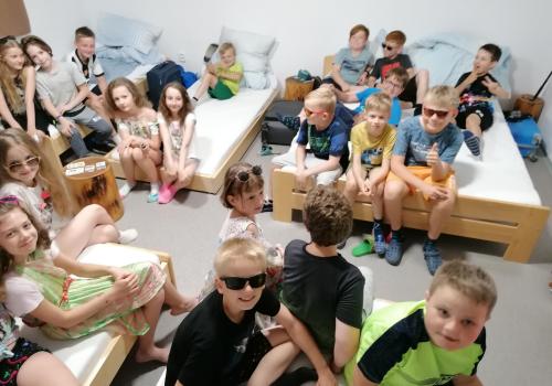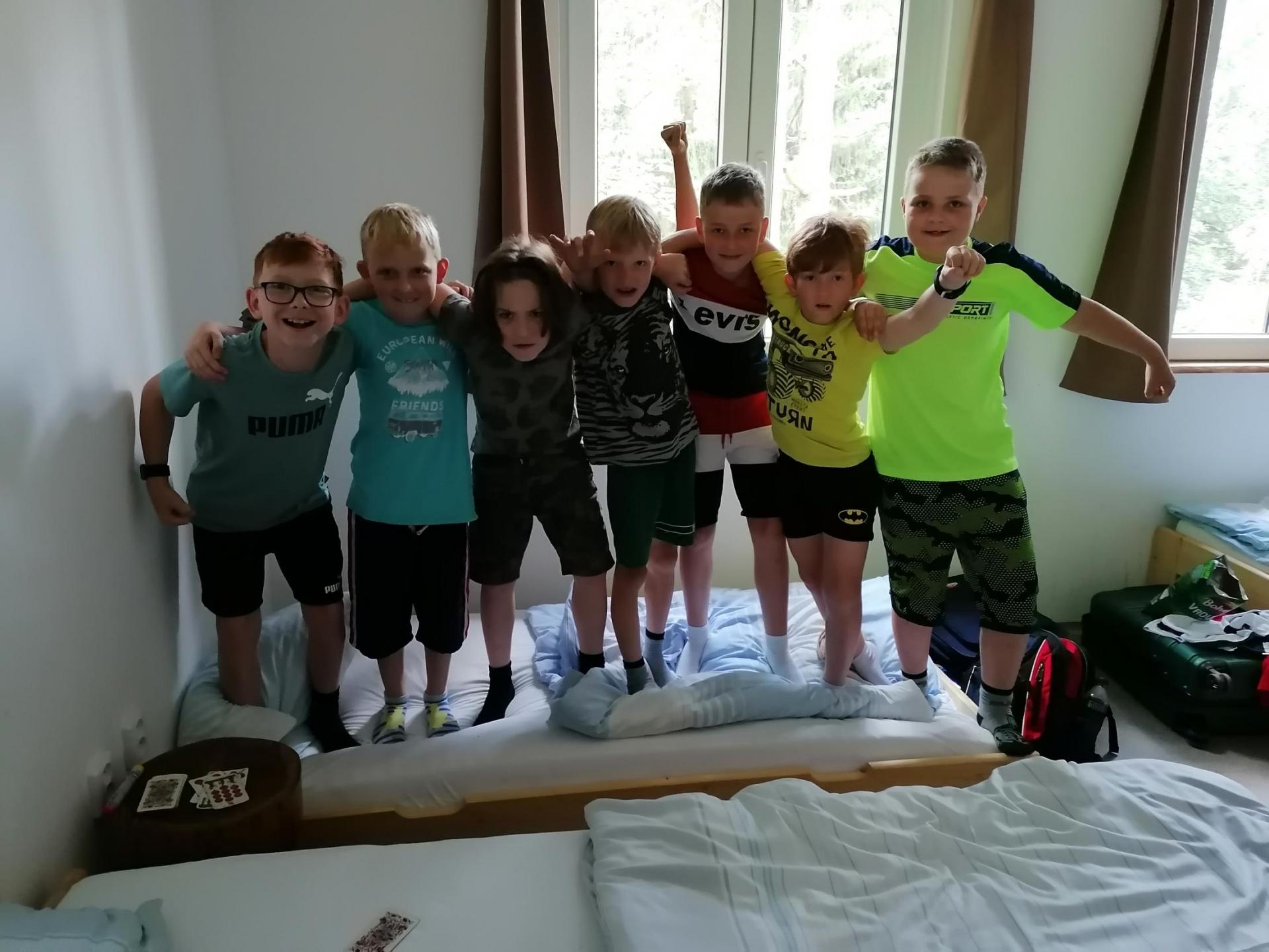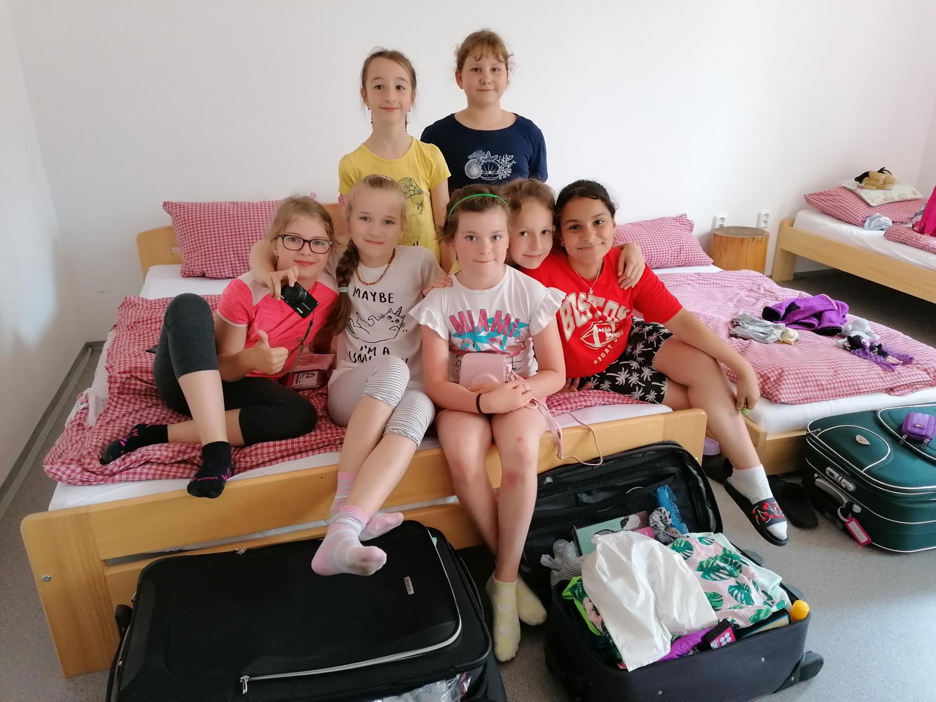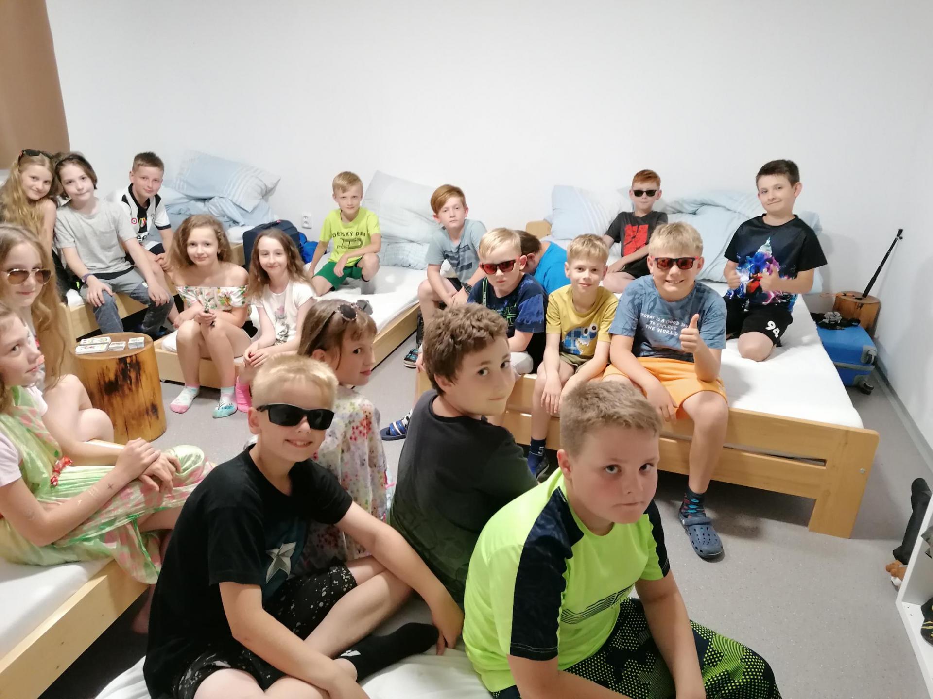 V 8:00 jsme se sešli u školy, rozloučili se s rodiči, naložili všechny kufry, batohy a jelo se na Seč. Všichni jsme se těšili.