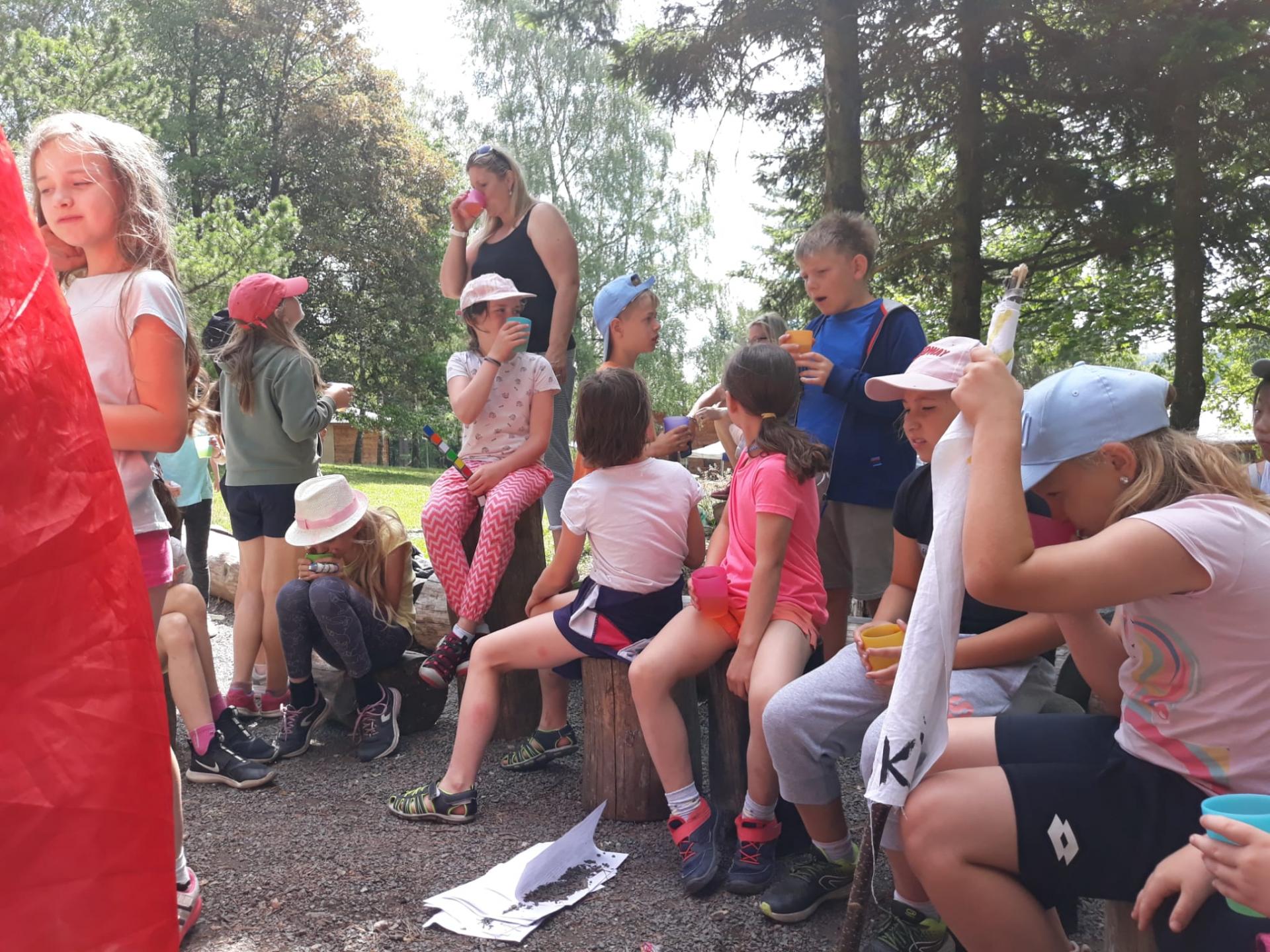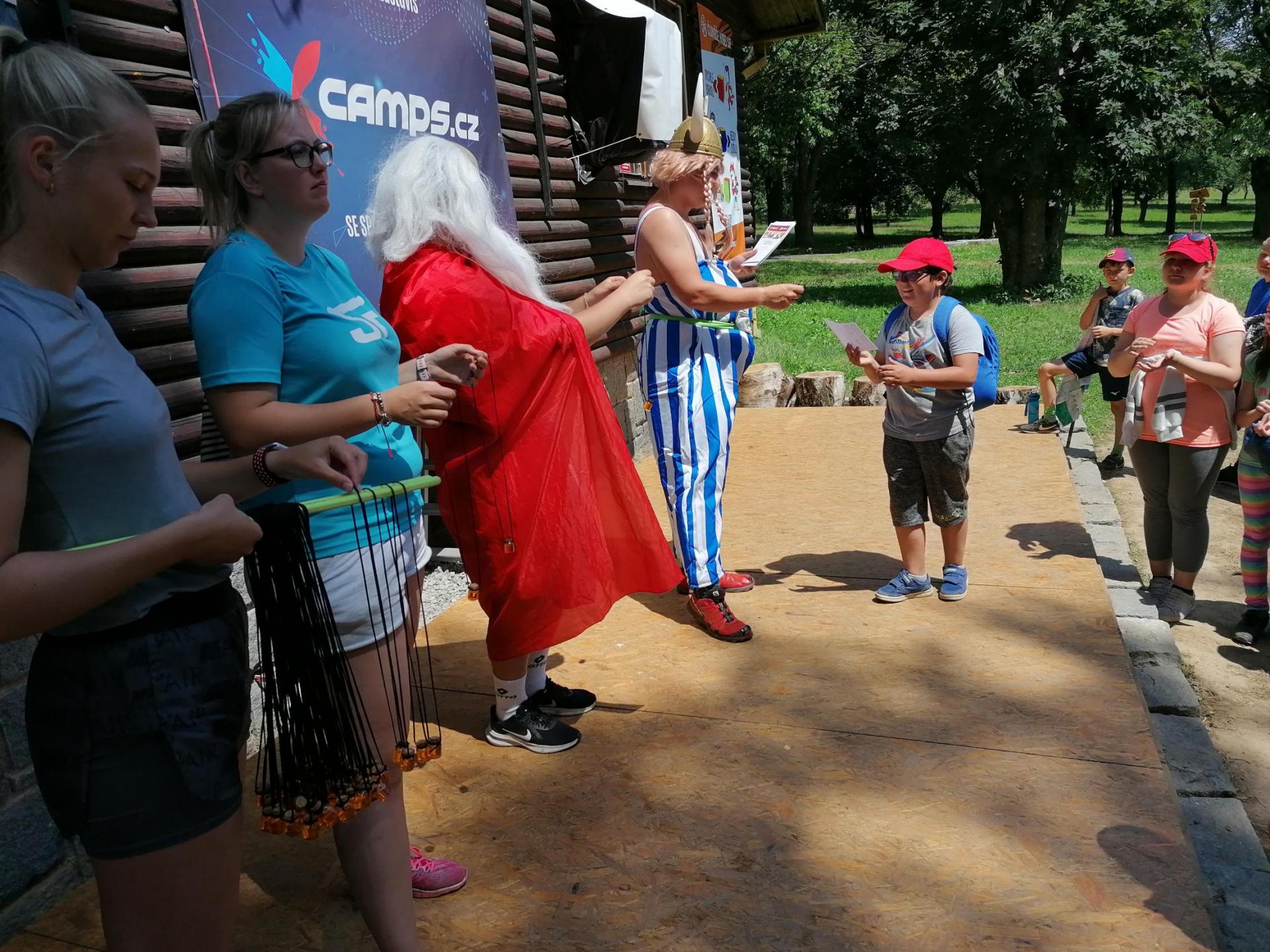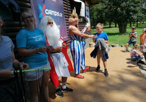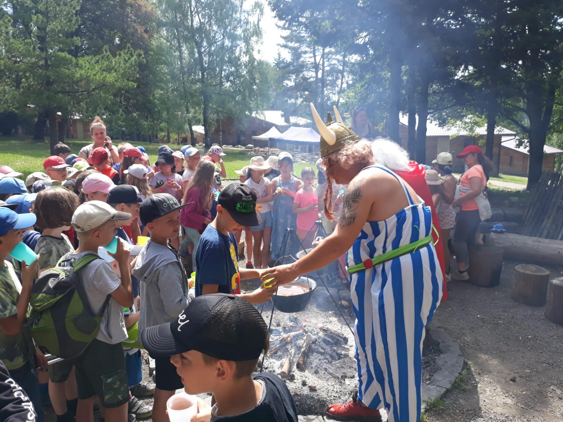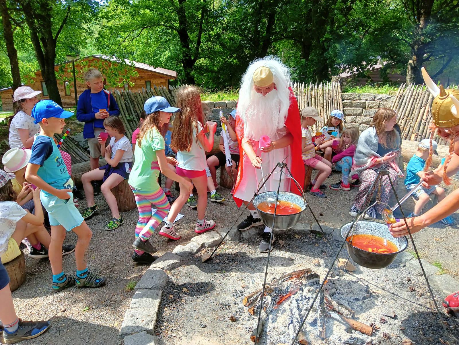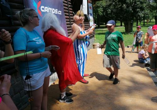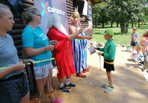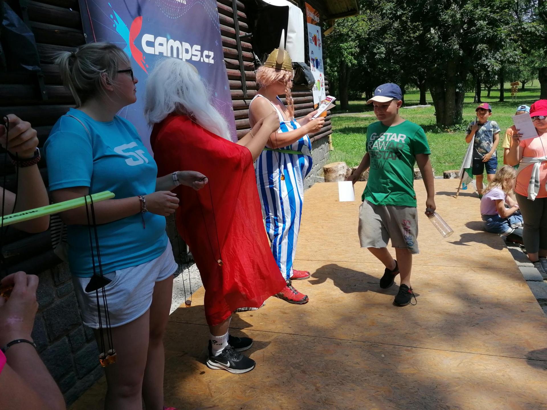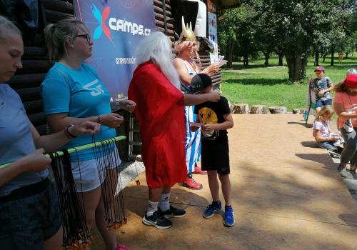 Po snídani jsme si zabalili, uklidili sruby a šli zjistit, zda se lektvar vařený přes noc povedl. Po ochutnání jsme získali supersílu a mohli jsme táhnout na Římany, které jsme v boji úspěšně porazili a vlajky ubránili. Každý z nás si veze domů část zázračného lektvaru, pamětní listinu a k tomu nespočet zážitků.