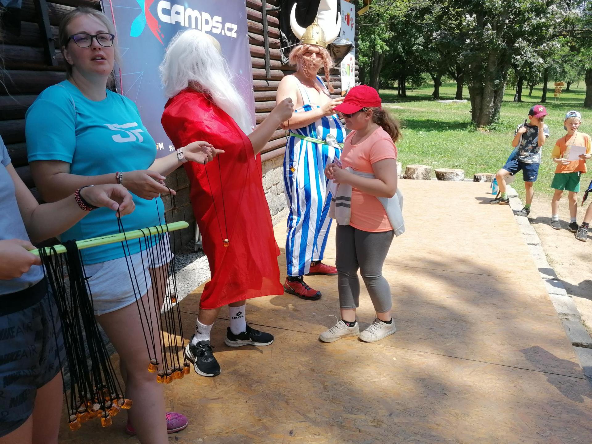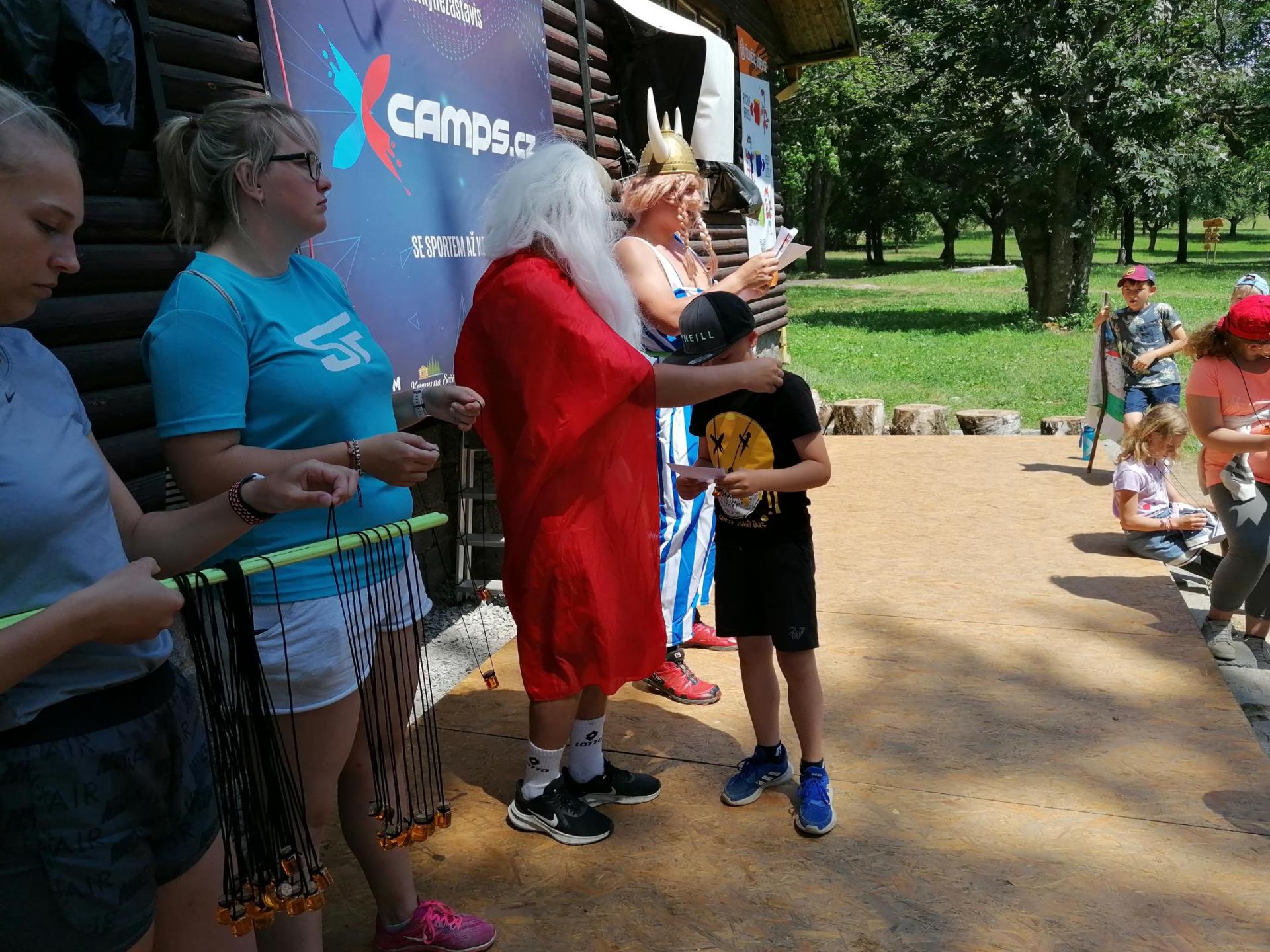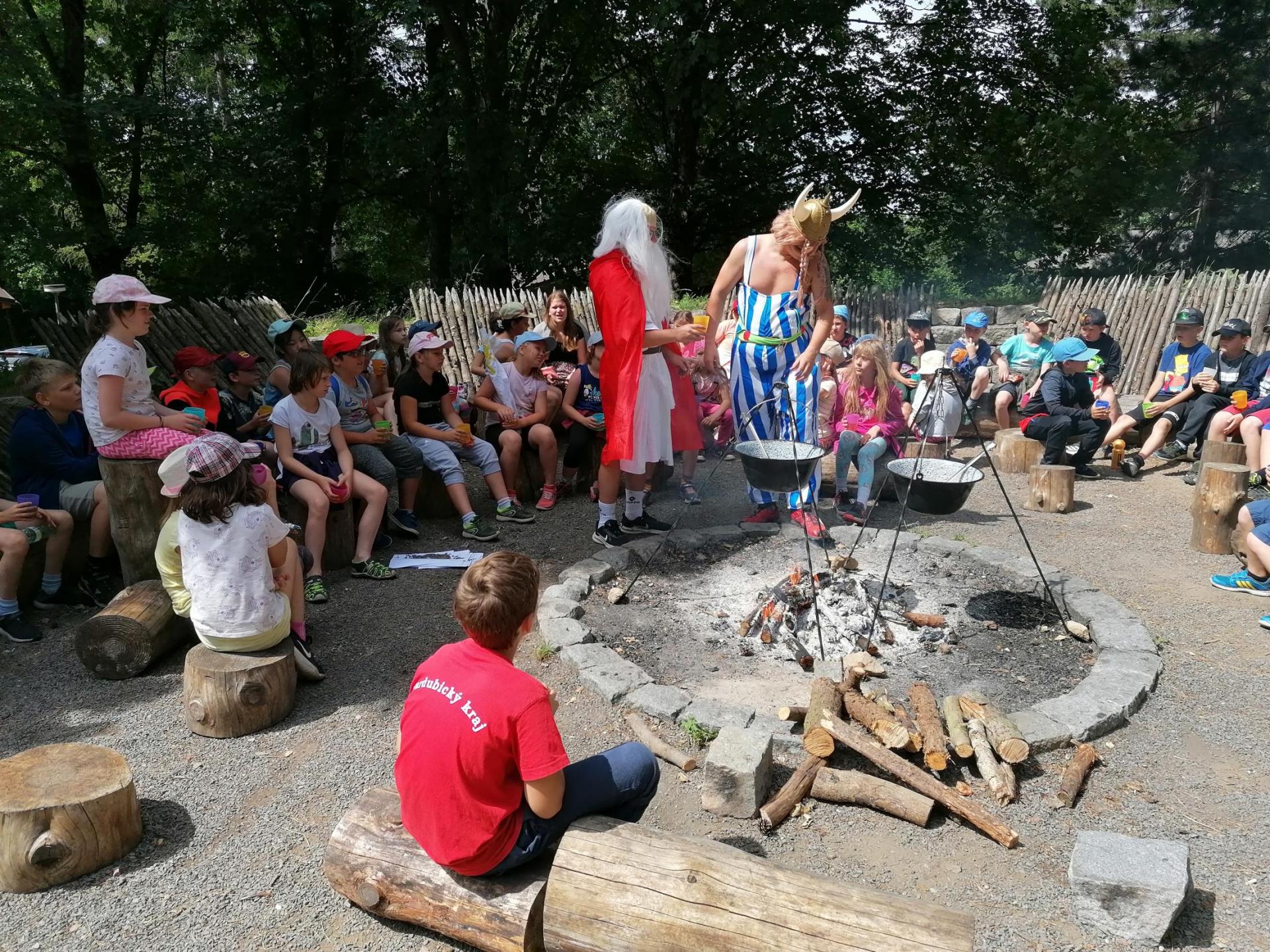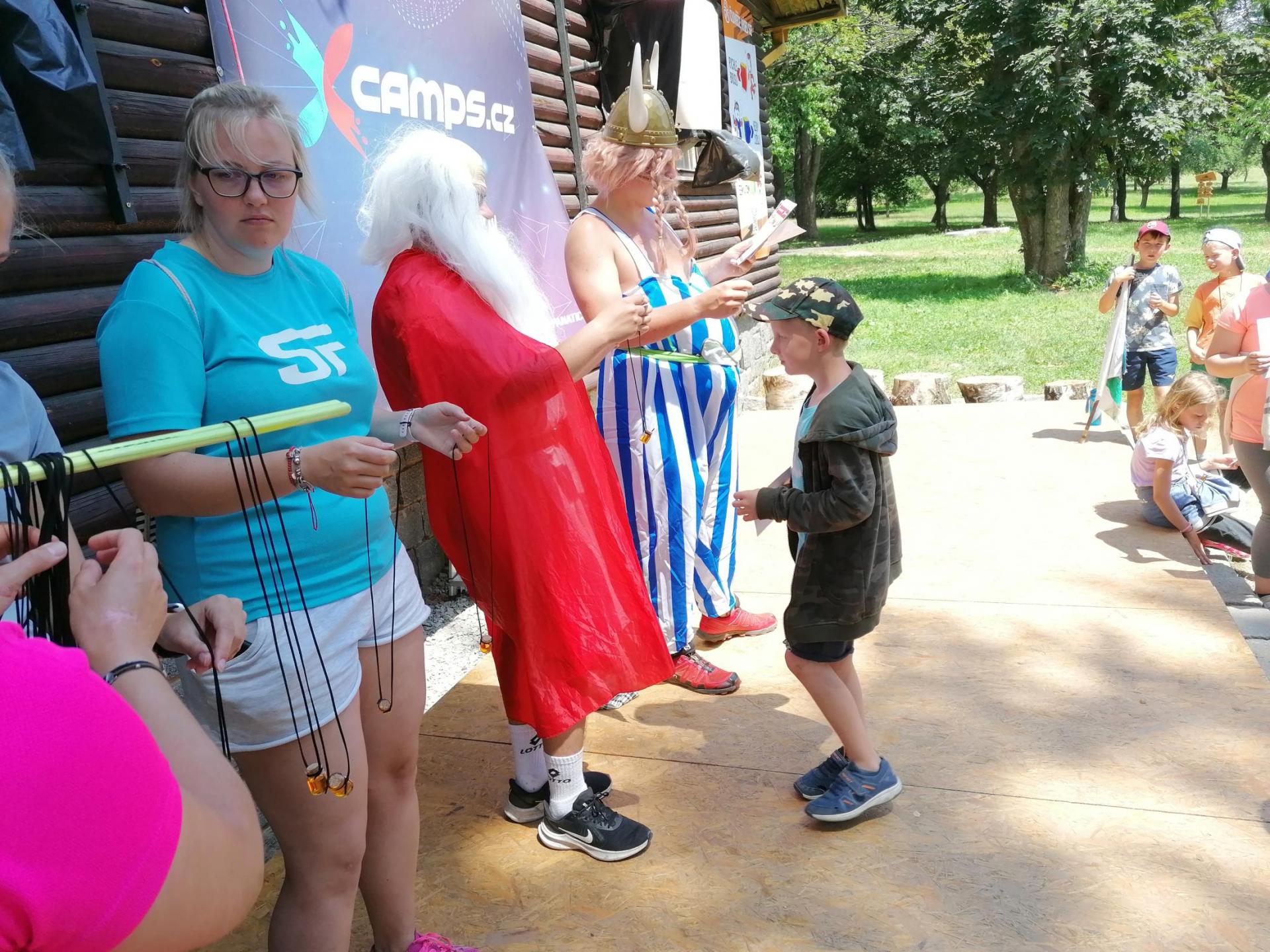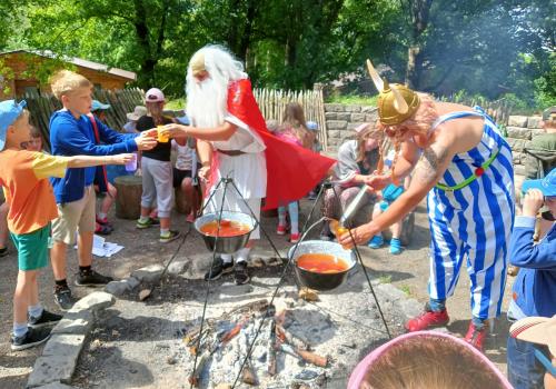 Po snídani jsme si zabalili, uklidili sruby a šli zjistit, zda se lektvar vařený přes noc povedl. Po ochutnání jsme získali supersílu a mohli jsme táhnout na Římany, které jsme v boji úspěšně porazili a vlajky ubránili. Každý z nás si veze domů část zázračného lektvaru, pamětní listinu a k tomu nespočet zážitků.