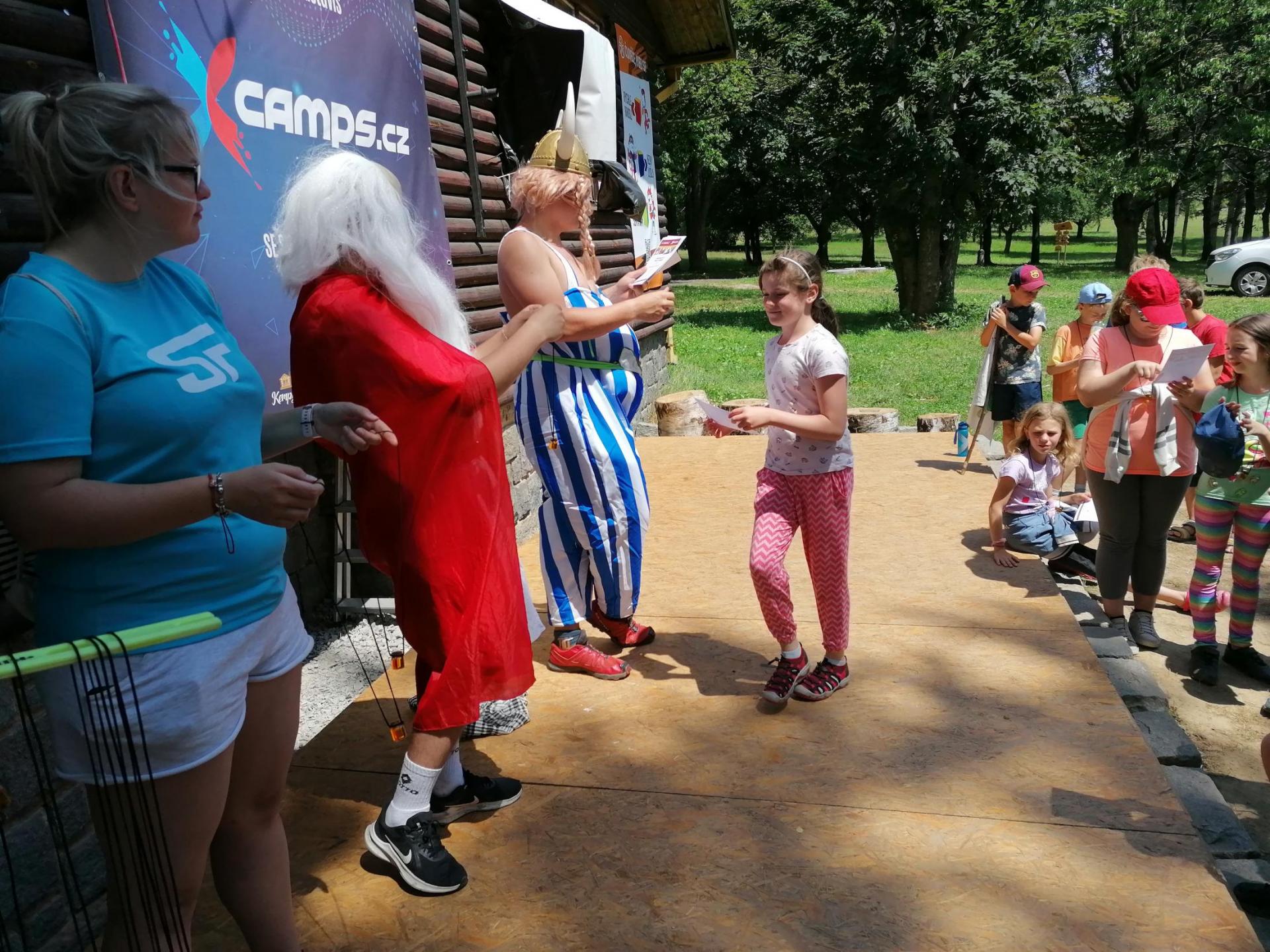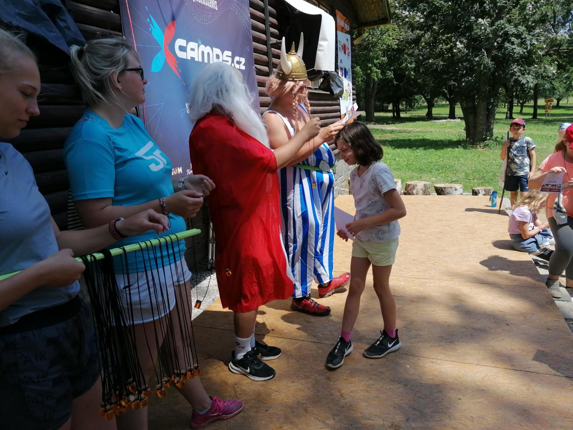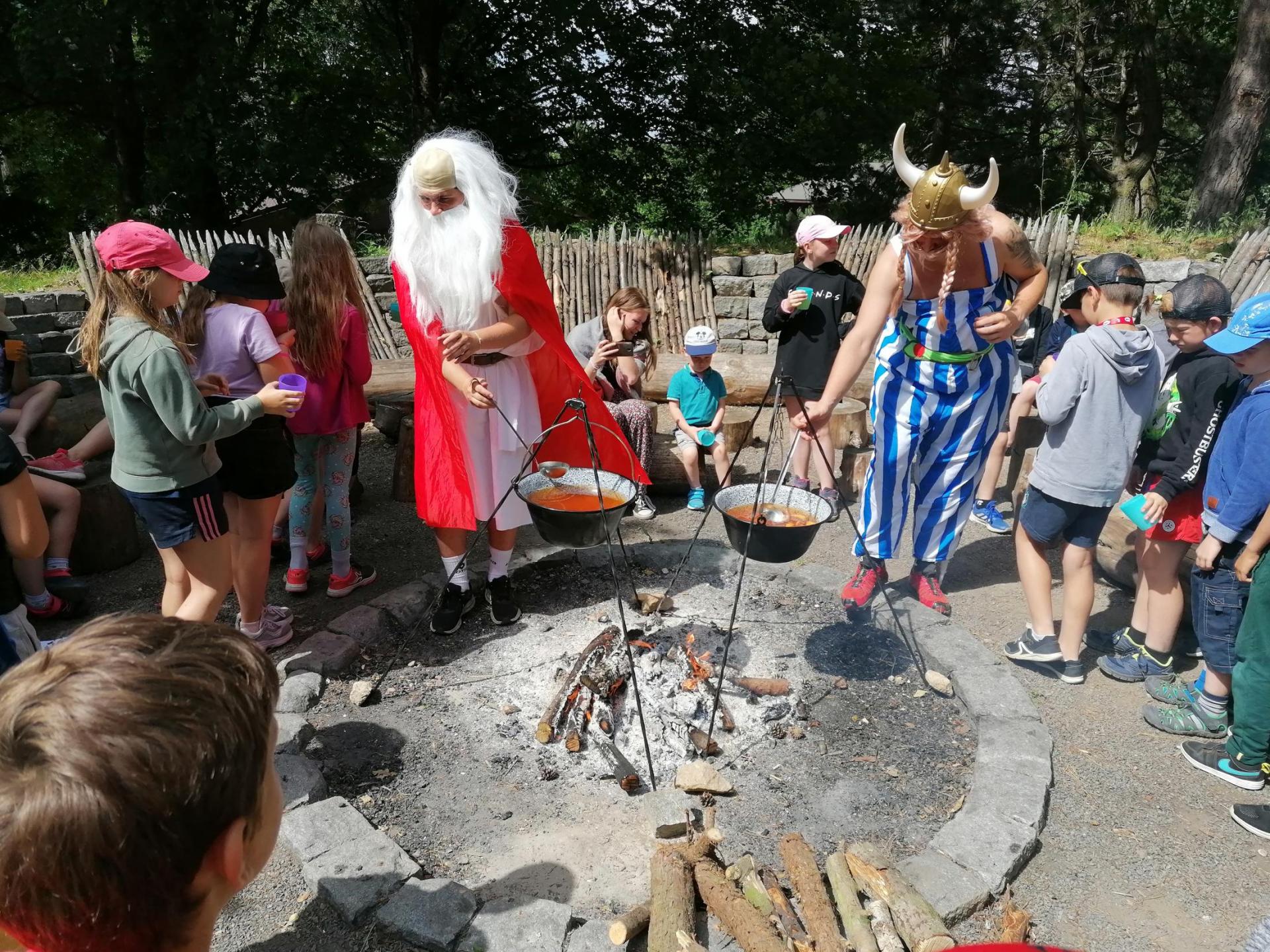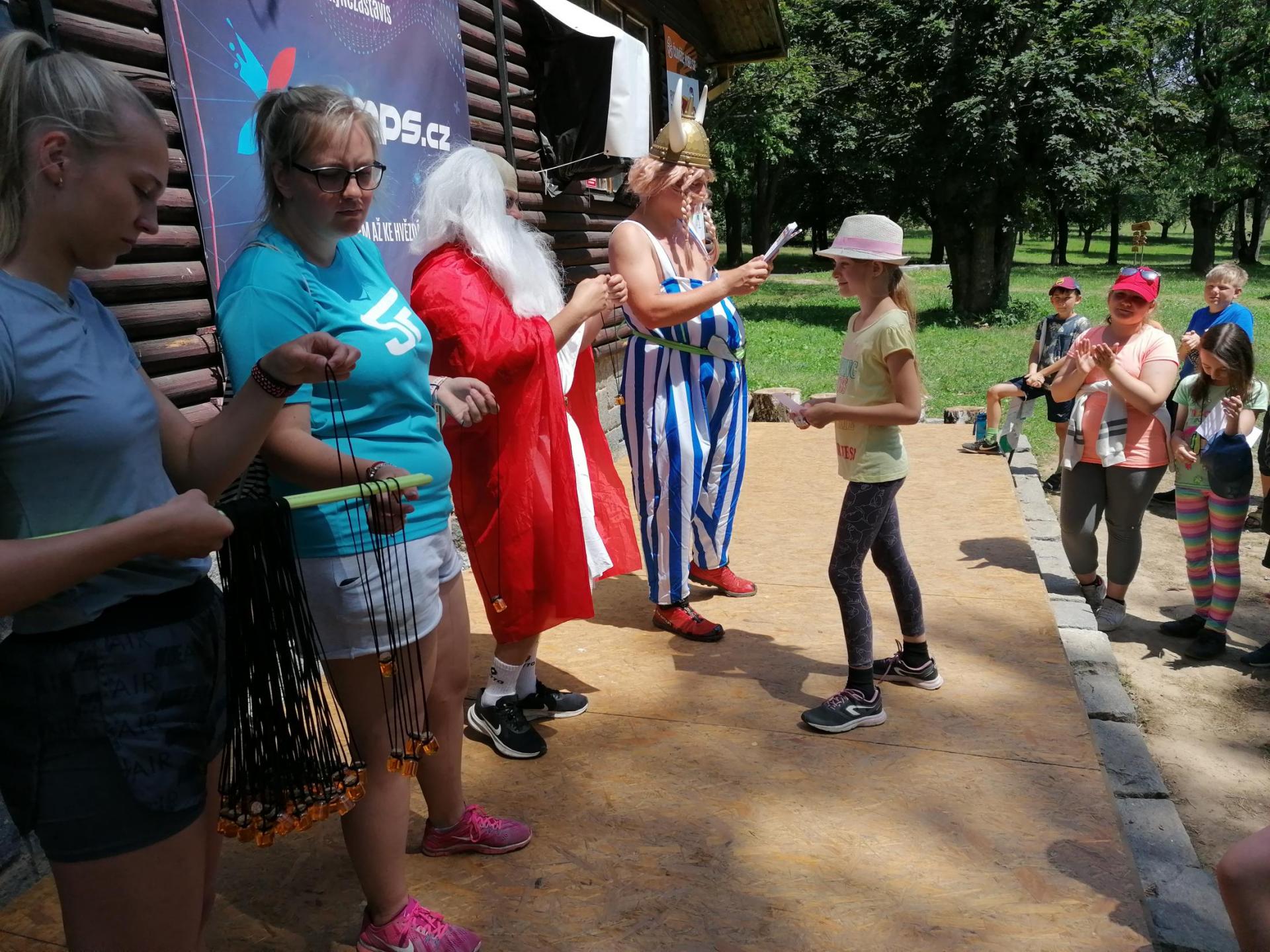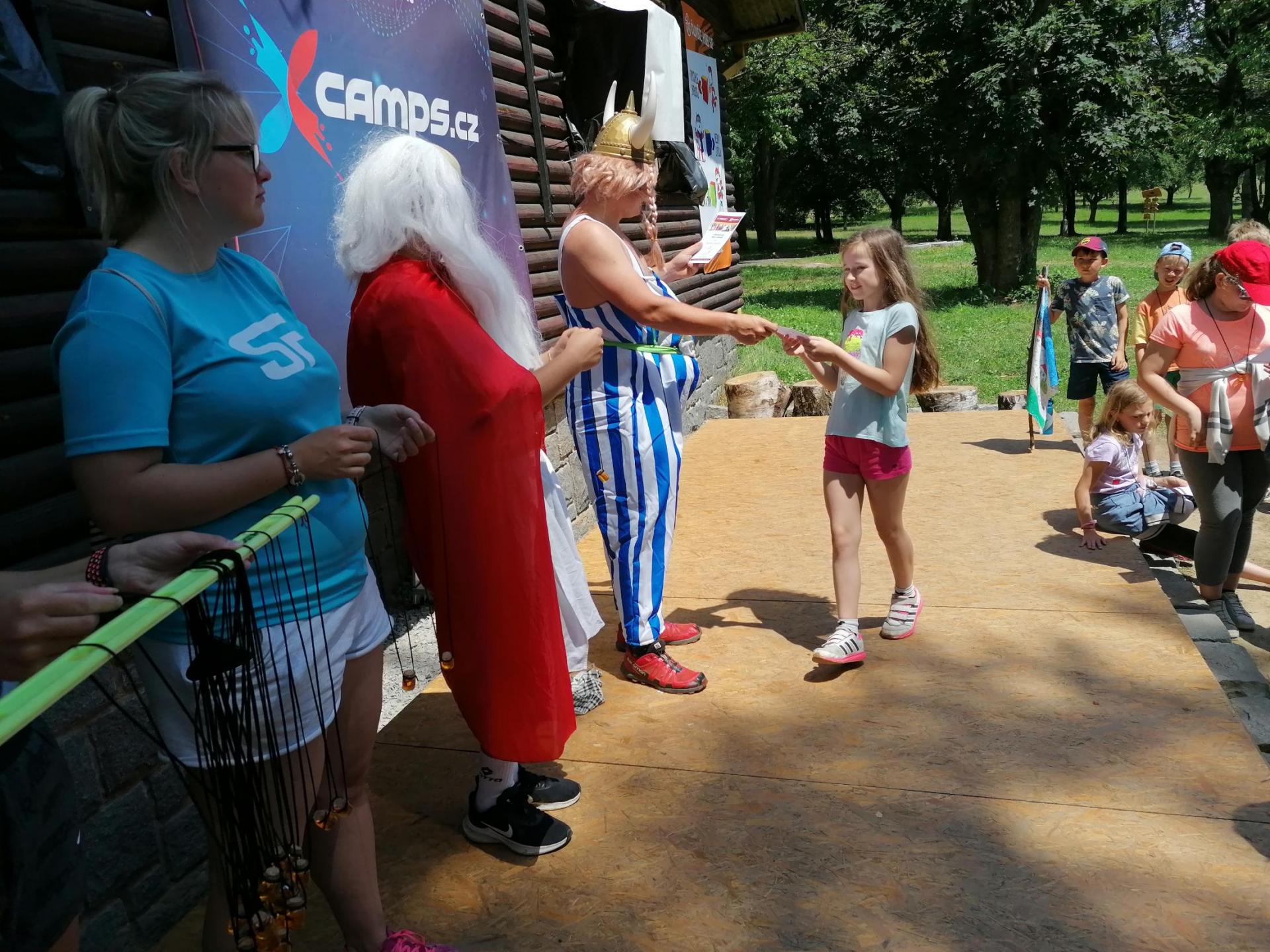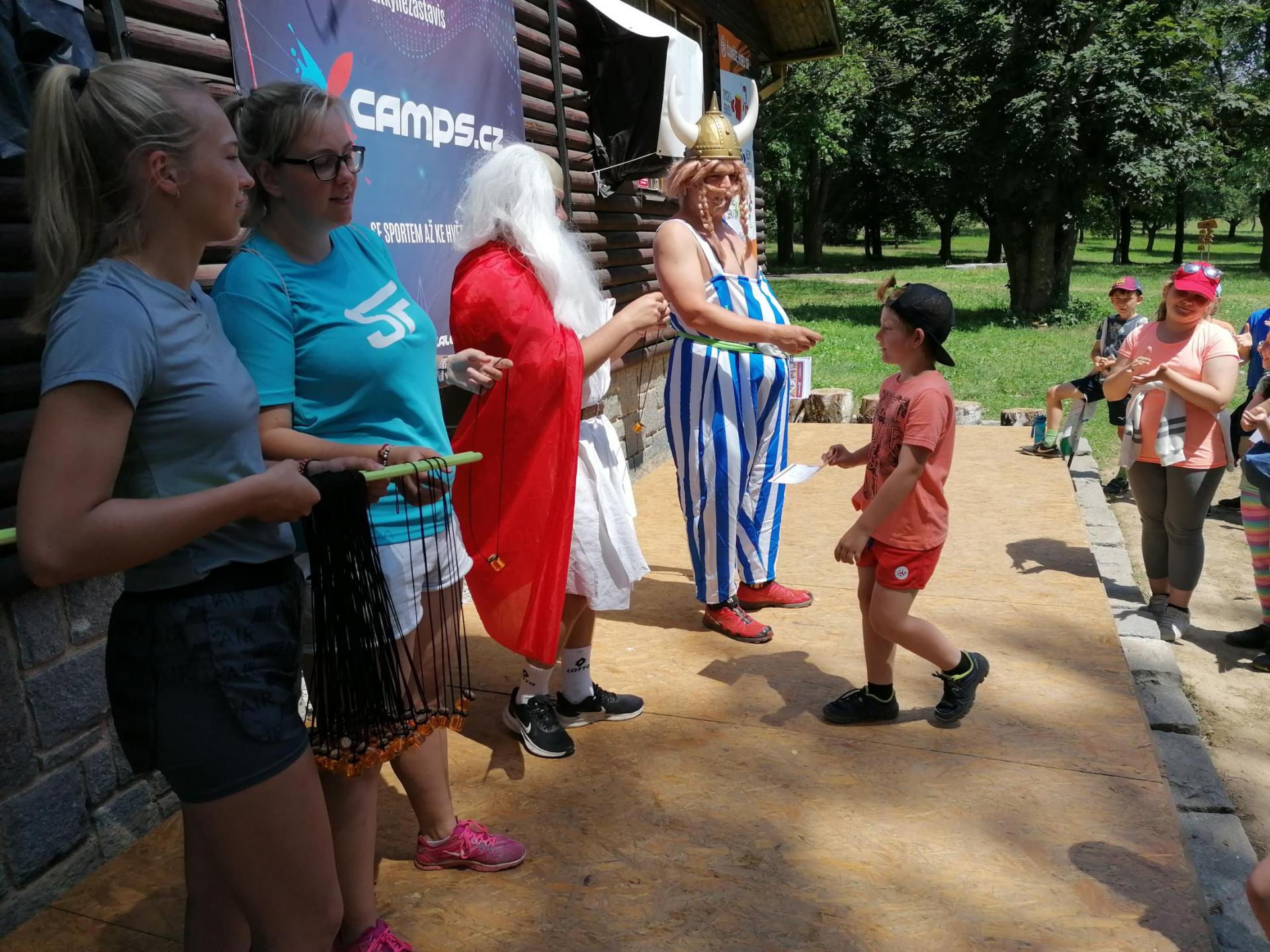 Po snídani jsme si zabalili, uklidili sruby a šli zjistit, zda se lektvar vařený přes noc povedl. Po ochutnání jsme získali supersílu a mohli jsme táhnout na Římany, které jsme v boji úspěšně porazili a vlajky ubránili. Každý z nás si veze domů část zázračného lektvaru, pamětní listinu a k tomu nespočet zážitků.
