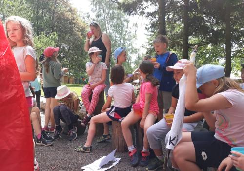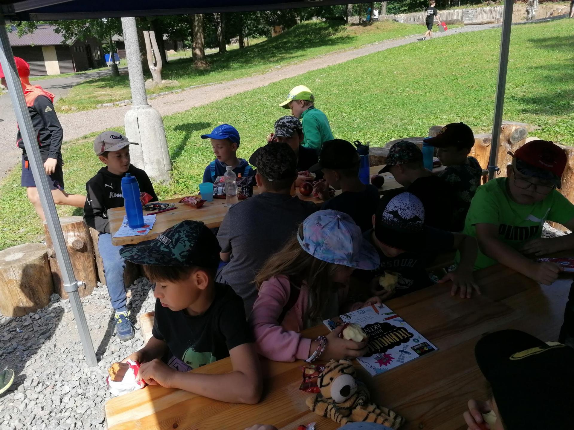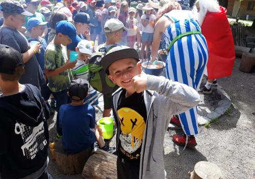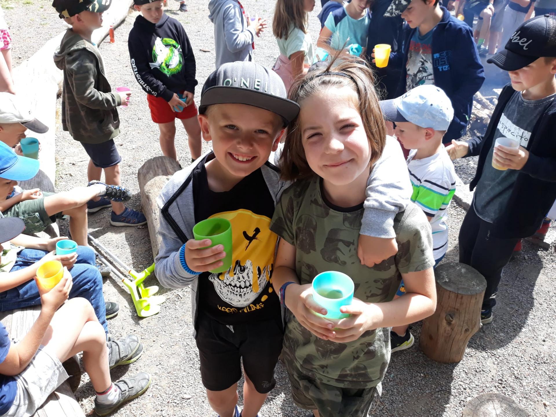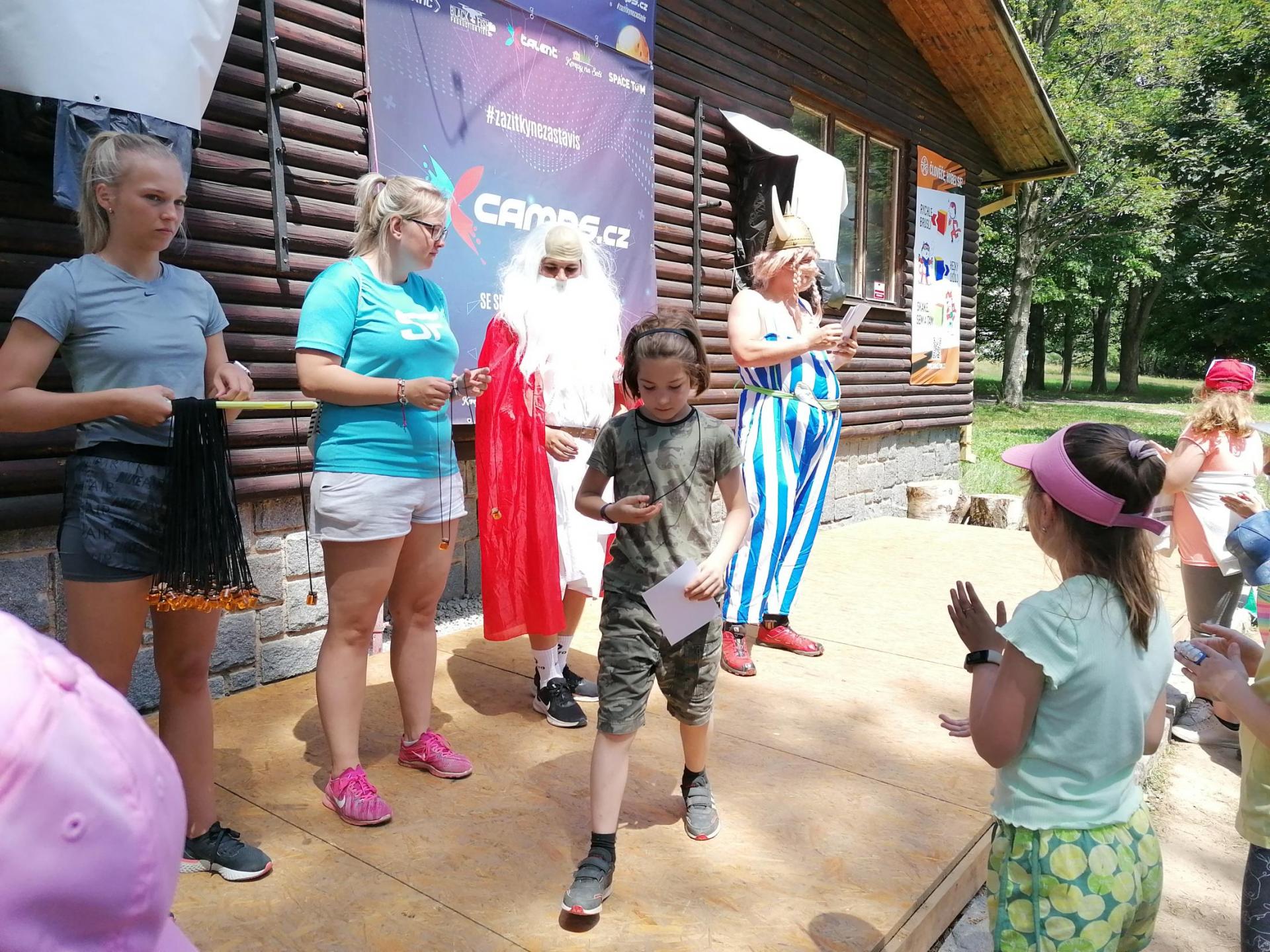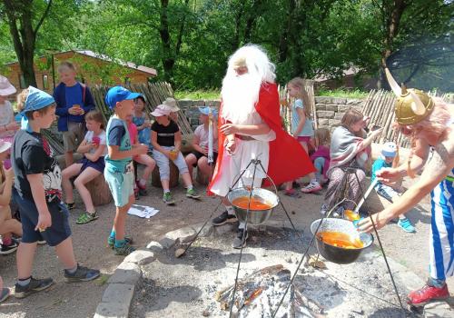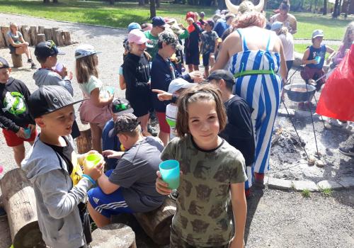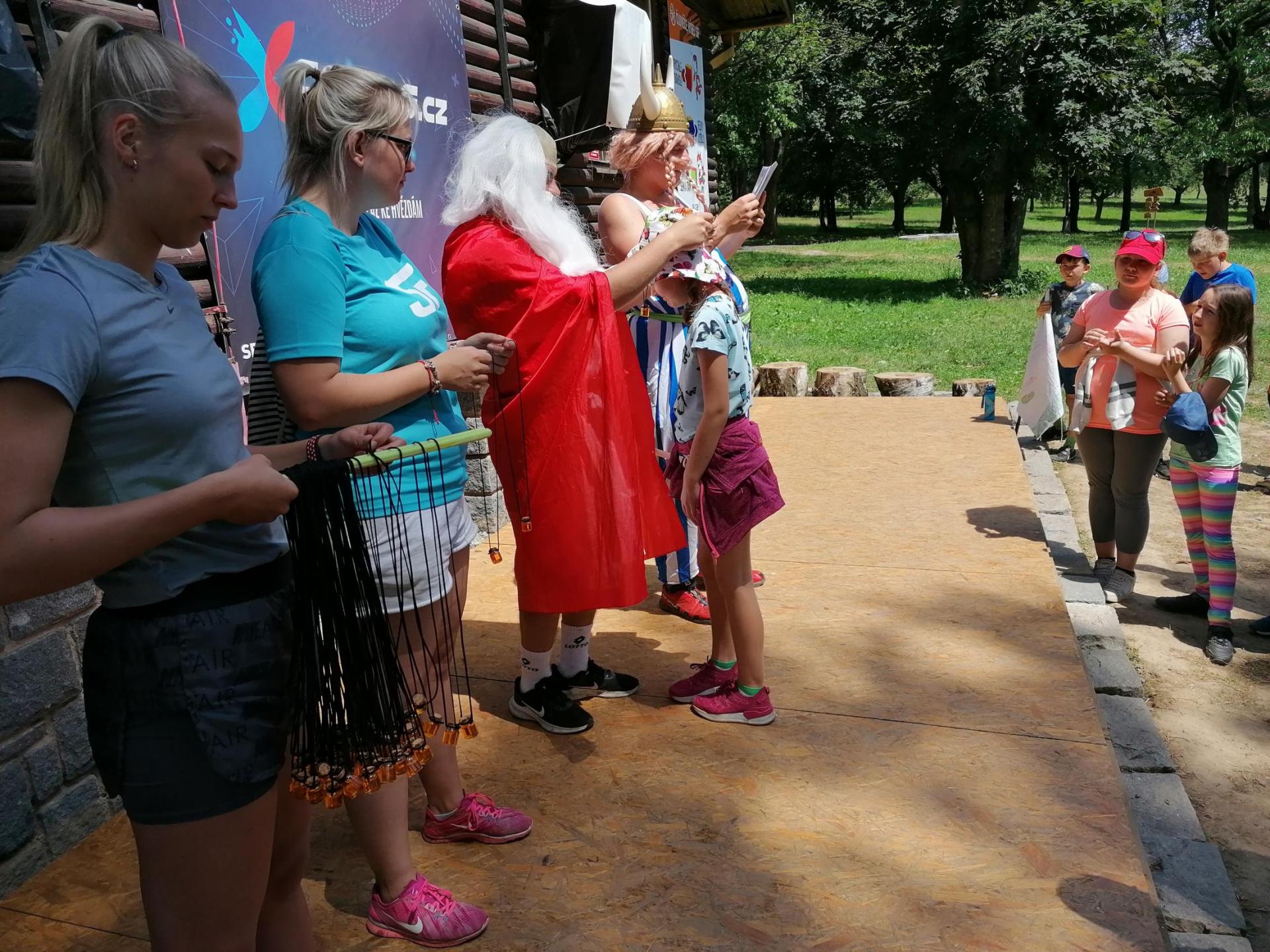 Po snídani jsme si zabalili, uklidili sruby a šli zjistit, zda se lektvar vařený přes noc povedl. Po ochutnání jsme získali supersílu a mohli jsme táhnout na Římany, které jsme v boji úspěšně porazili a vlajky ubránili. Každý z nás si veze domů část zázračného lektvaru, pamětní listinu a k tomu nespočet zážitků.