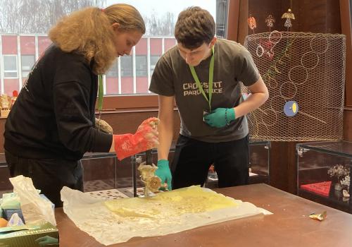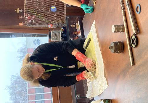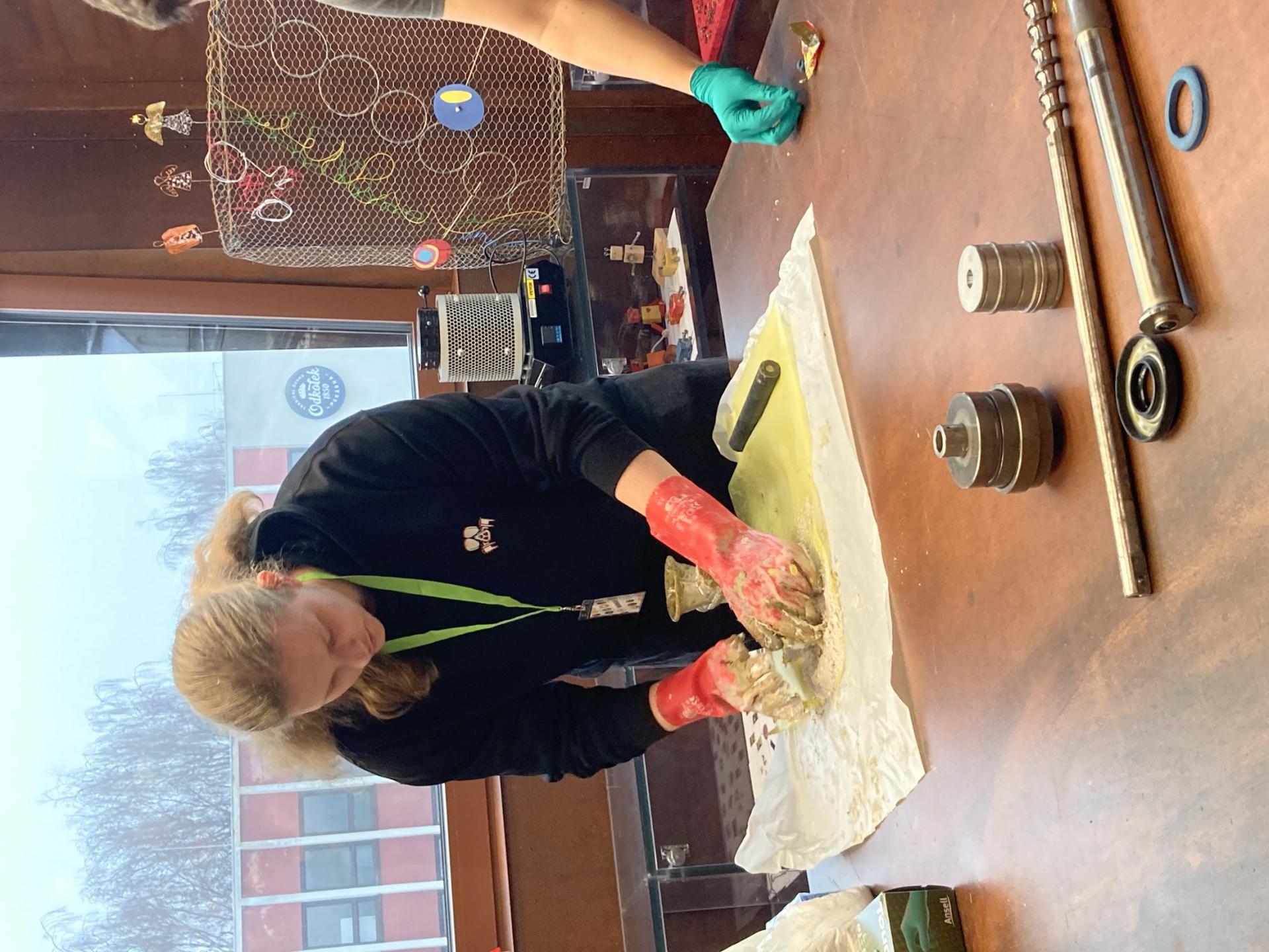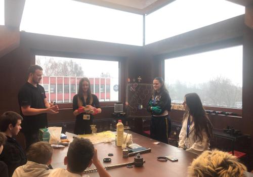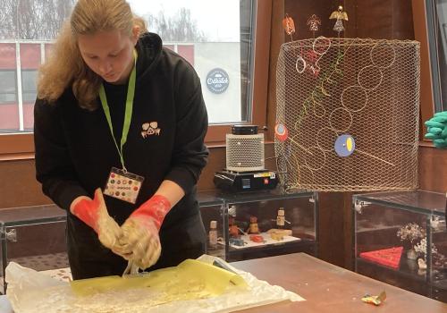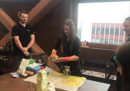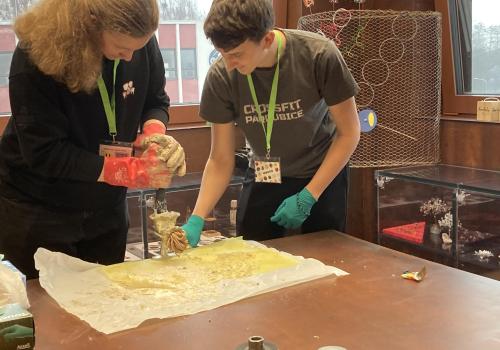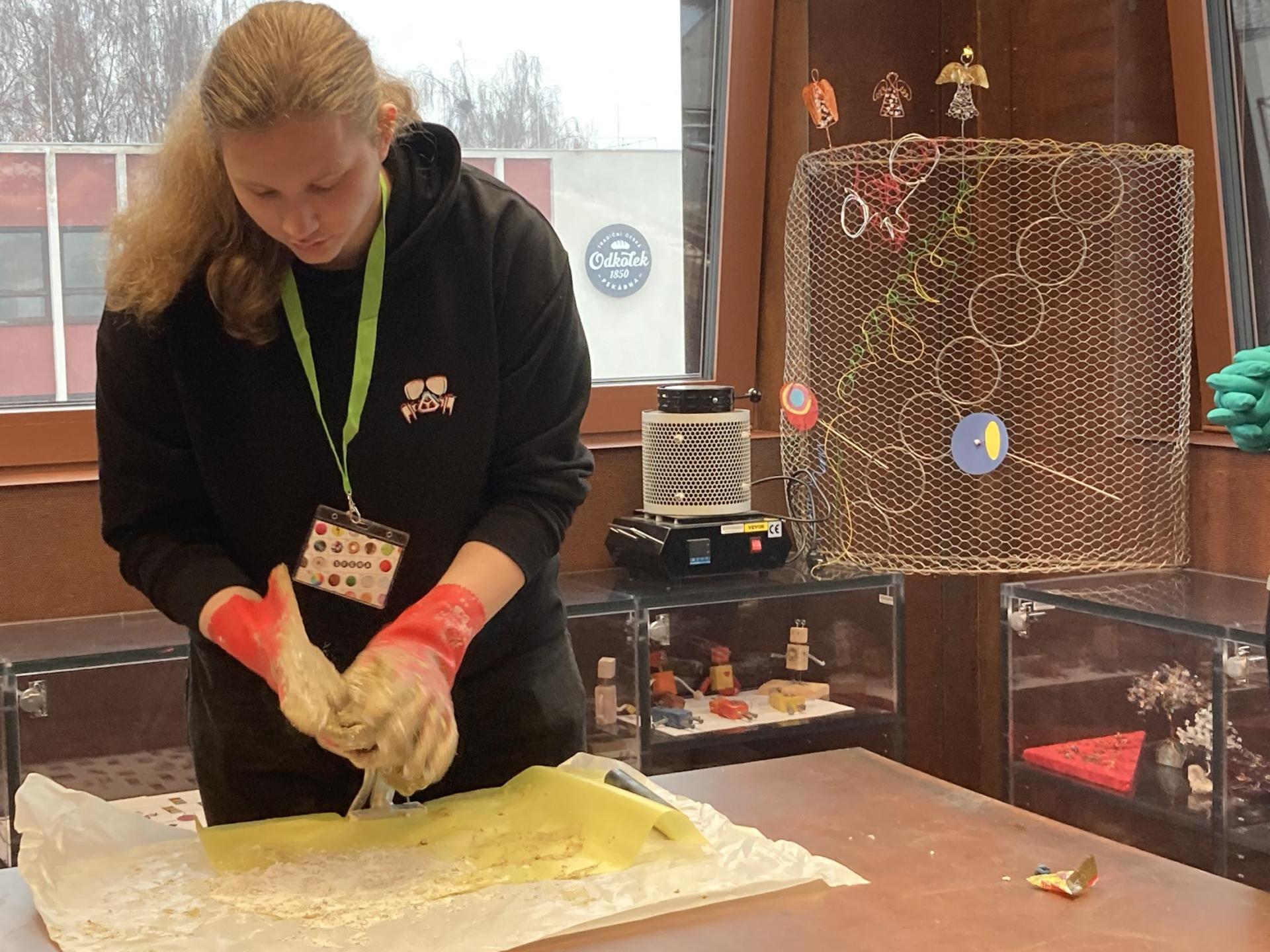Zkusili jsme si dát kaučuk na ruku. Zjistili jsme, že více vulkanizačního činidla nám zajistí větší pevnost gumy. Dozvěděli jsme se, že do těsnění se dává kovová kostra, aby držela tvar. Plachta se vyrábí tak, že se textil namočí do latexu. Protože plast nevede elektřinu, používá se např. na rukojeti šroubováků.