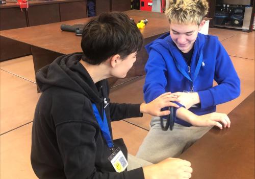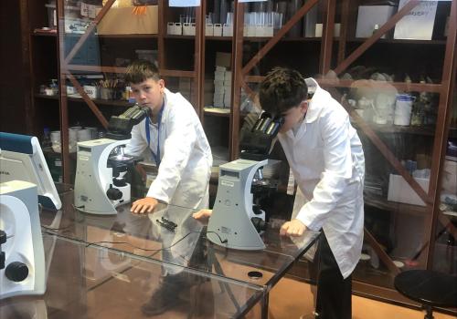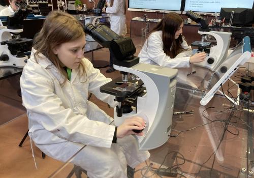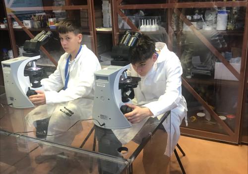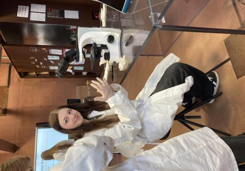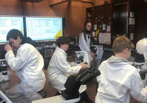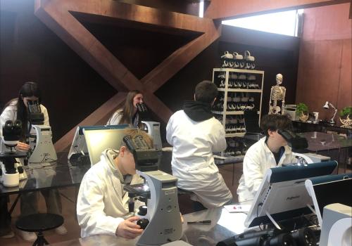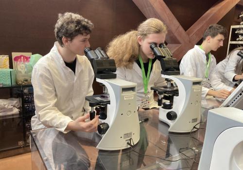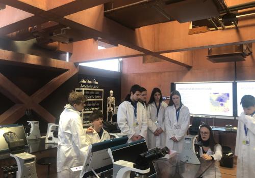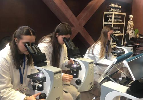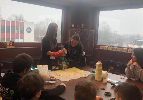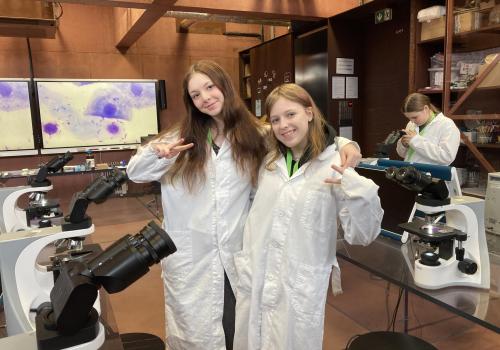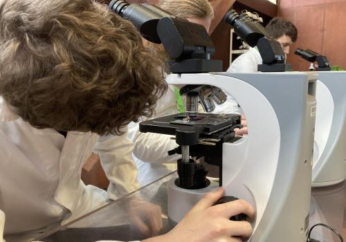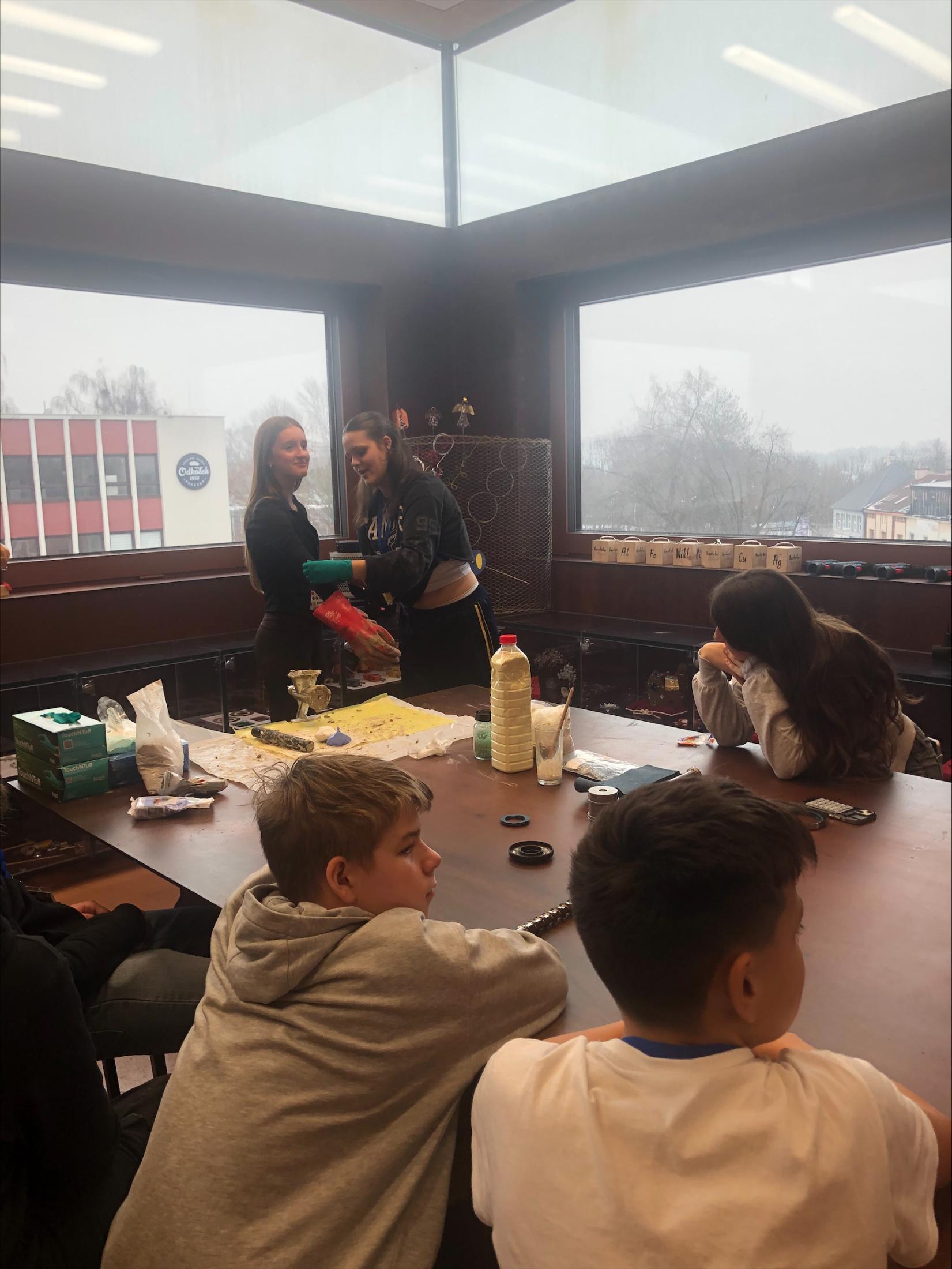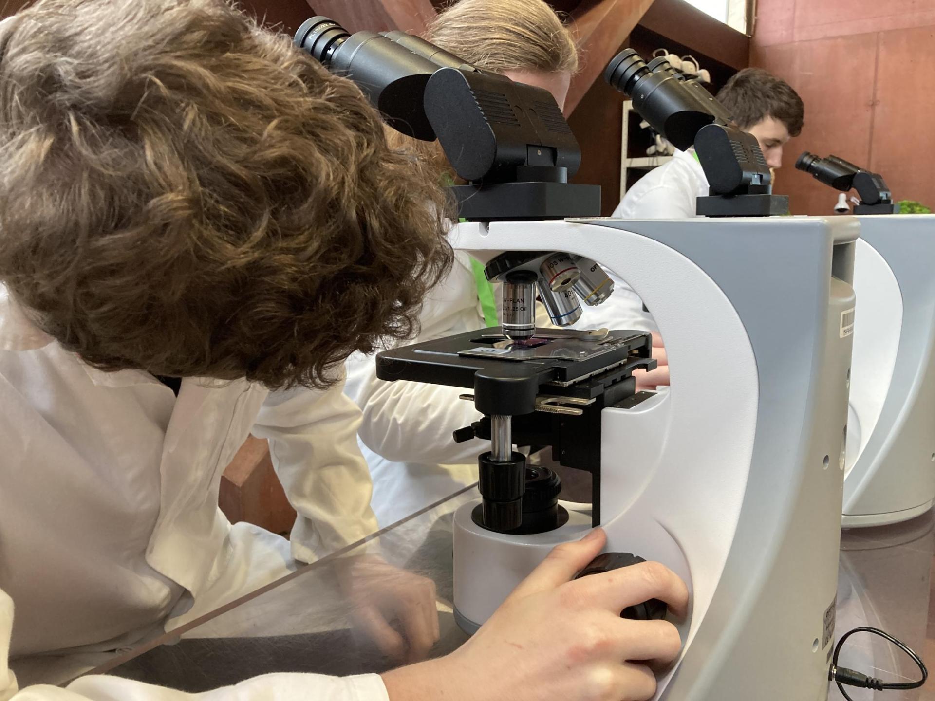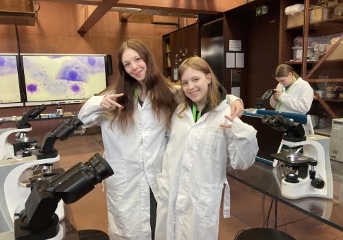 Druhý program byl zaměřený na přírodopis a jmenoval se „Mikrosvět v puse“. Tady jsme se dozvěděli, jak je důležitý mikrobiom, který máme ve střevech. Naše střeva jsou zoologická zahrada, kde žije až 1 kg bakterií. Některé bakterie jsou důležité (pomáhají tvořit vitamíny), jiné jsou škodlivé (vedou k nemocem). Naše strava ovlivňuje, které bakterie ve střevech budeme mít. Mikrobiom stimuluje imunitní systém a nerovnováha vede k nemocem. Pomocí Gramova barvení jsme pod mikroskopem pozorovali obsah ústní dutiny. Dozvěděli jsme se, že koky jsou kolečka a bacily tyčinky, a že bakterie jsou větší než viry.