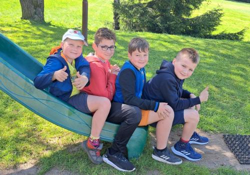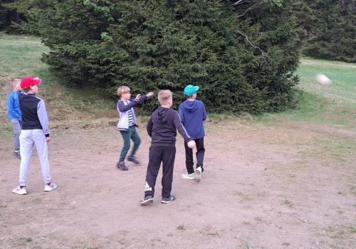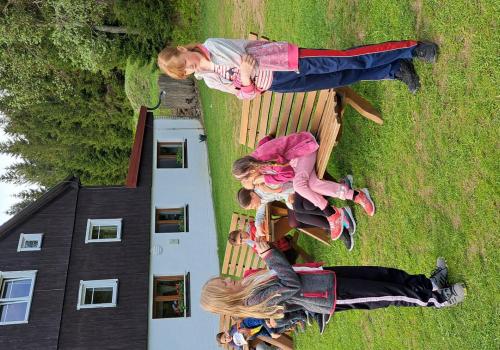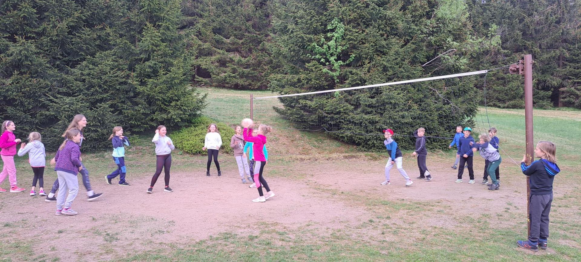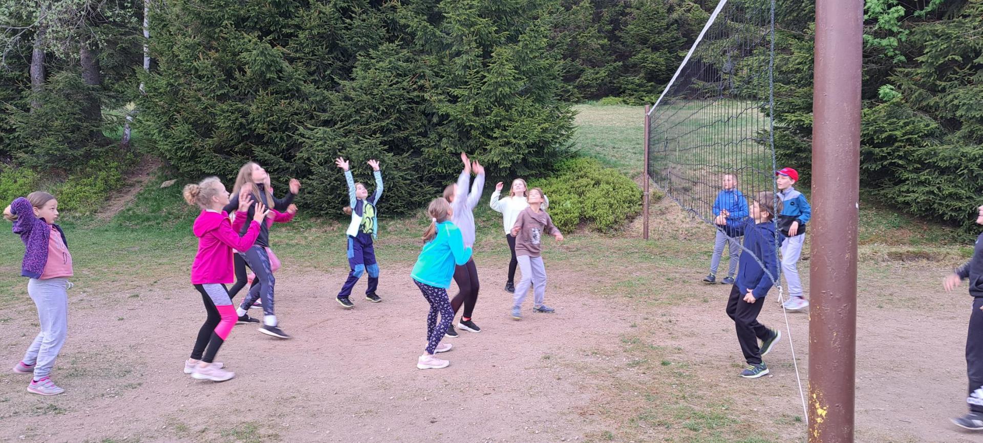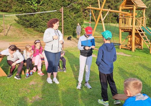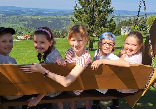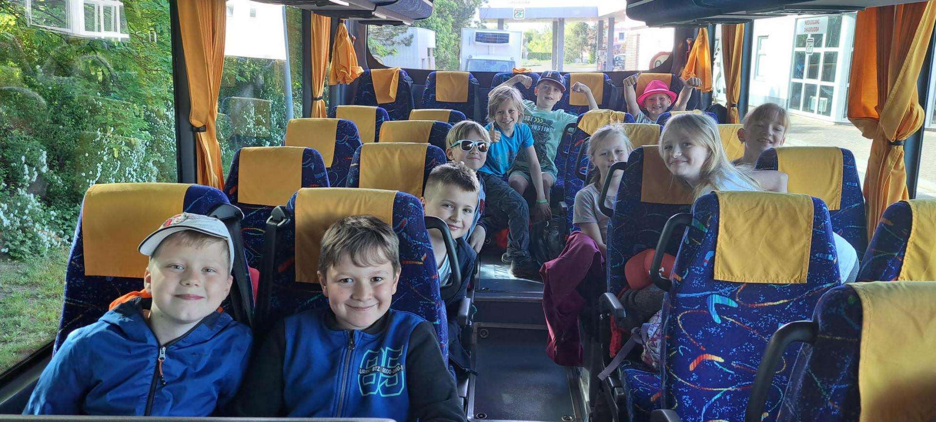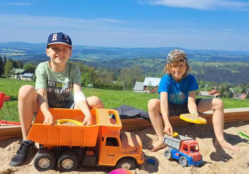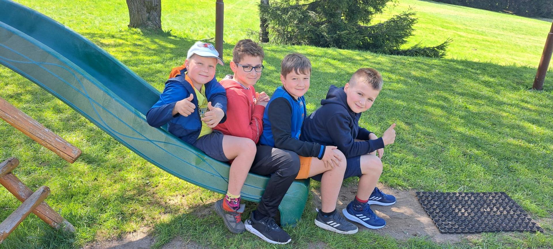 Cesta byla klidná, po příjezdu jsme hned využili venkovní hřiště, aby se děti trošku protáhly po cestě v autobuse.