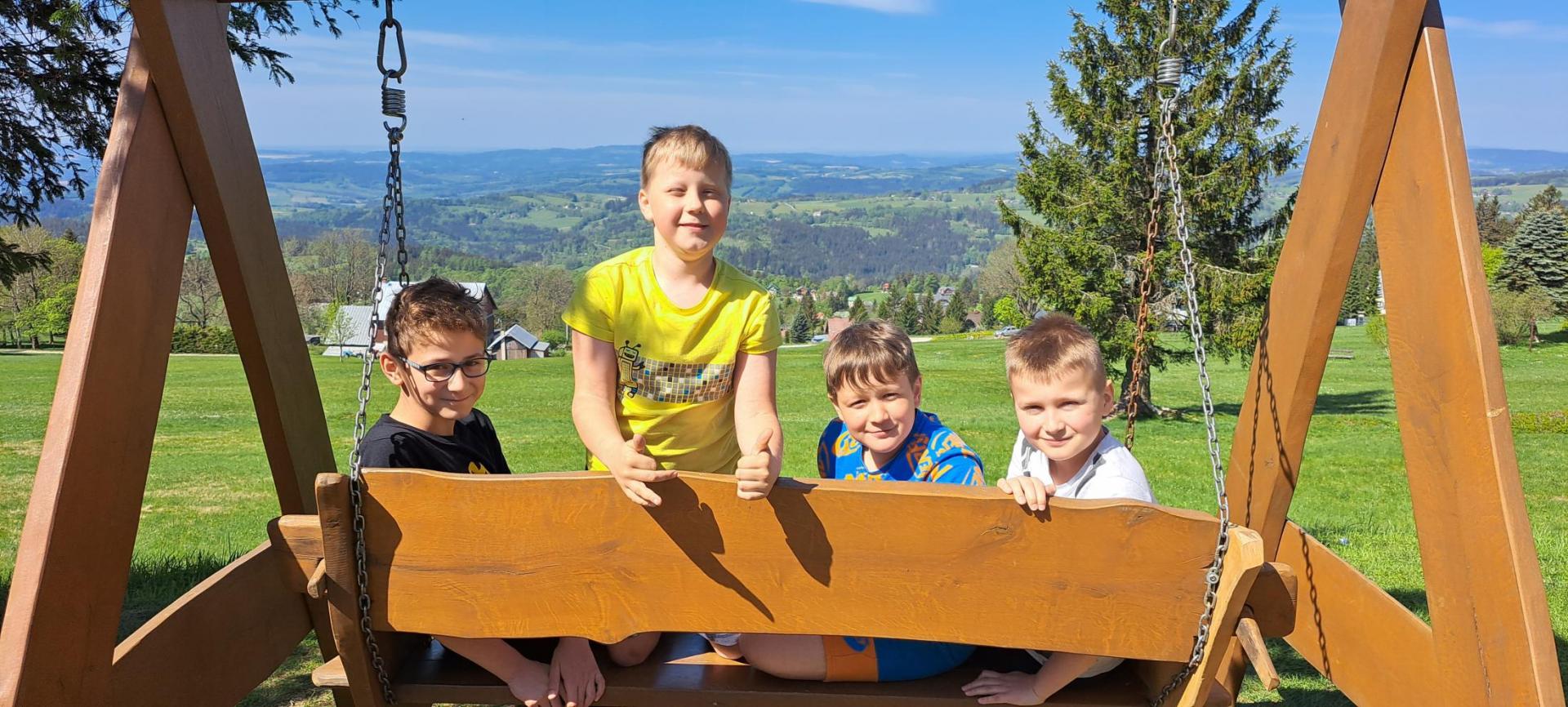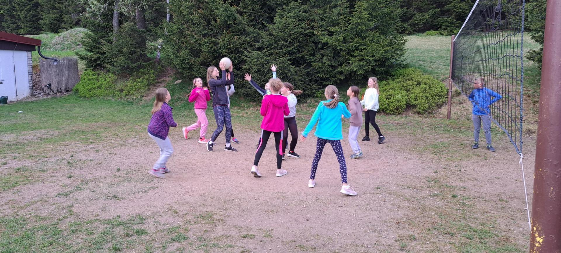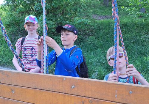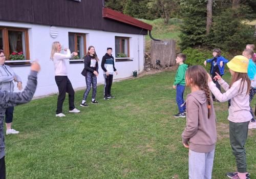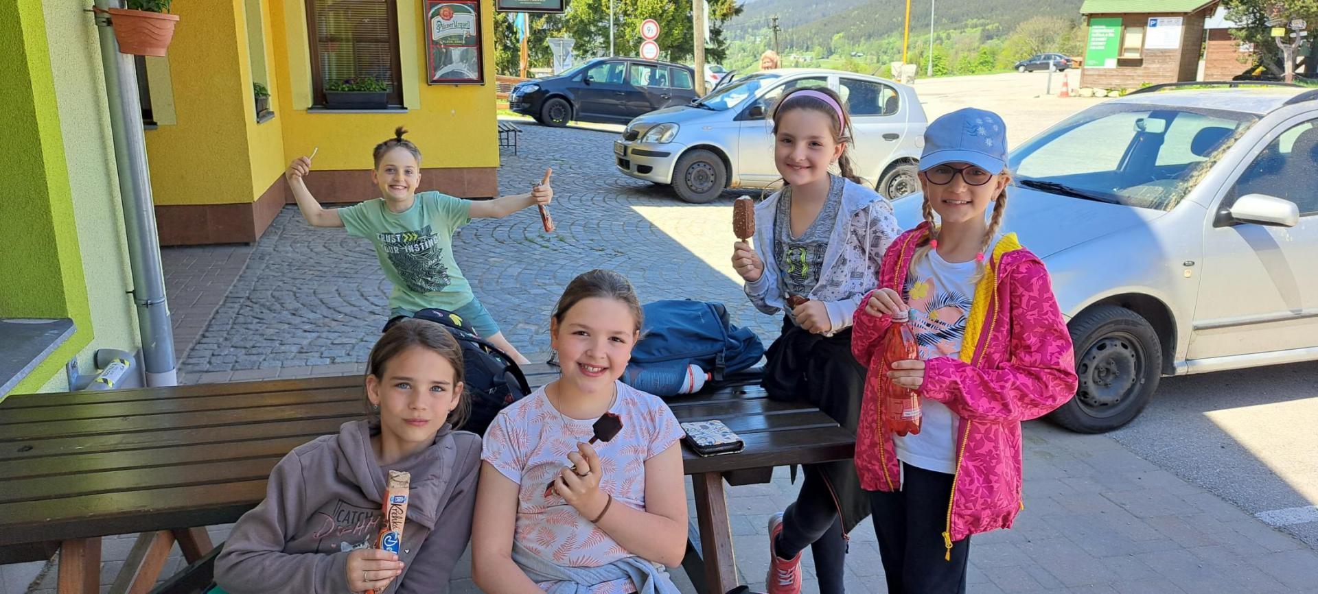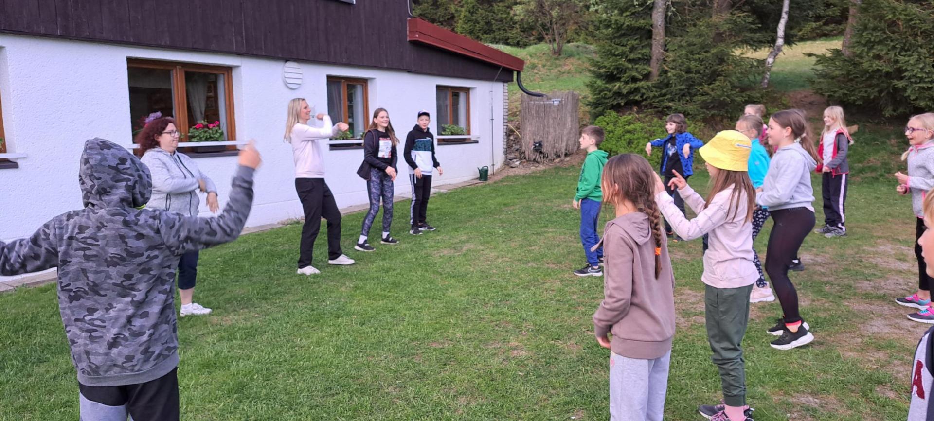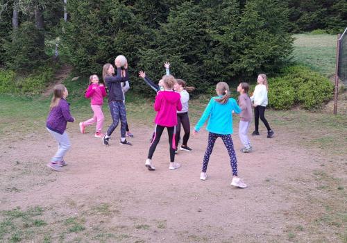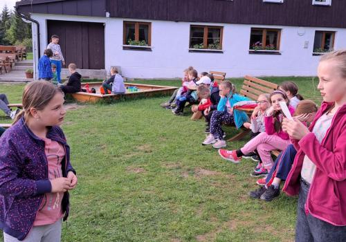 Cesta byla klidná, po příjezdu jsme hned využili venkovní hřiště, aby se děti trošku protáhly po cestě v autobuse.