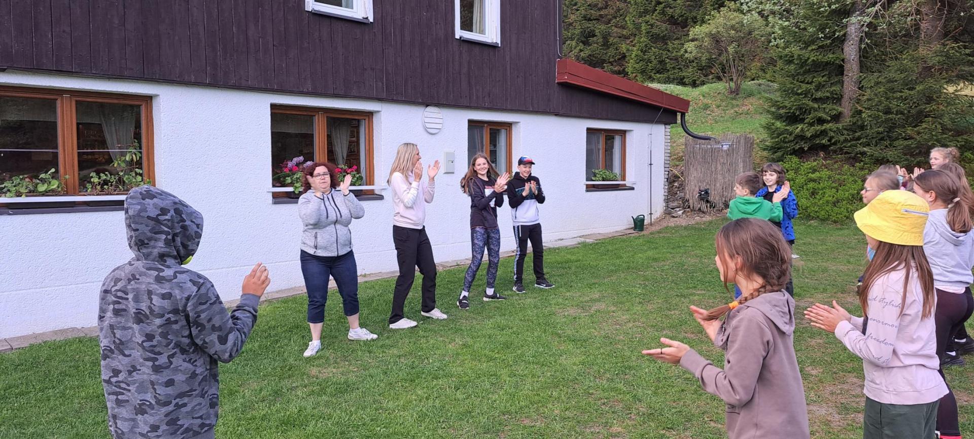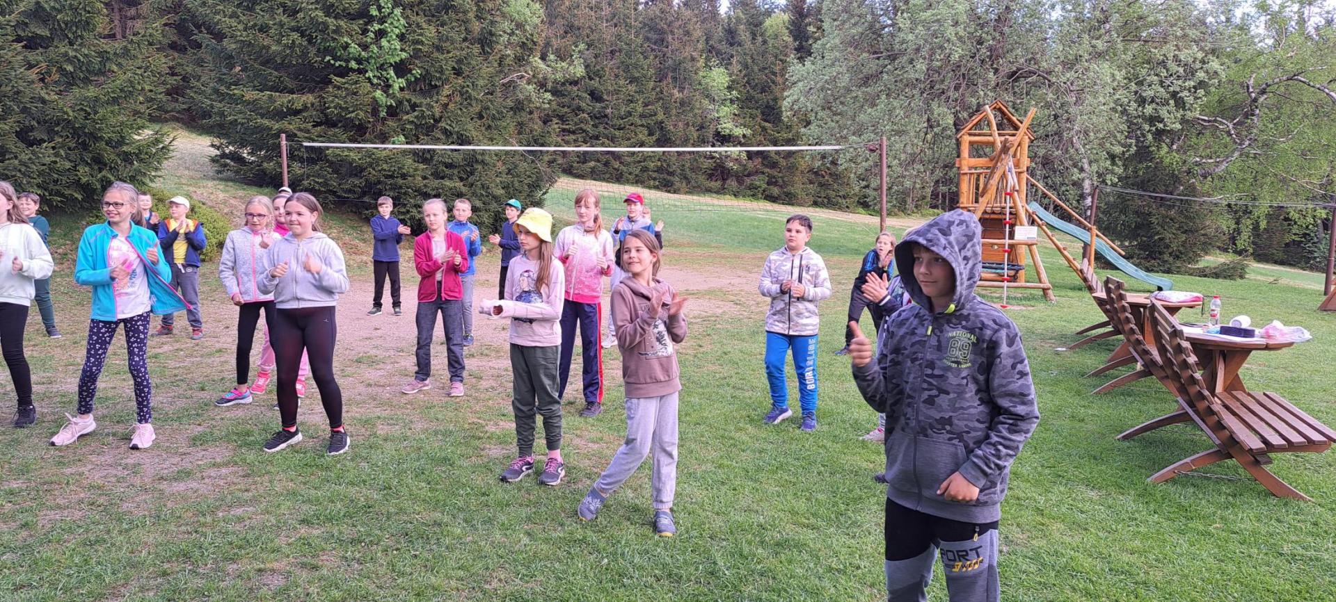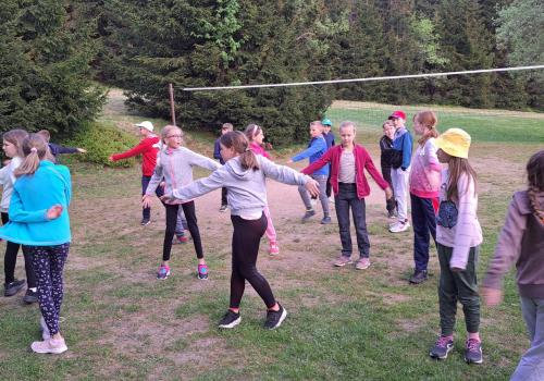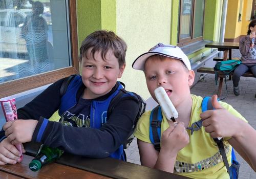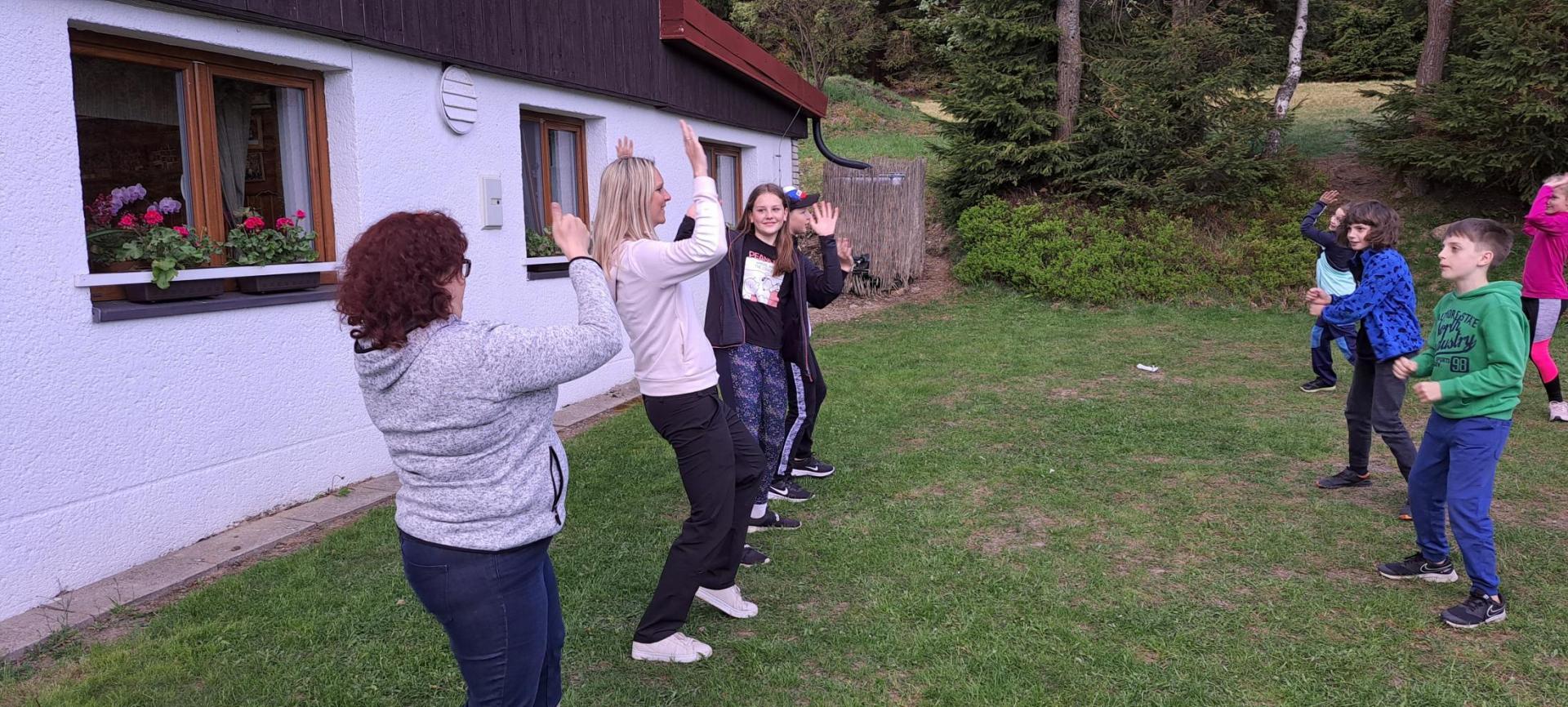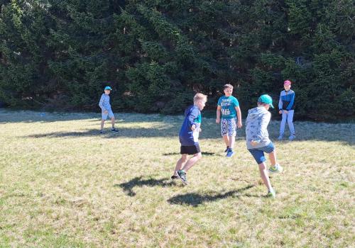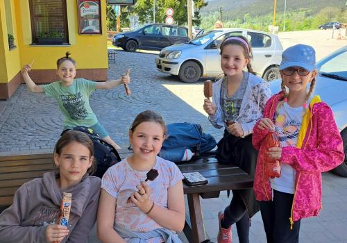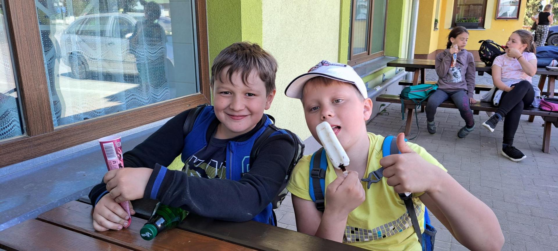 Cesta byla klidná, po příjezdu jsme hned využili venkovní hřiště, aby se děti trošku protáhly po cestě v autobuse.