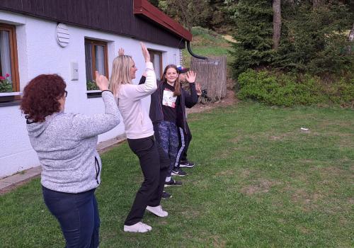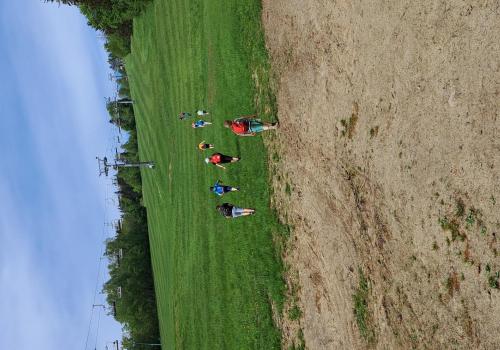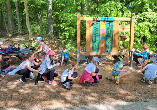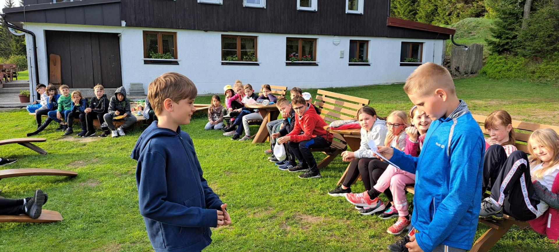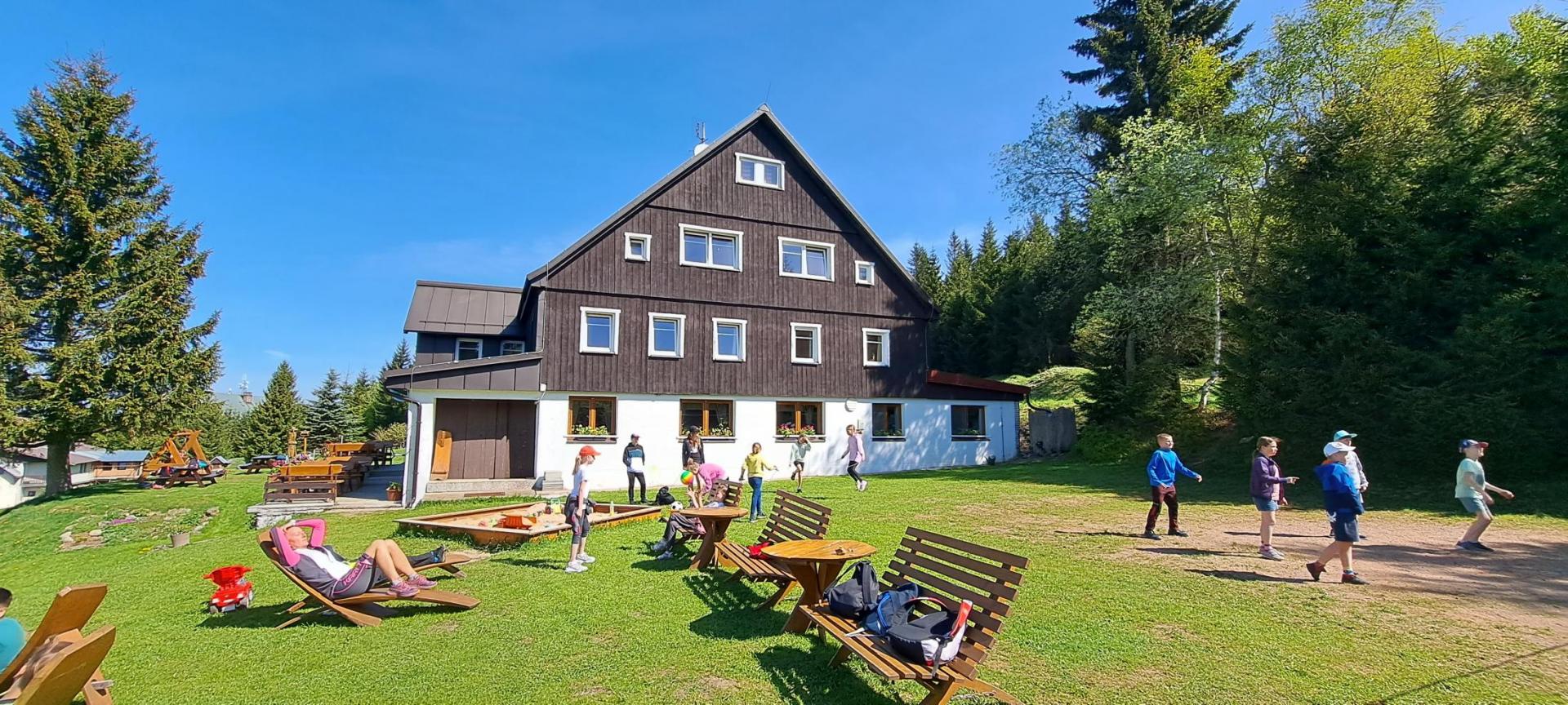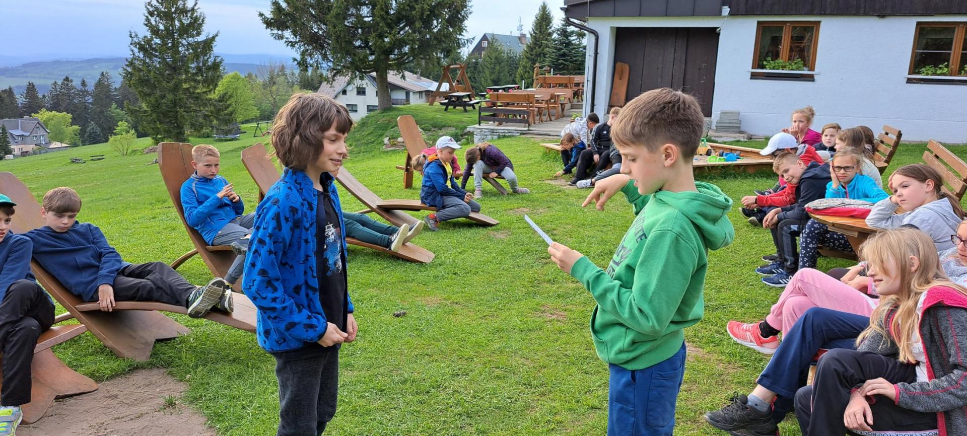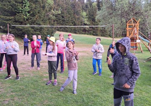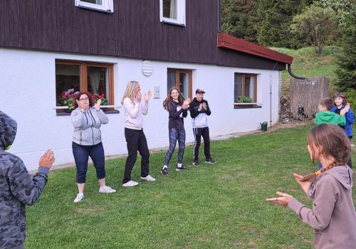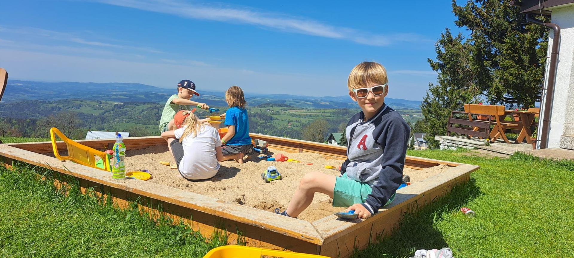 Cesta byla klidná, po příjezdu jsme hned využili venkovní hřiště, aby se děti trošku protáhly po cestě v autobuse.