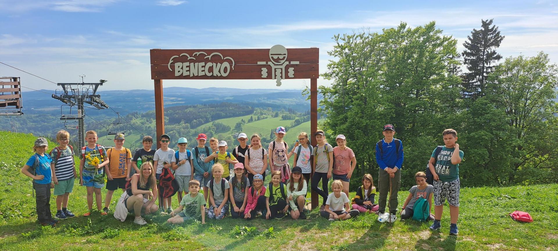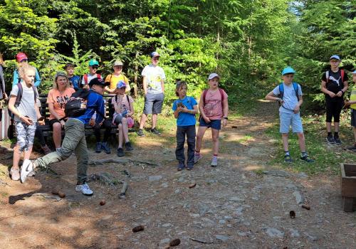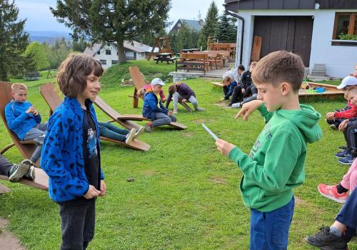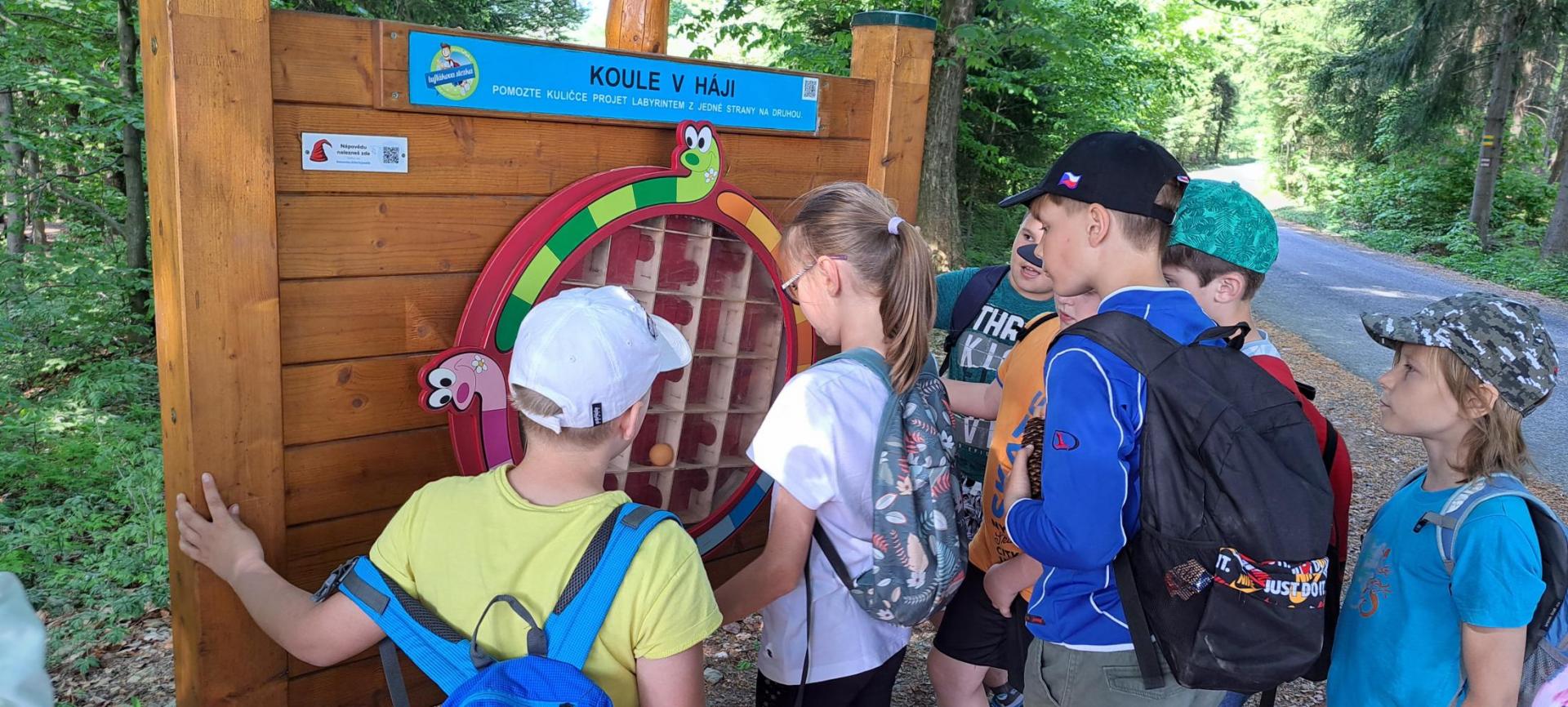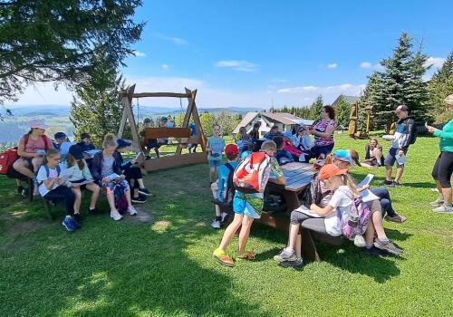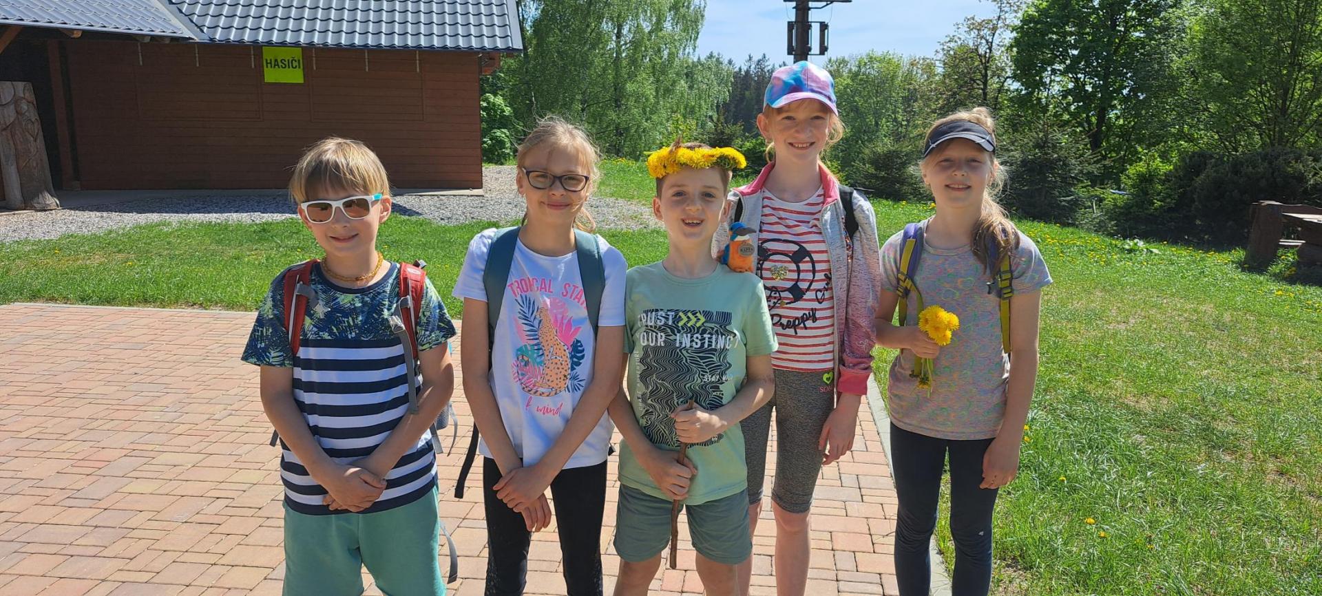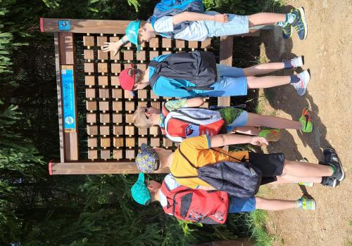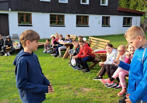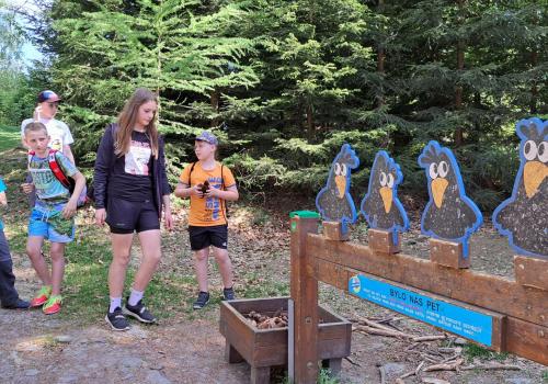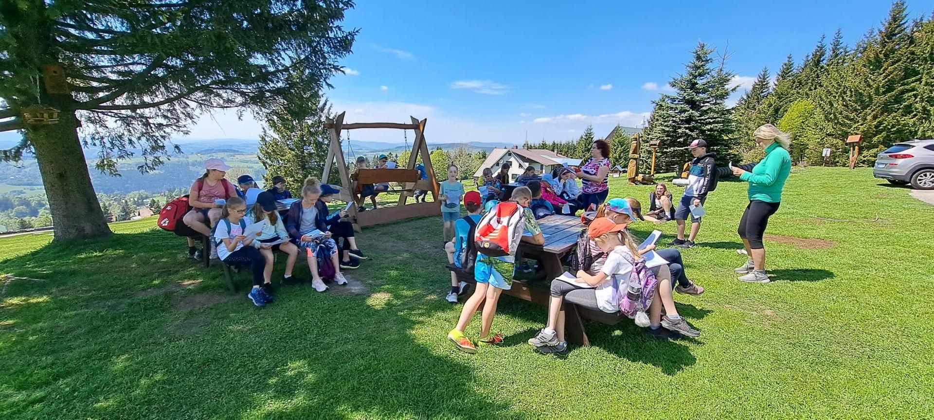 Posilněni jsme se vydali na Lufťákovu stezku, kde děti plnily úkoly. Zpátky to chtěli všichni vzít zkratkou, tak jsme si vyšlápli sjezdovku (někteří ji dobrovolně běhali několikrát).