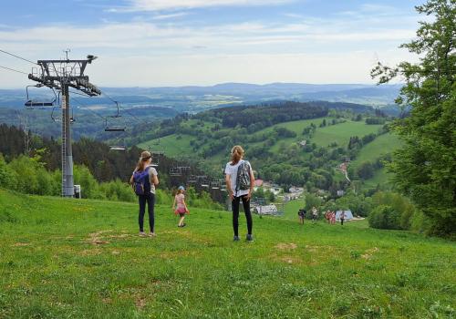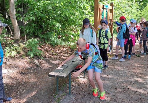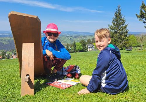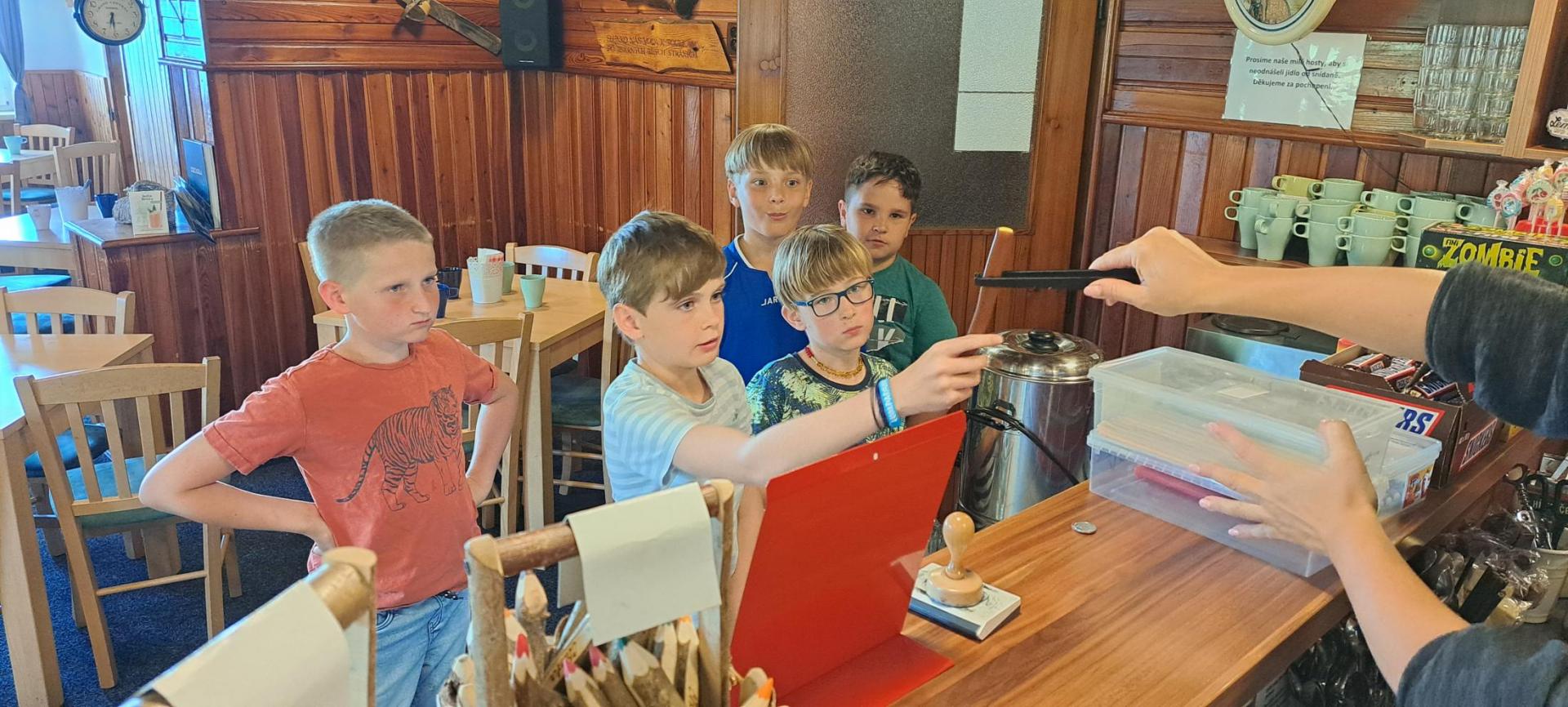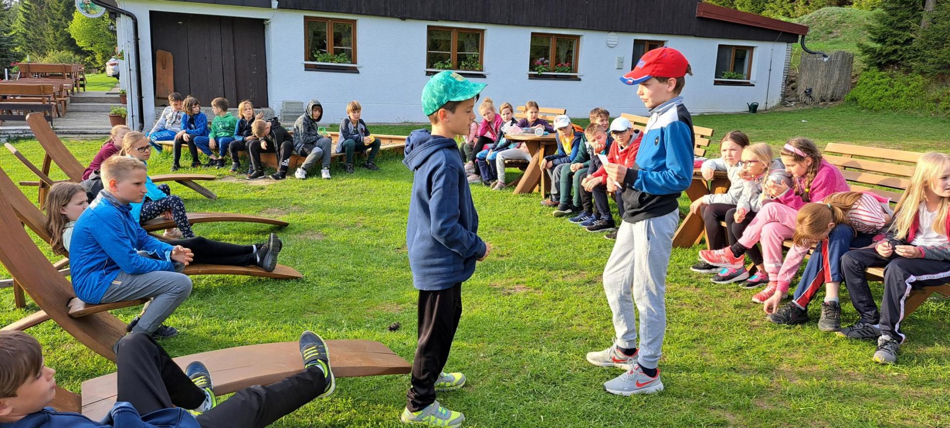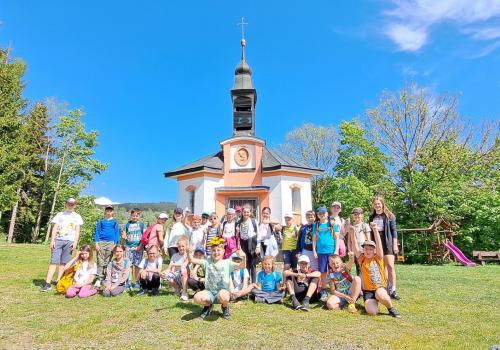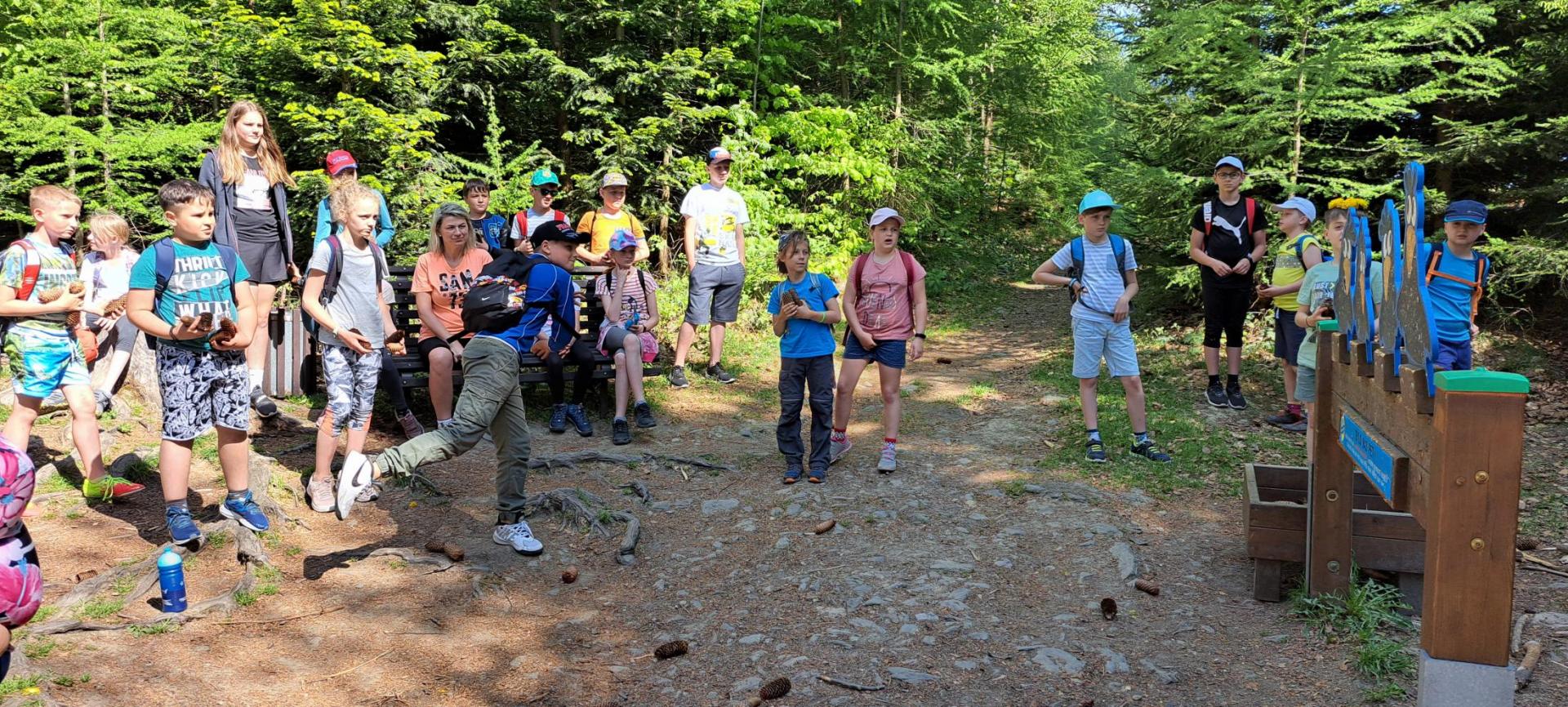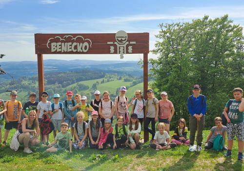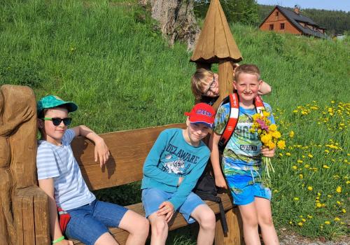 Posilněni jsme se vydali na Lufťákovu stezku, kde děti plnily úkoly. Zpátky to chtěli všichni vzít zkratkou, tak jsme si vyšlápli sjezdovku (někteří ji dobrovolně běhali několikrát).