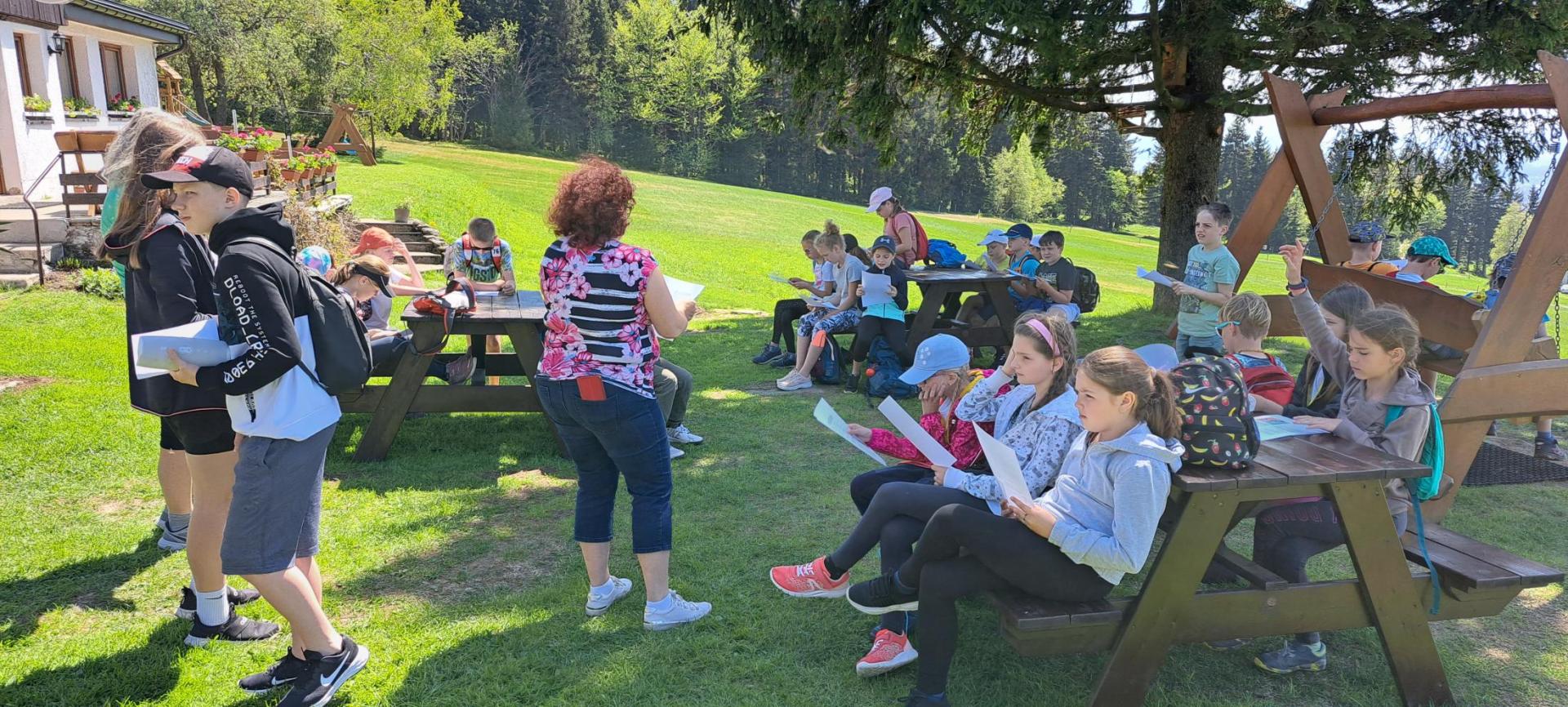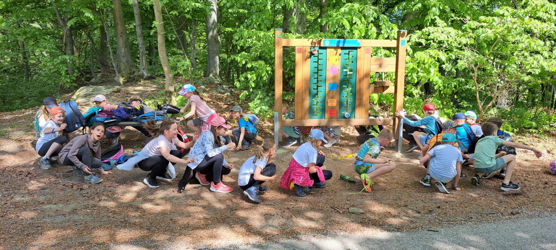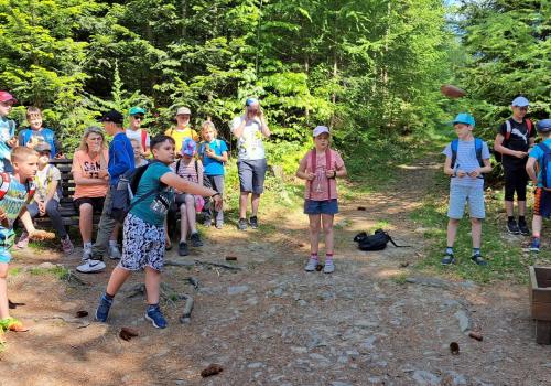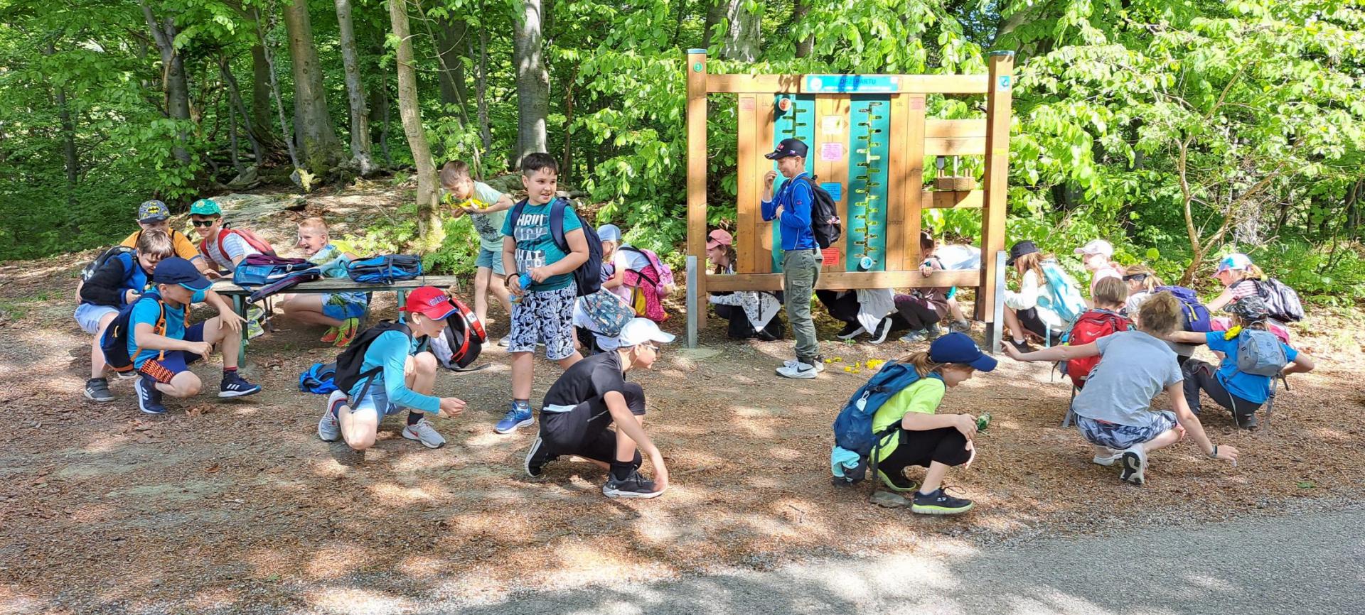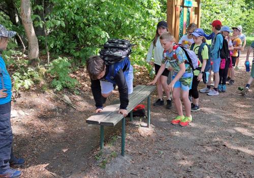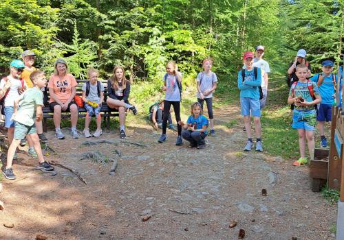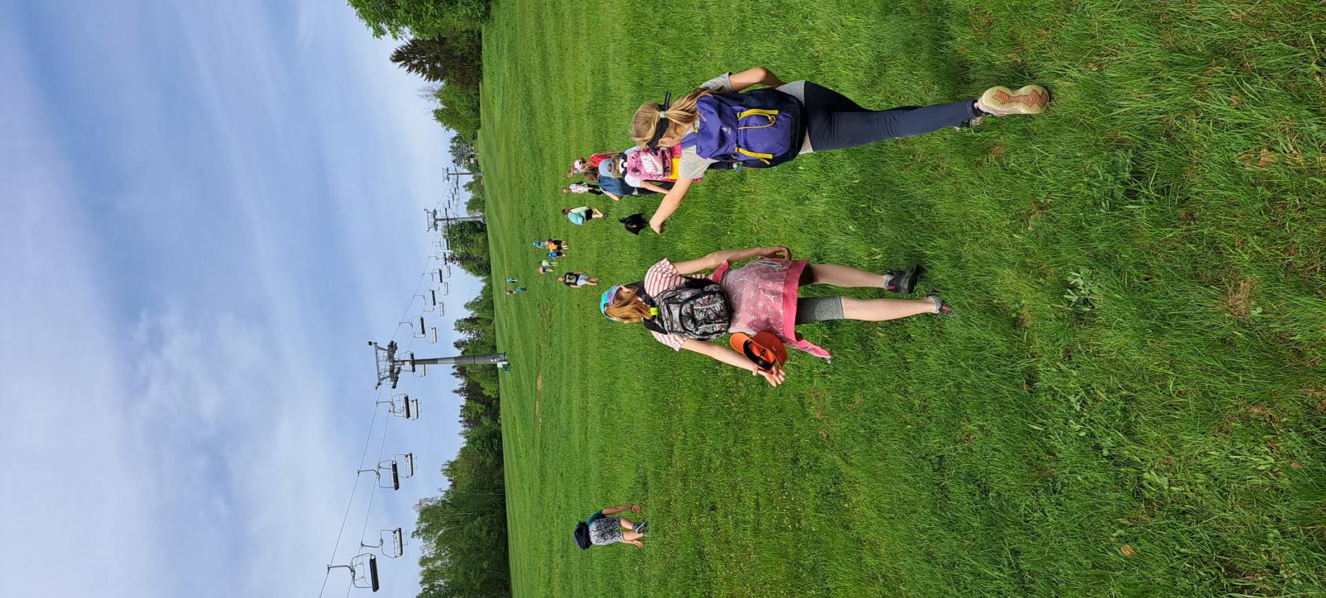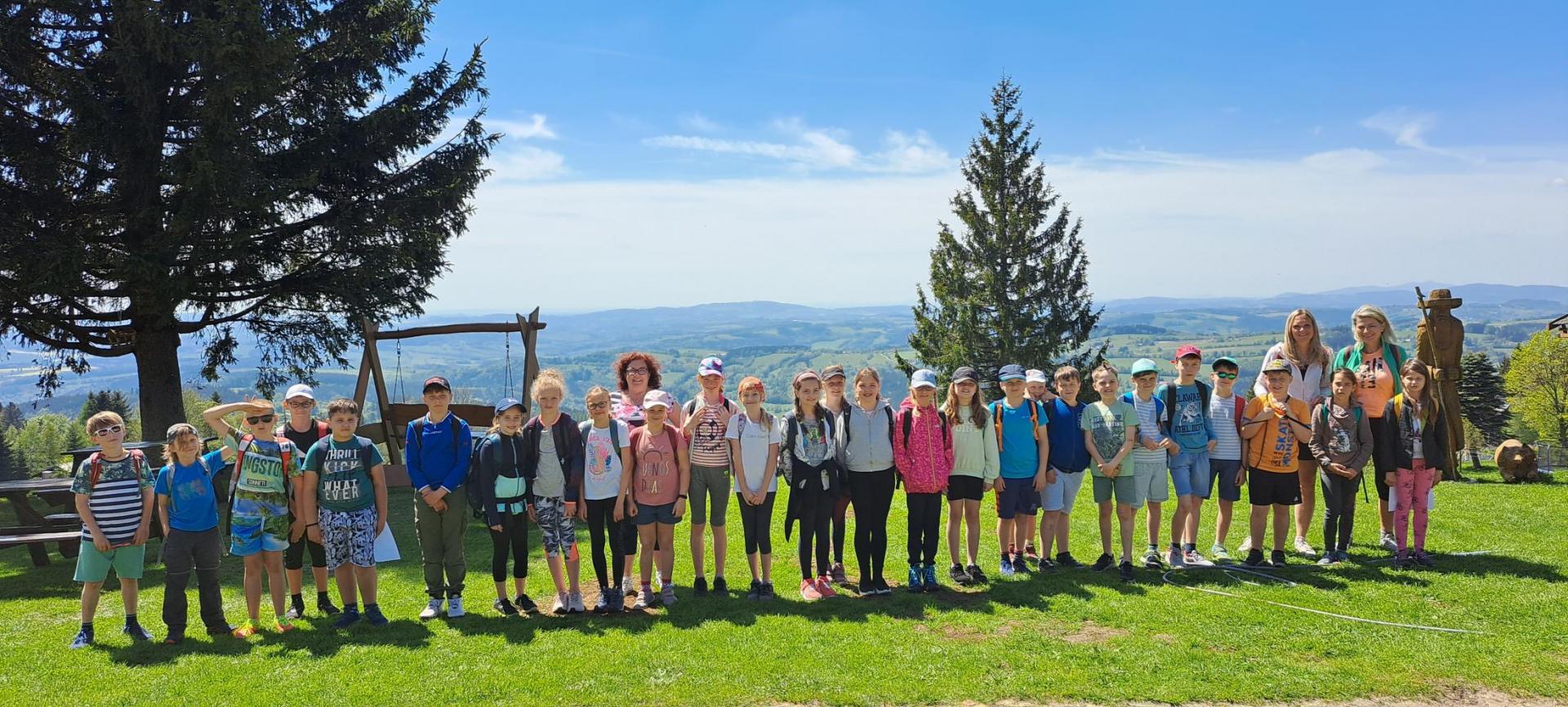 Posilněni jsme se vydali na Lufťákovu stezku, kde děti plnily úkoly. Zpátky to chtěli všichni vzít zkratkou, tak jsme si vyšlápli sjezdovku (někteří ji dobrovolně běhali několikrát).