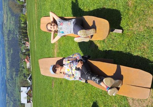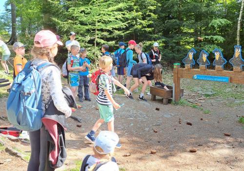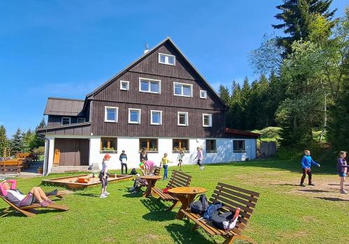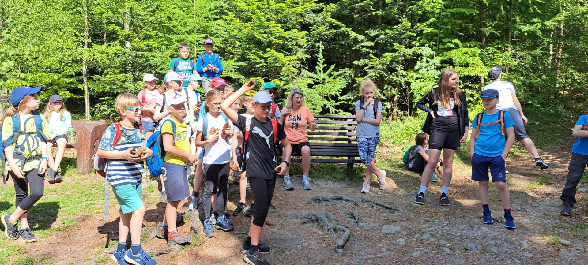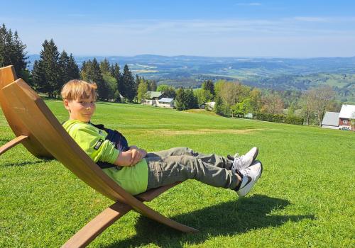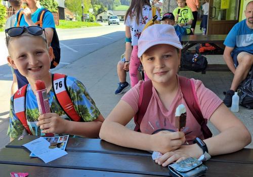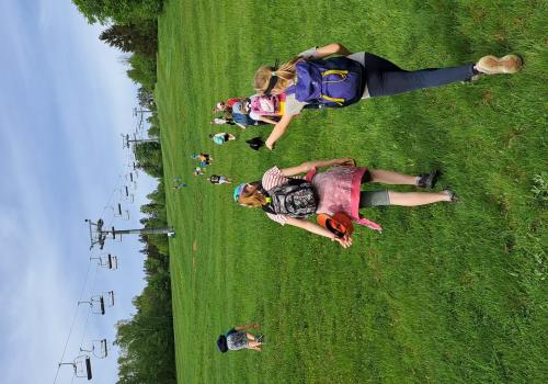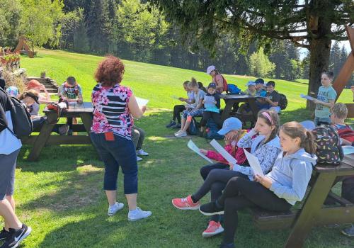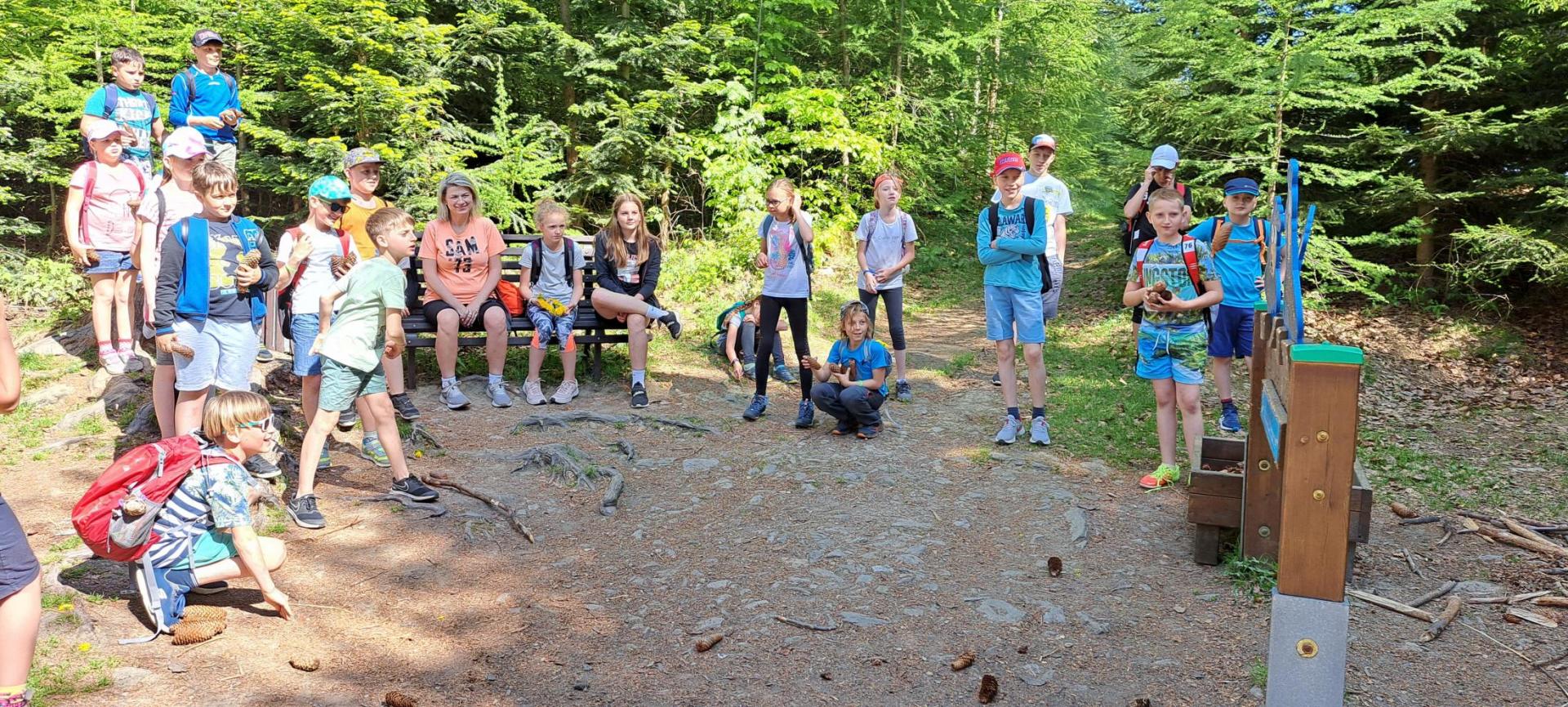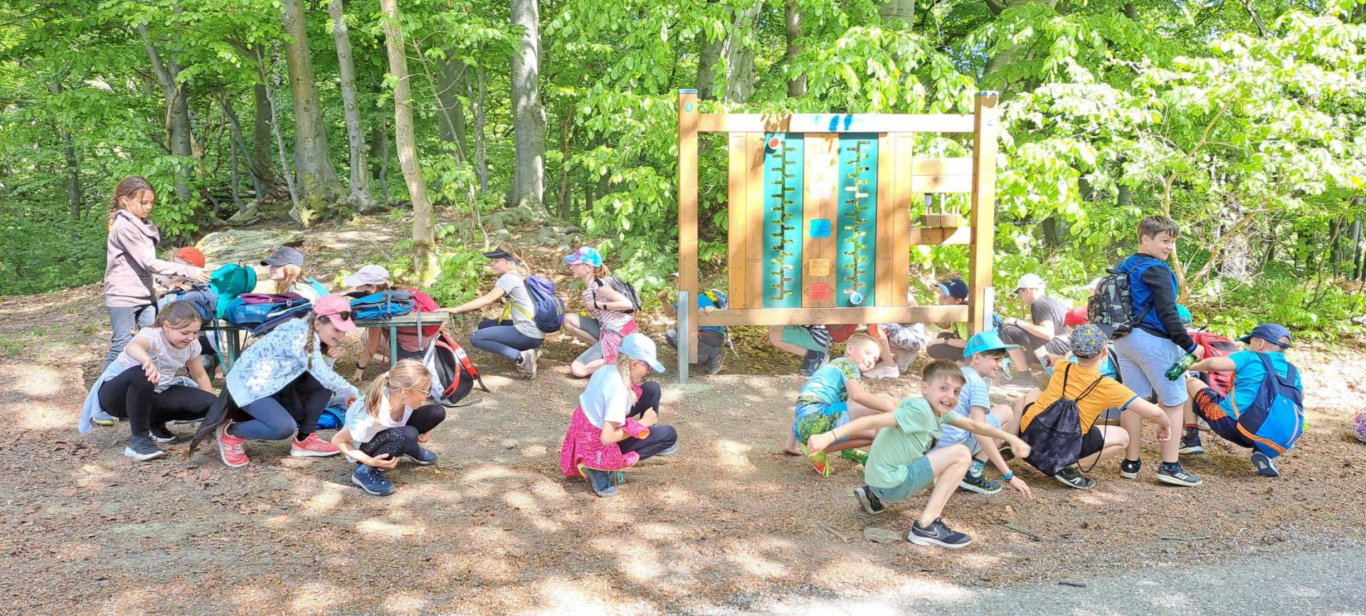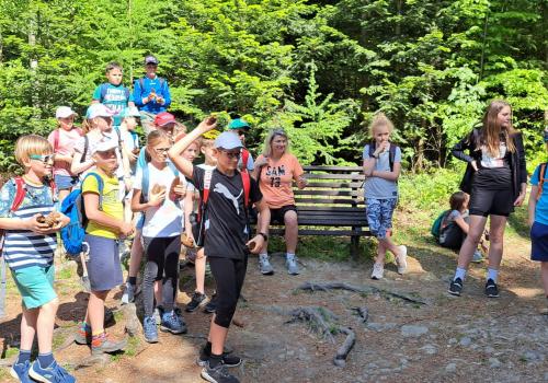 Posilněni jsme se vydali na Lufťákovu stezku, kde děti plnily úkoly. Zpátky to chtěli všichni vzít zkratkou, tak jsme si vyšlápli sjezdovku (někteří ji dobrovolně běhali několikrát).