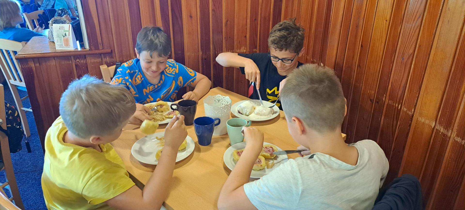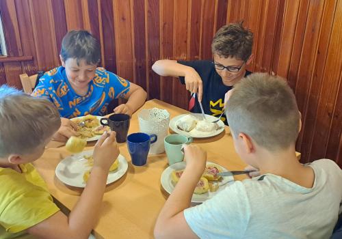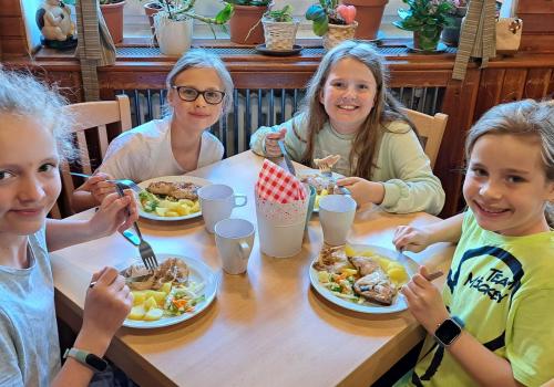 K obědu si všichni pochutnali na vývaru a plněných knedlících.