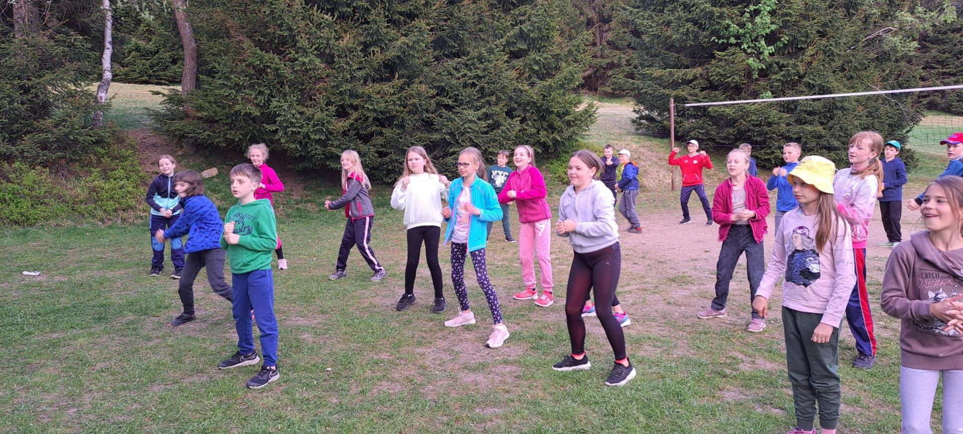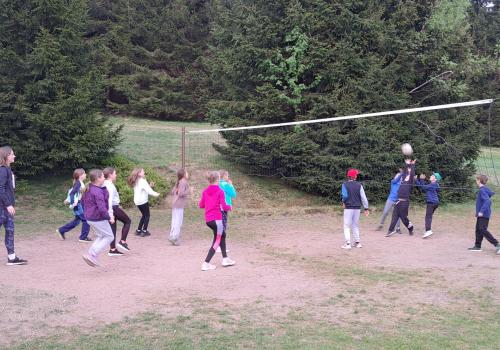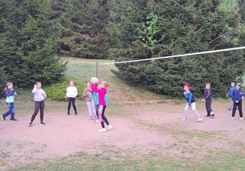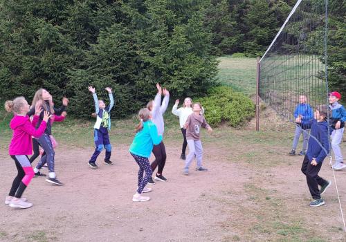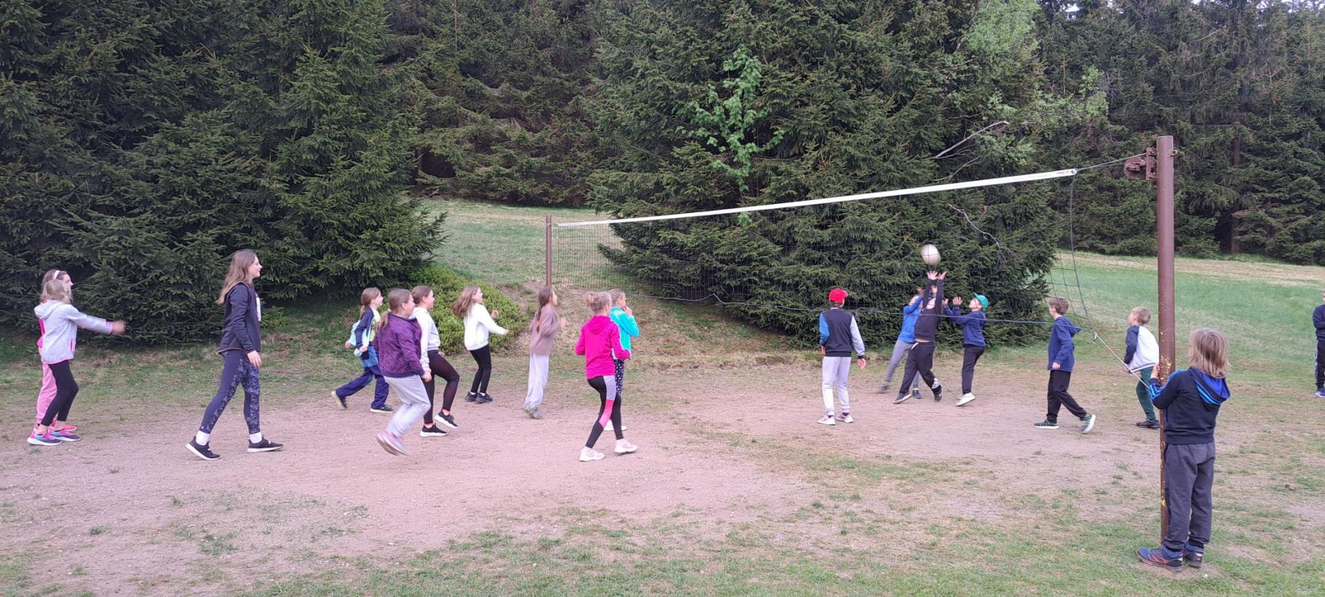 Po večeři (kuře a brambory) ještě hra "Kufr", taneček a volná zábava v podobě přehazky, povídání, houpaček,...
