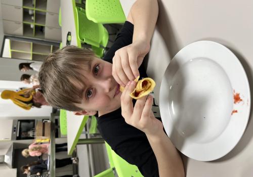 Nakonec se nám celkem povedly. Dali jsme si je s jahodovou marmeládou. Pak jsme hráli tichou poštu a s křikem došli do třídy. Všichni vyděšení z prázdné školy jsme zalezli do spacáků. ![]()