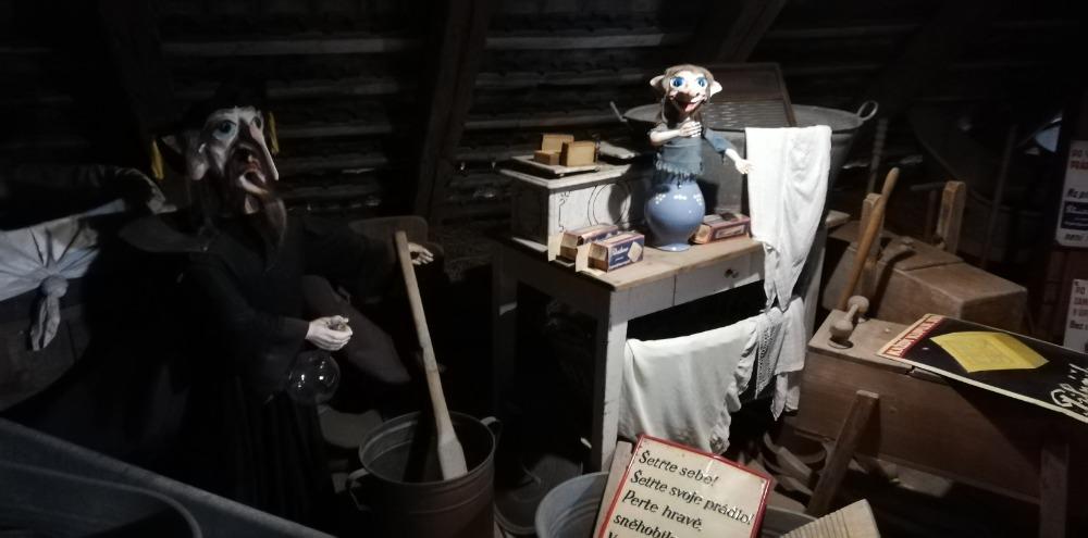 Také jsme spolu s čarodějnicí vystoupili na pohádkovou půdu, kde sídlí čarodějnice různých kategorií a kouzlobabky, pravá starohradská strašidla, strašidýlka a také pěkně vykutálení skřítkové.