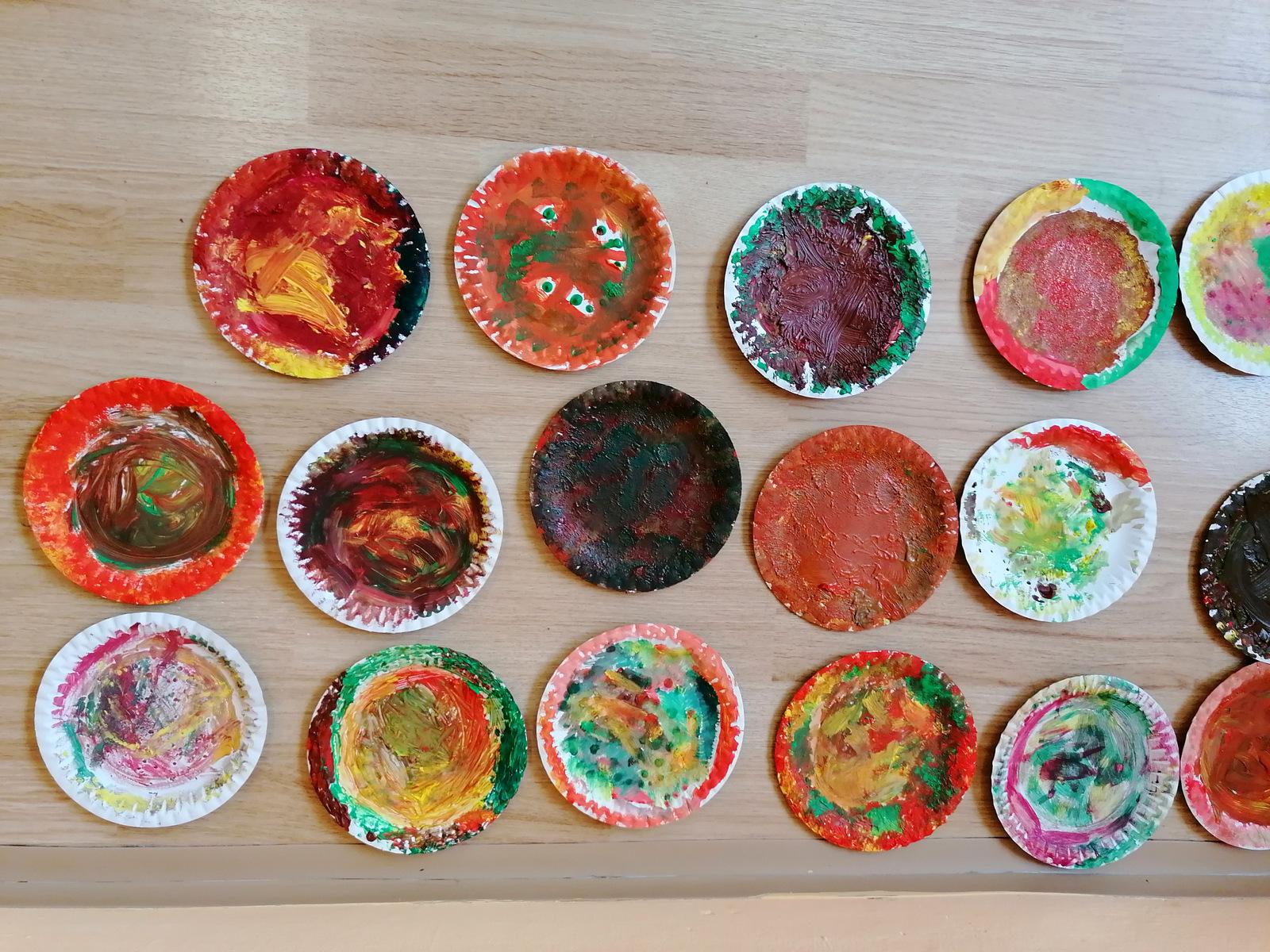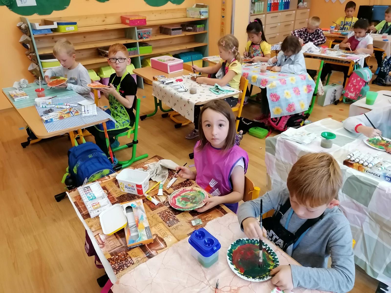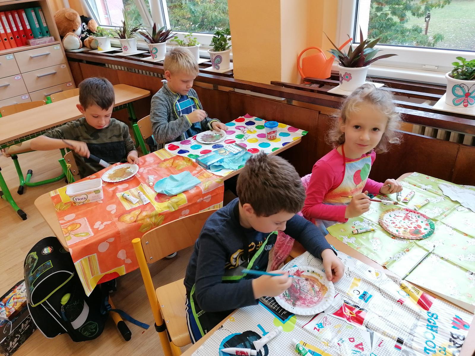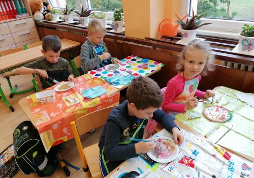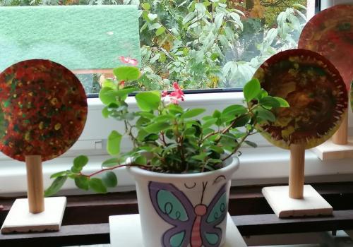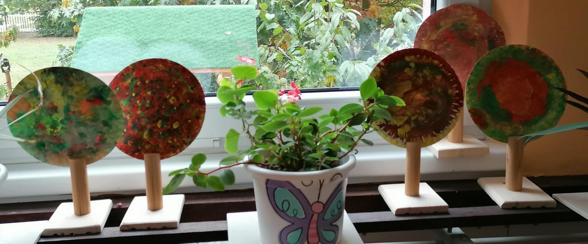 Papírový talíř, podzimní barvičky a stromek je tu.